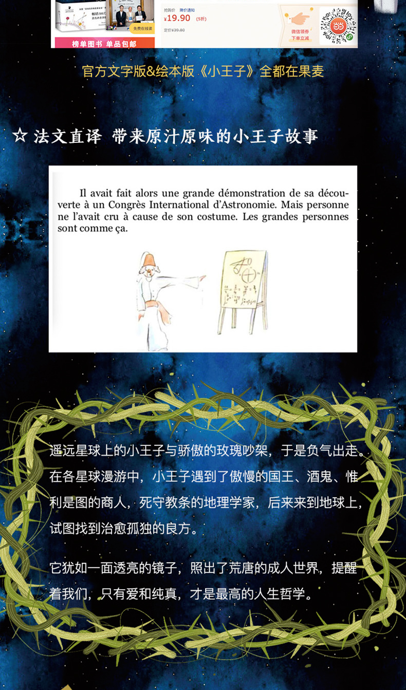 7幅原创大跨页插画,登陆小王子的治愈星球,全球5亿人读过,有298个译本的传世之作。