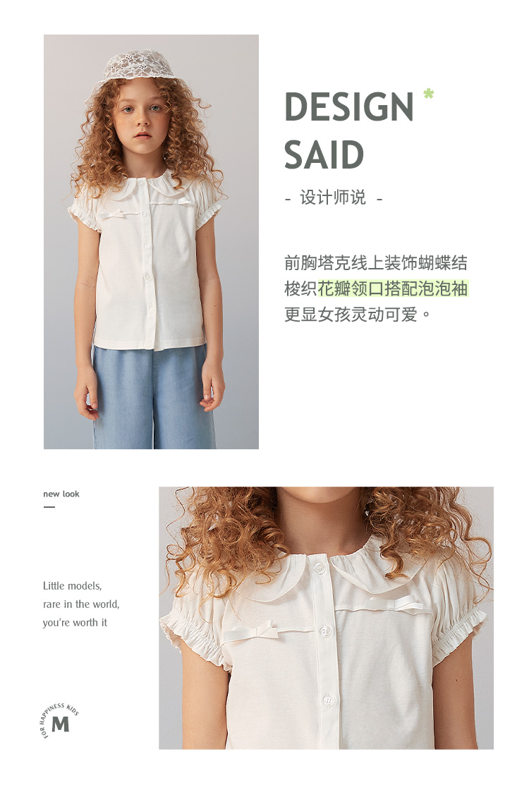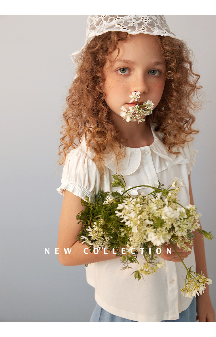 【纯棉短袖衬衫】童装短袖衬衫女童2021夏季新款白色纯棉衬衣