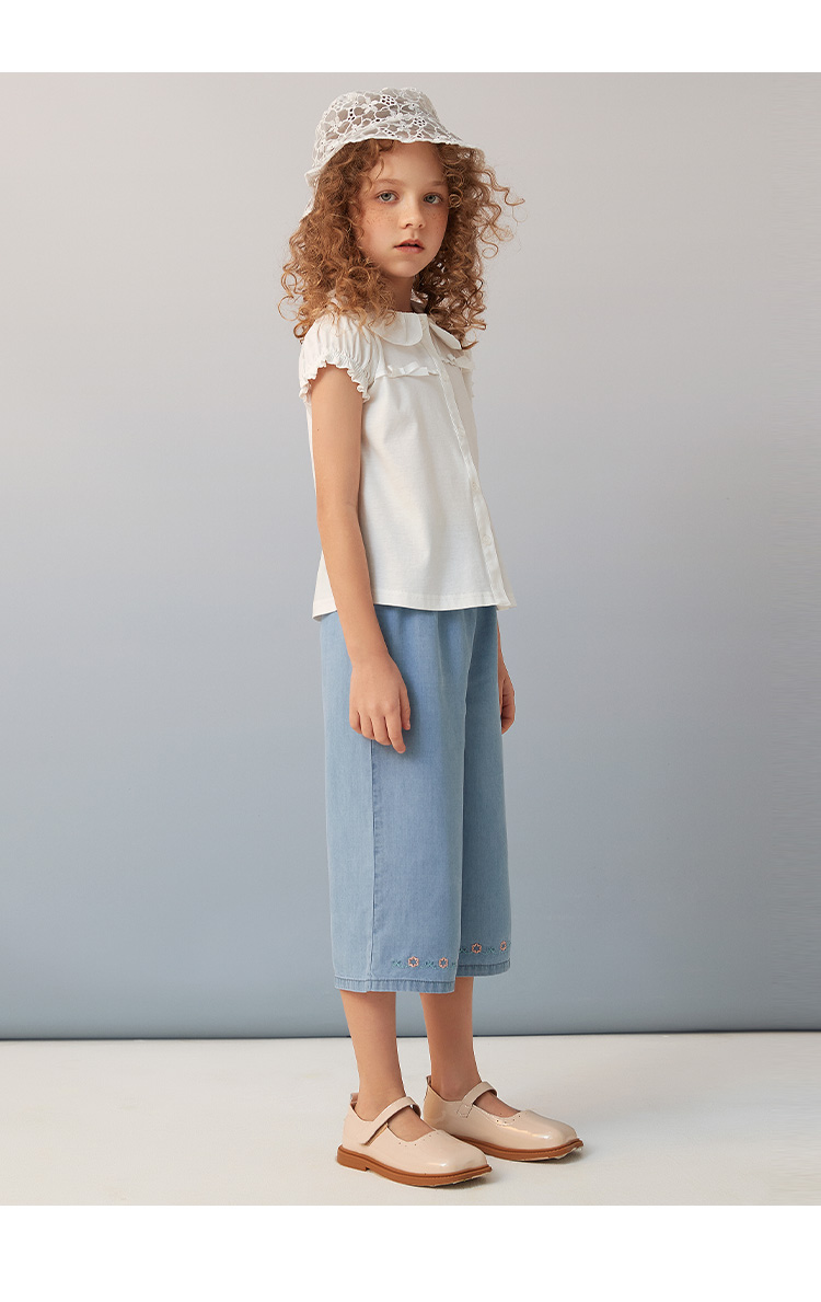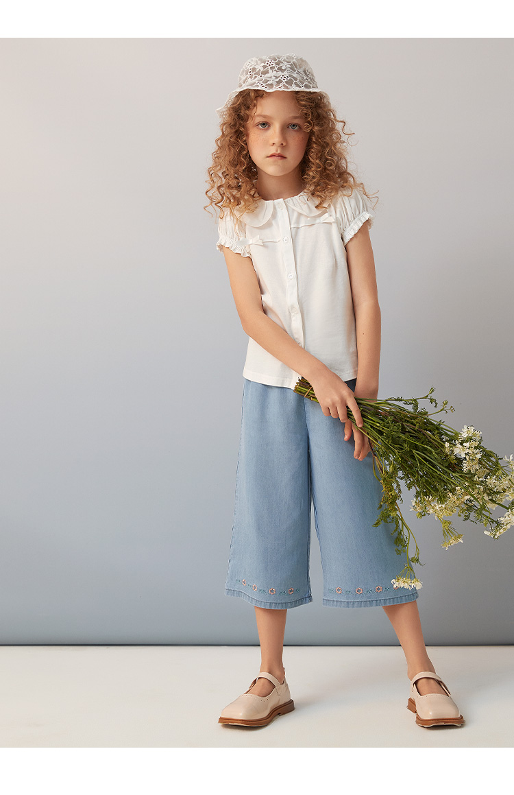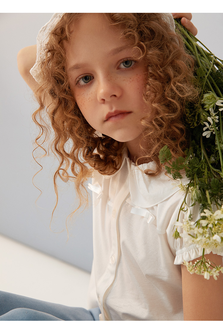 METTE童装2020秋新品女童白色长袖衬衫时尚荷叶边纯棉开衫薄上衣