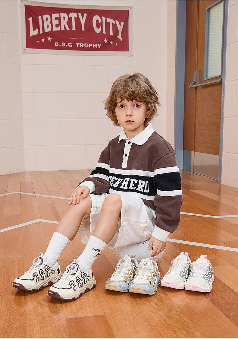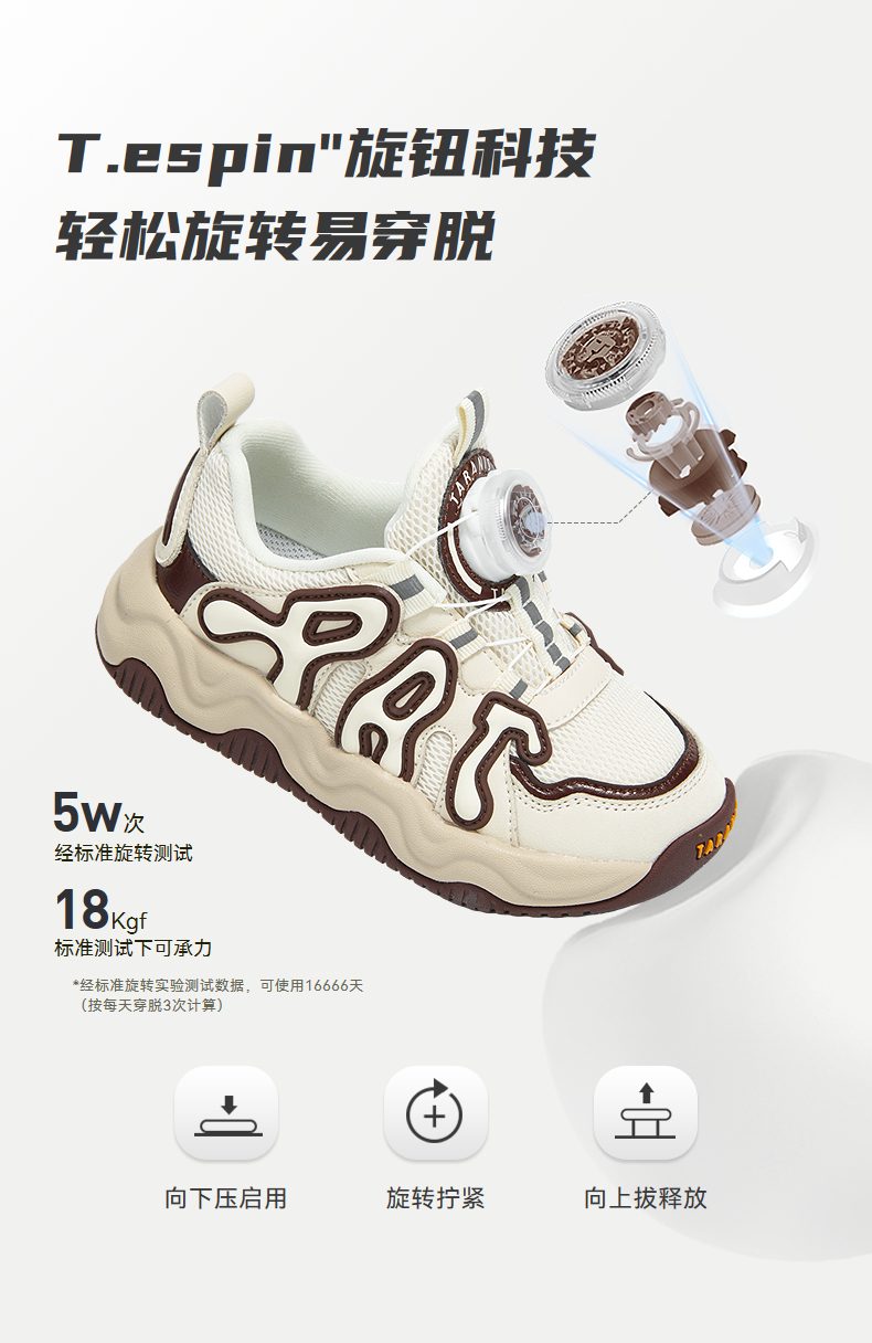 泰兰尼斯秋季新款儿童运动鞋男童旋转纽扣休闲鞋轻便软底幼儿园鞋 T01X5C6943