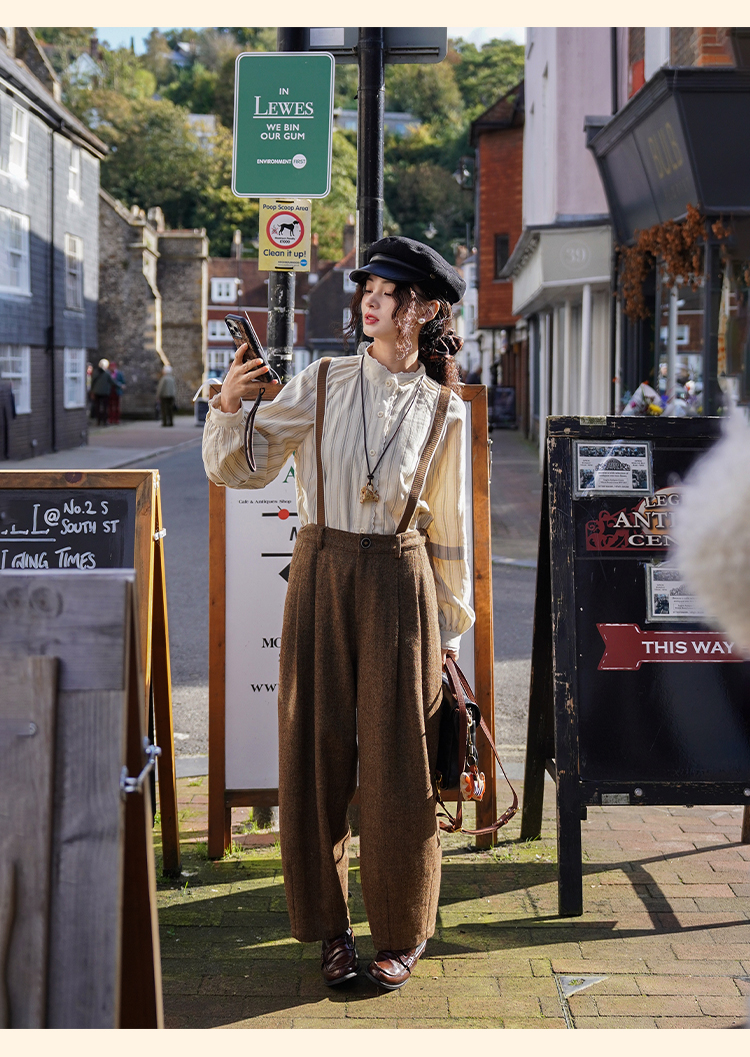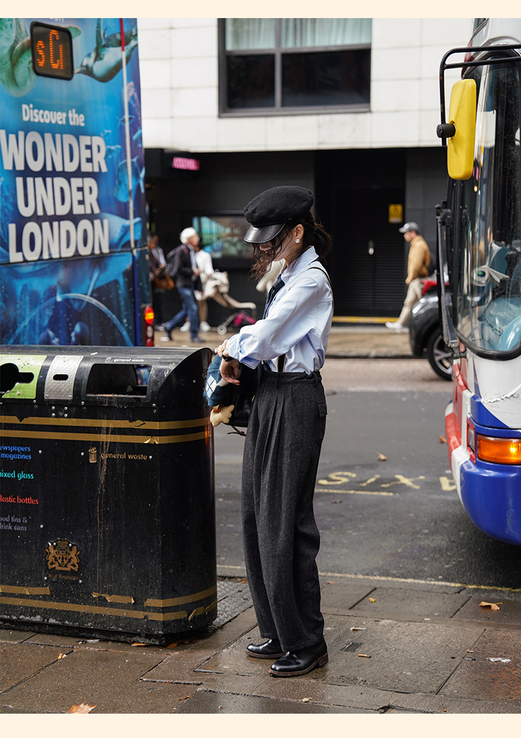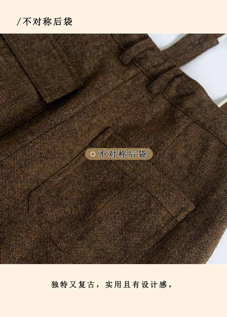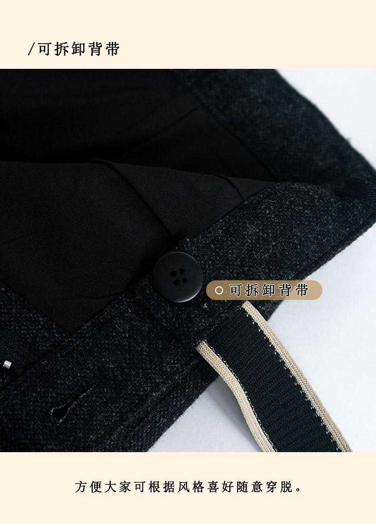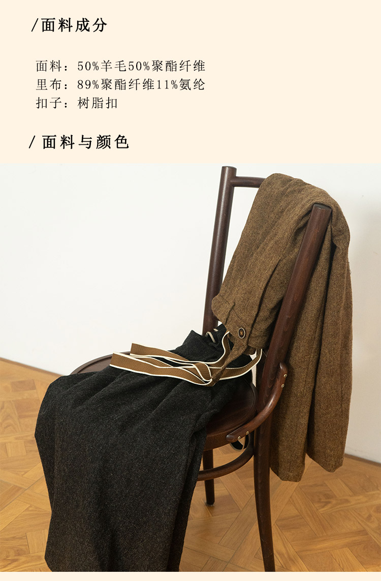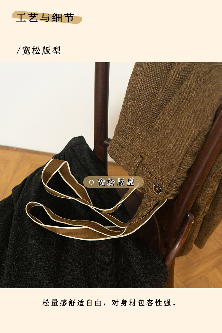 浮生八记/24A049/复古羊毛钢花呢可拆背带内抽绳背带裤