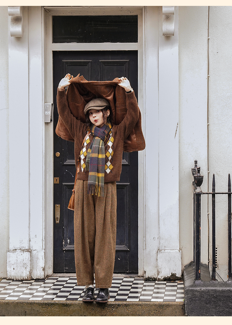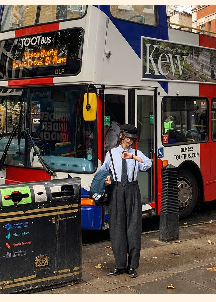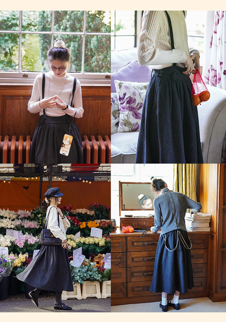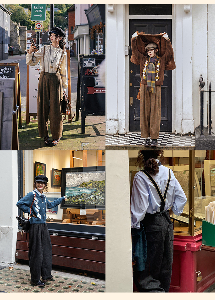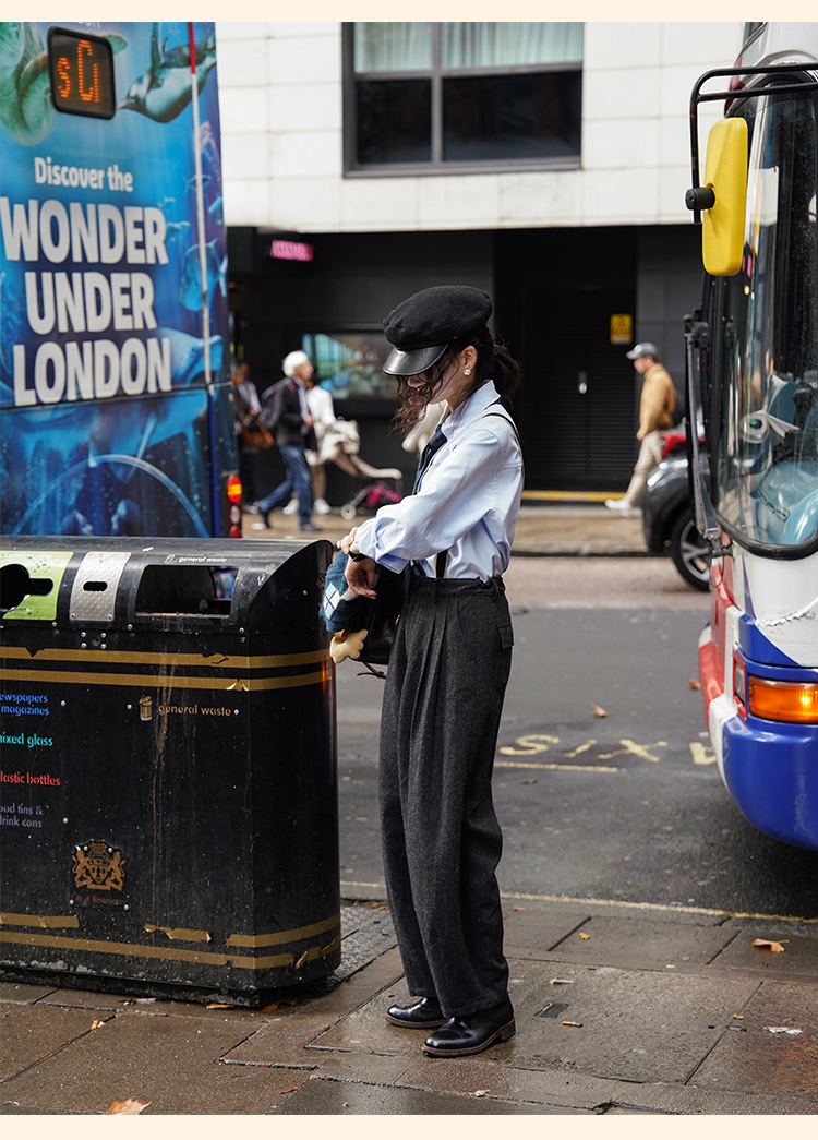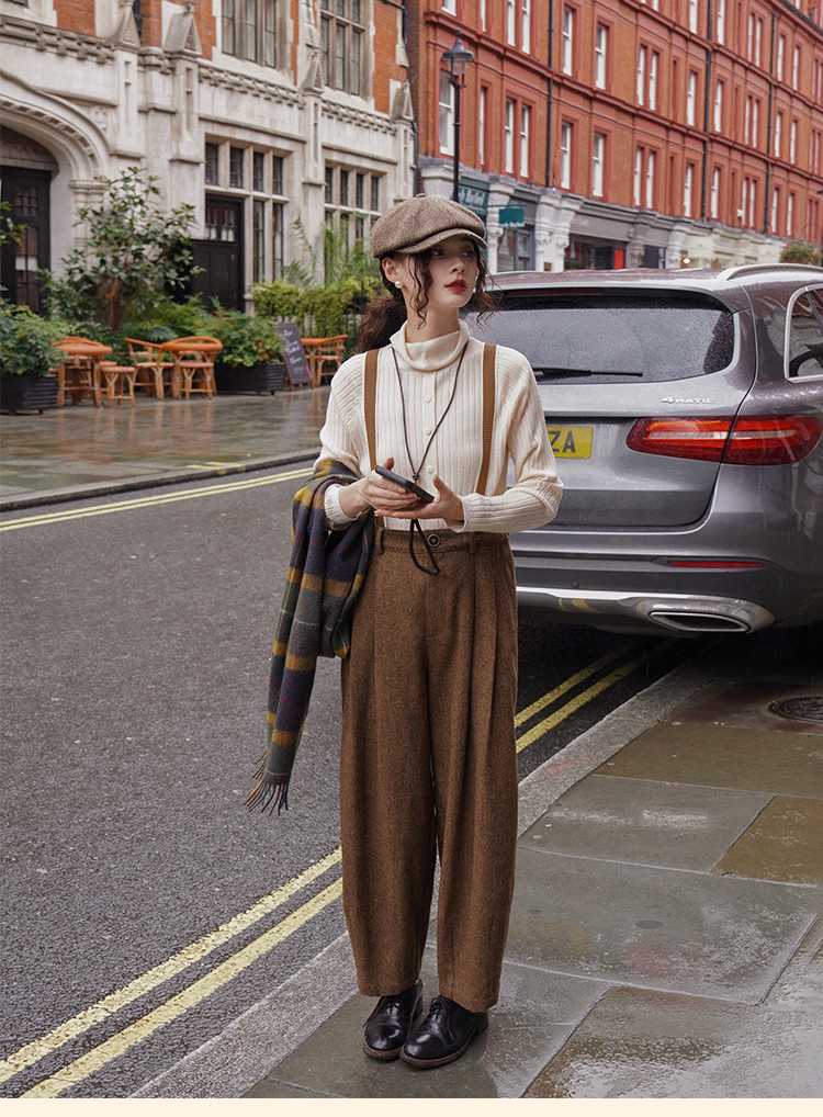 浮生八记/24A049/复古羊毛钢花呢可拆背带内抽绳背带裤