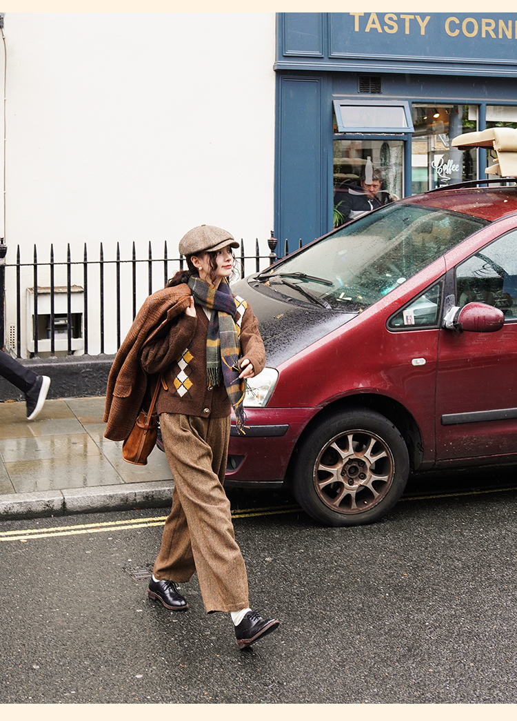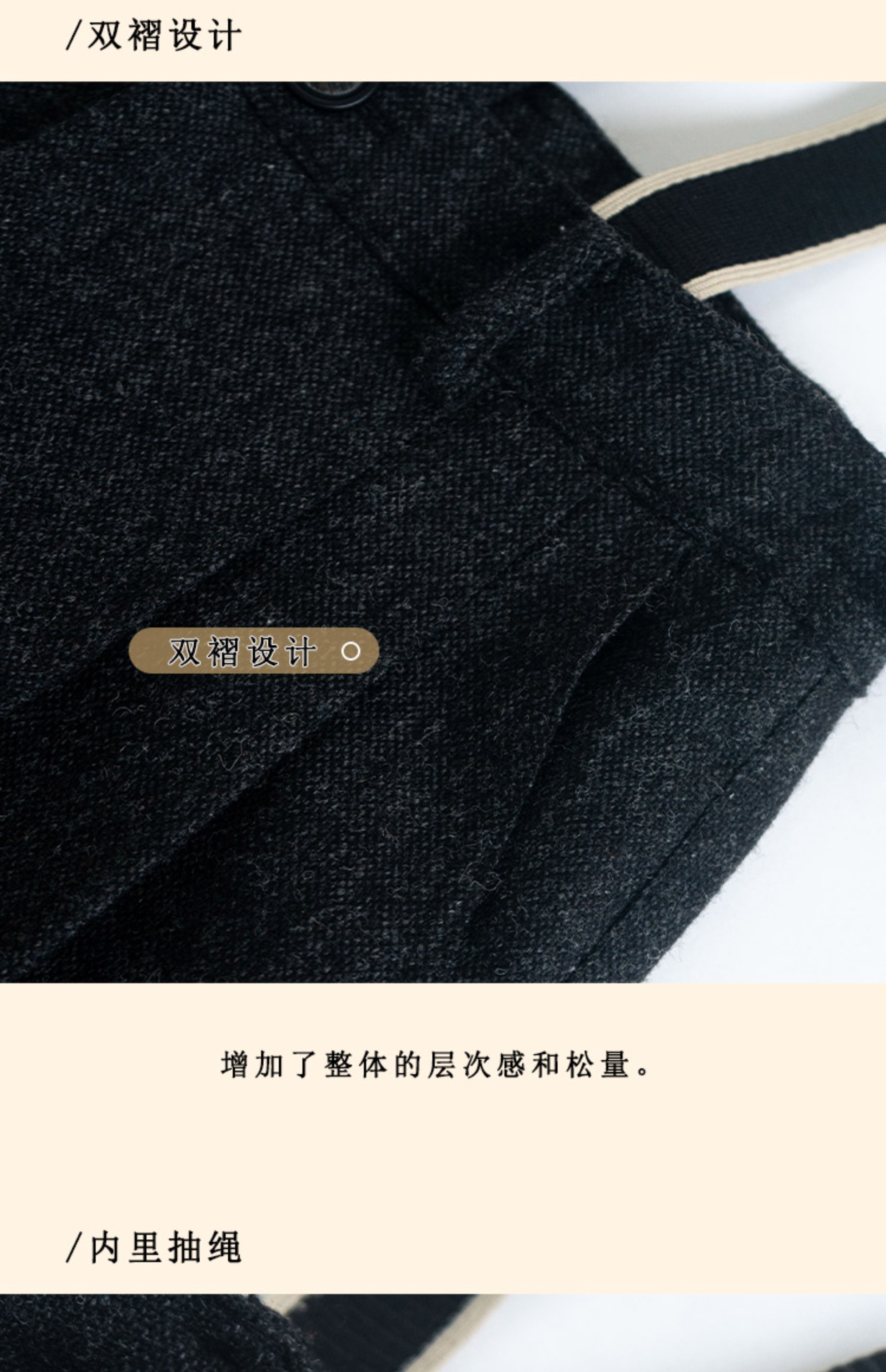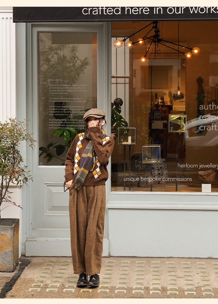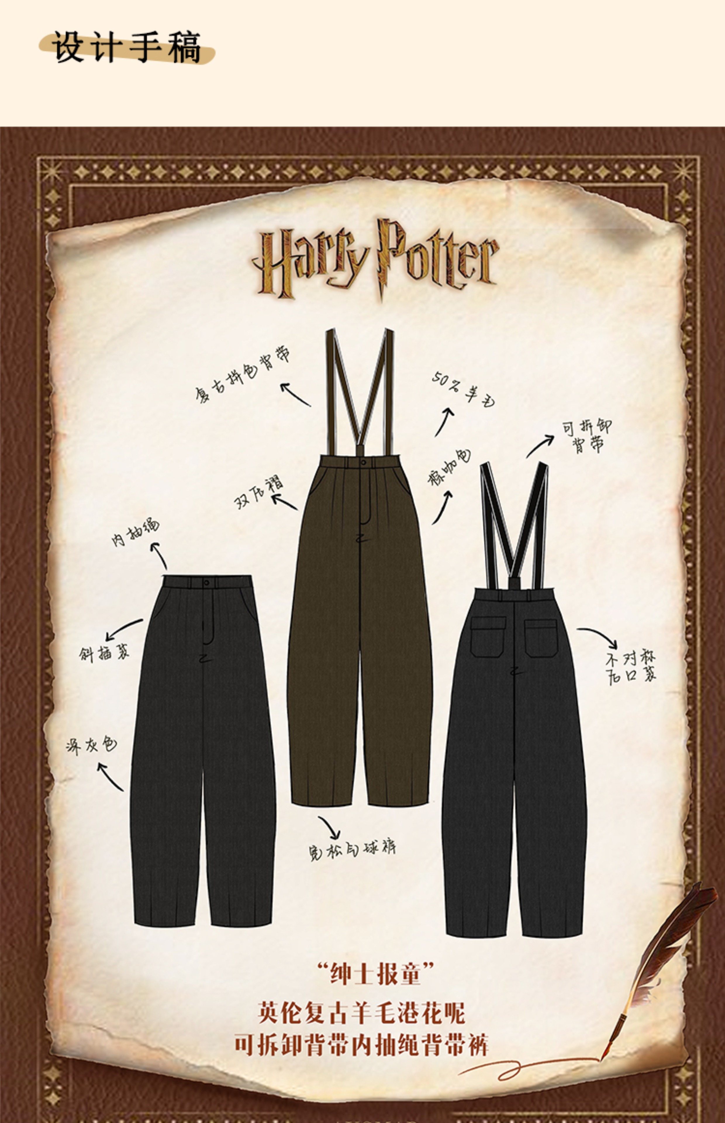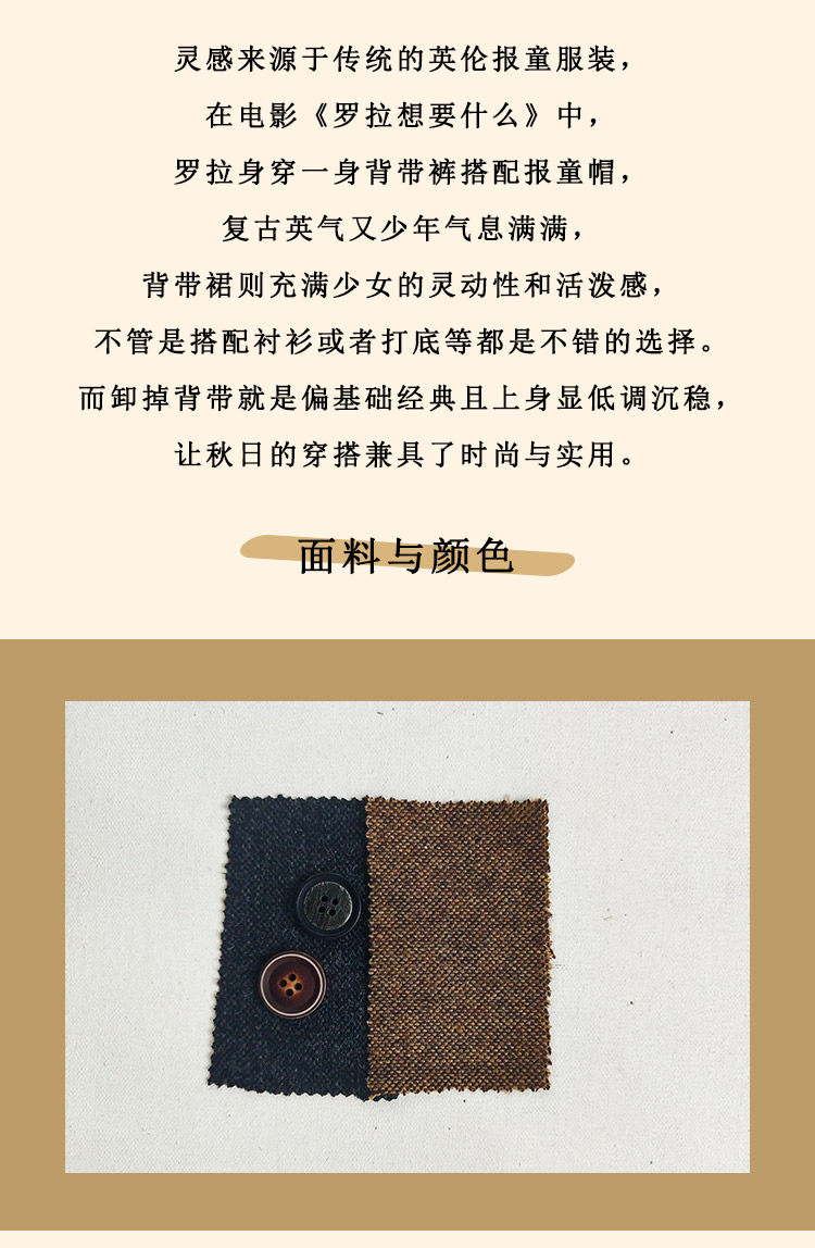浮生八记/24A049/复古羊毛钢花呢可拆背带内抽绳背带裤