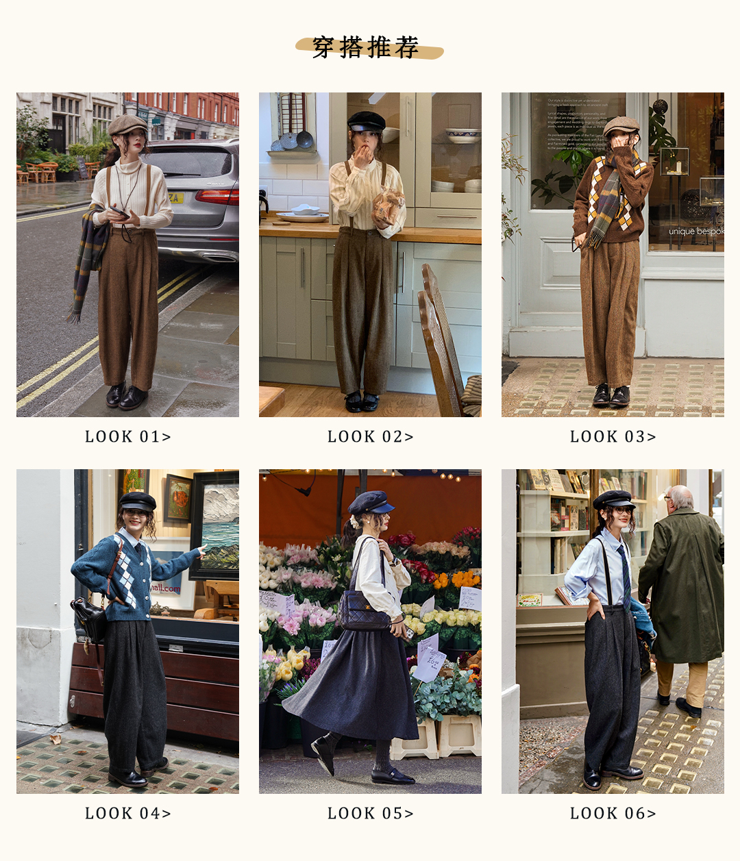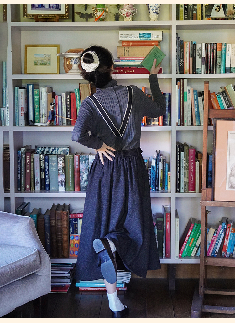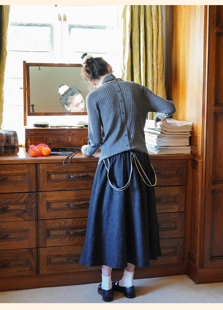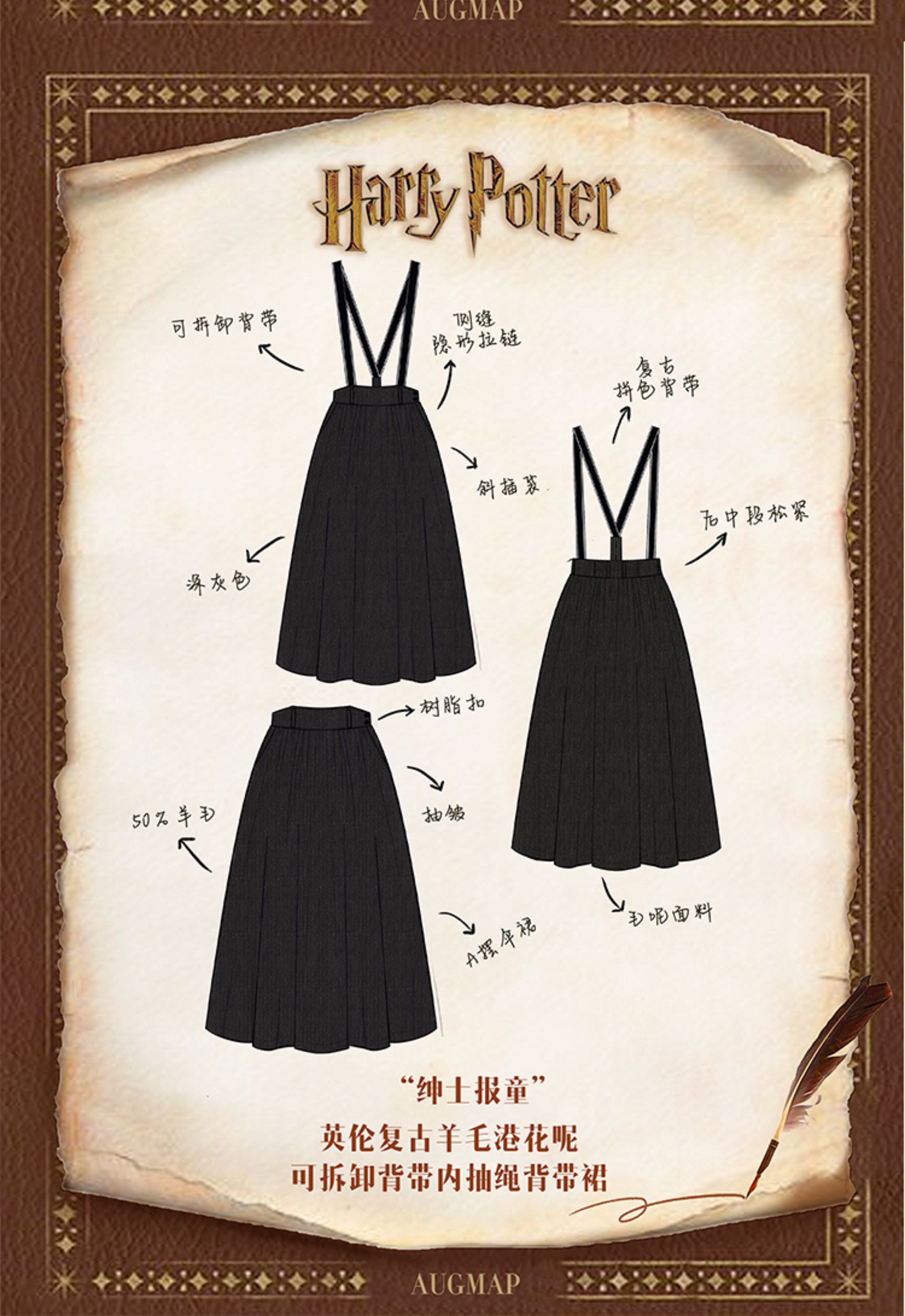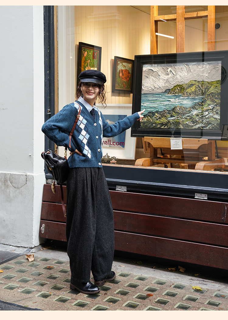 浮生八记/24A049/复古羊毛钢花呢可拆背带内抽绳背带裤