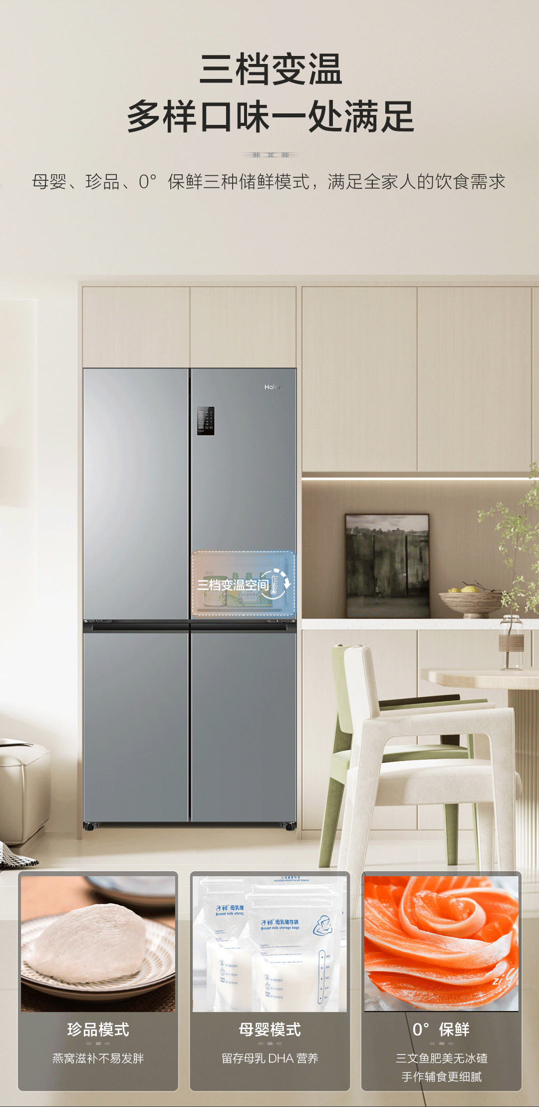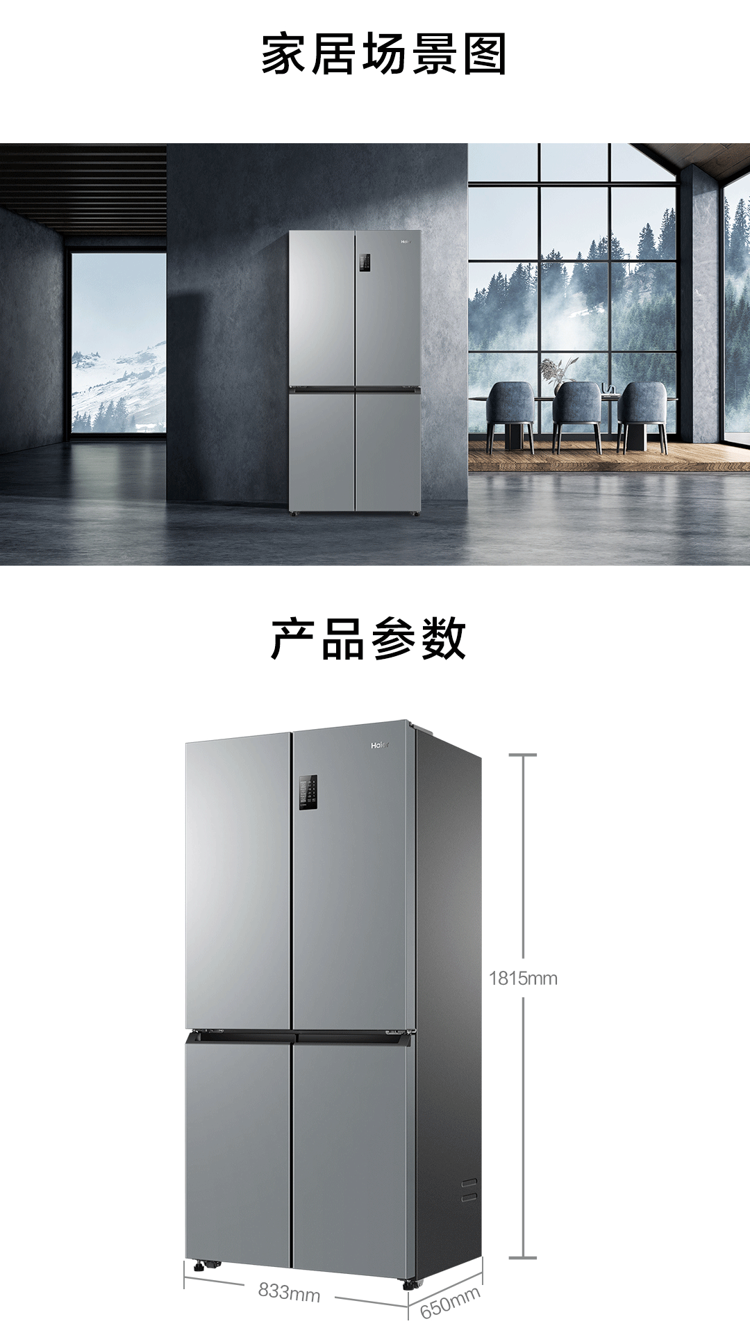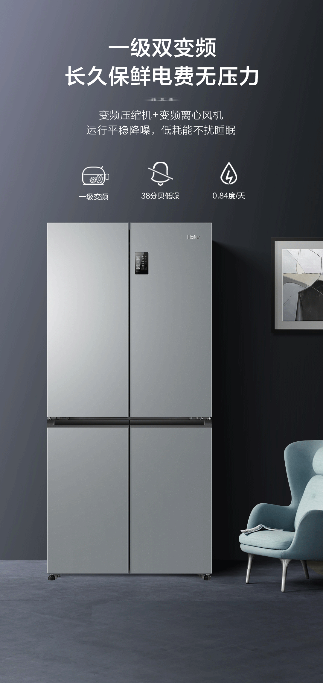 海尔(Haier)冰箱 BCD-477WGHTDEDSP 477升十字对开门四开门风冷无霜一级能效三档变温黑金净化家用大容量电冰箱