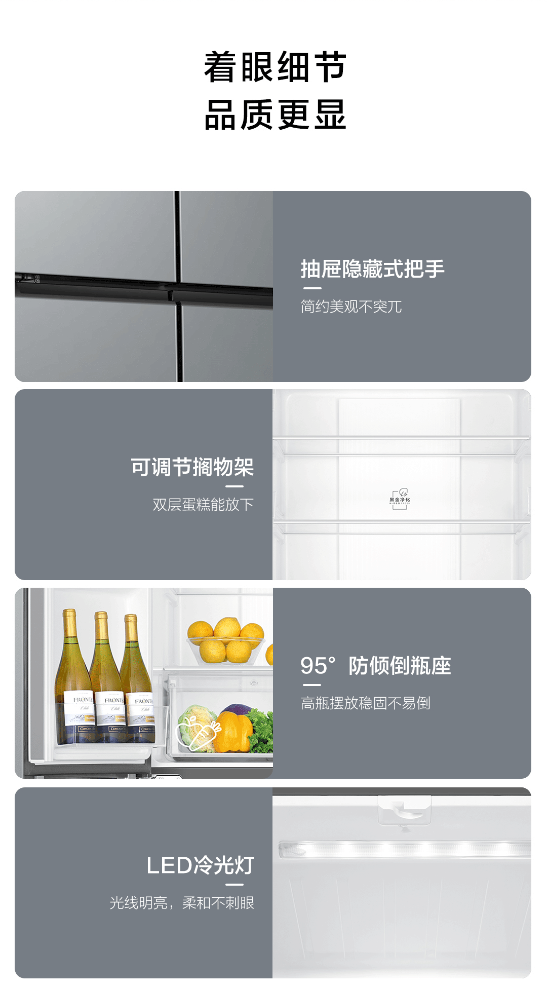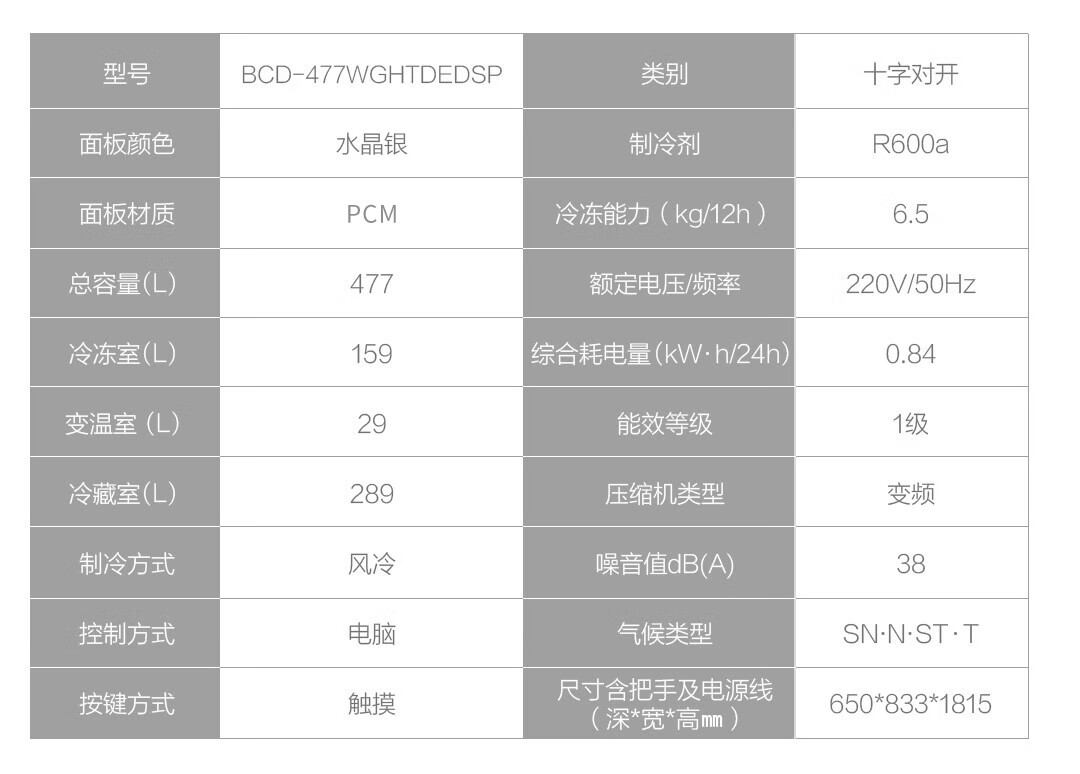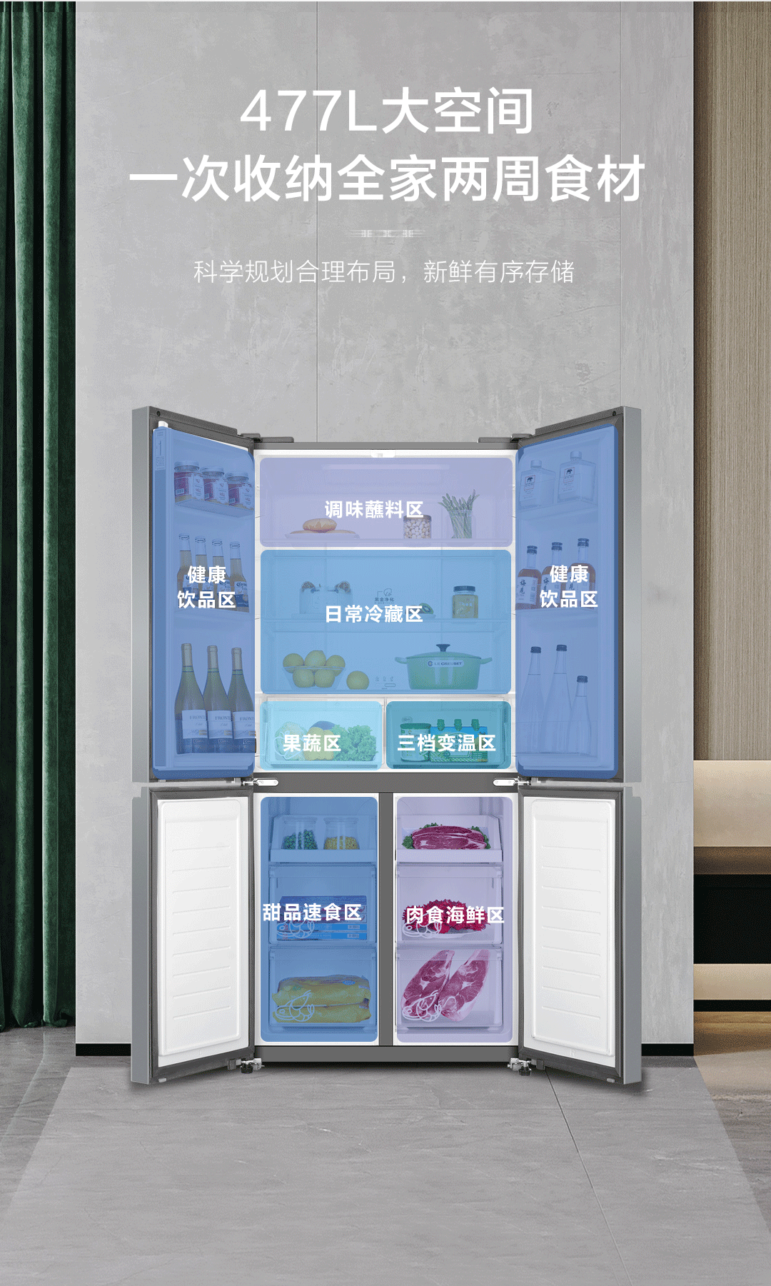 海尔(Haier)冰箱 BCD-477WGHTDEDSP 477升十字对开门四开门风冷无霜一级能效三档变温黑金净化家用大容量电冰箱