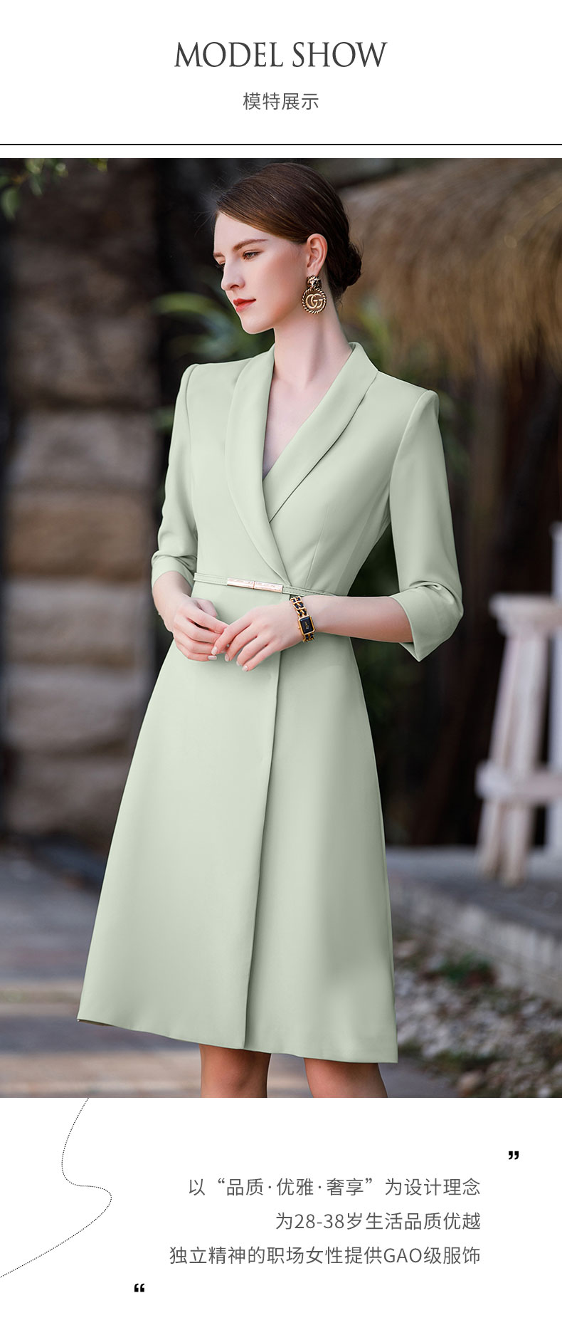 IWY/新款薄荷绿设计感连衣裙气质主持人上镜装韩版职业工作服Q771-G