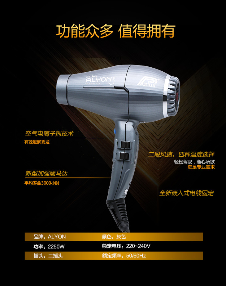 大力士 340 风机 意大利/PARLUX/大力士/大功率/吹风机/电吹风/2250瓦/进口/卷发/大波浪/快吹/吹干/低风/高风