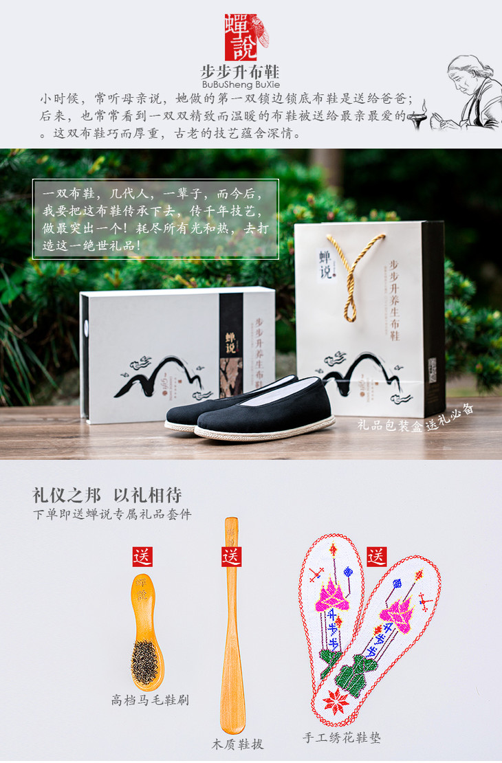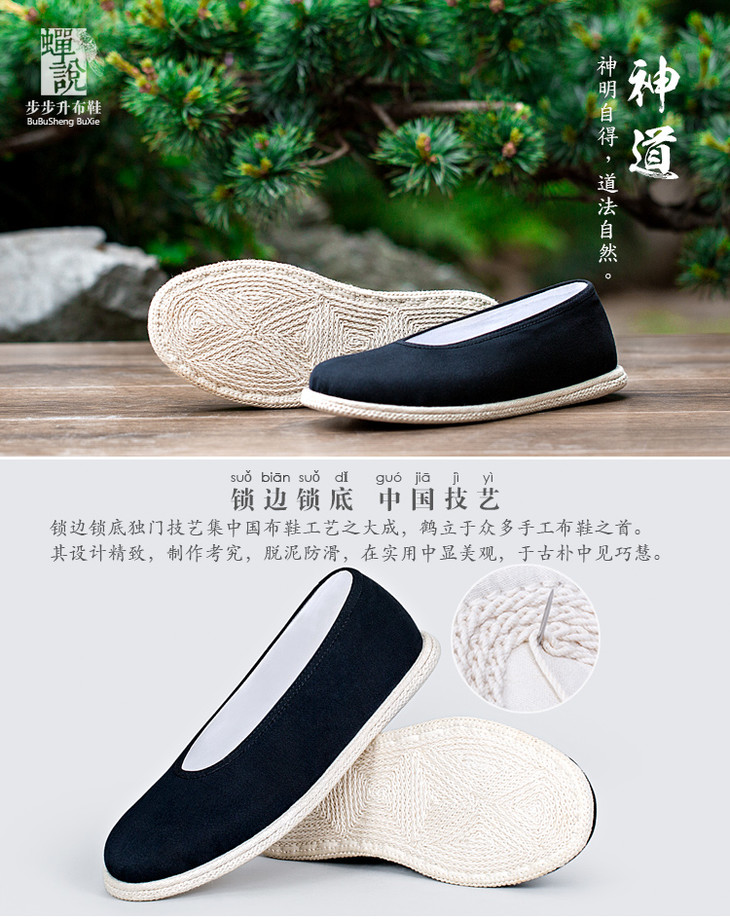 蝉说老北京布鞋男鞋 黑色圆口手工千层底布鞋 传统礼品爸爸布鞋 透气吸汗布鞋 黑色纯布底