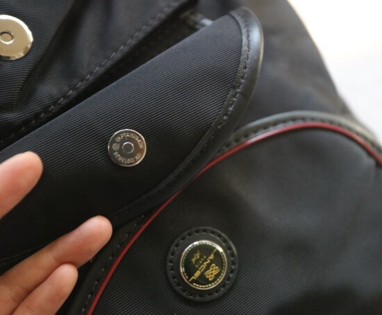 主袋 黑色徽标尼龙衬 内无隔断 1小钩扣+2贴袋+1拉链口袋