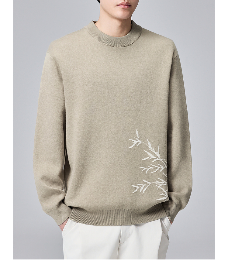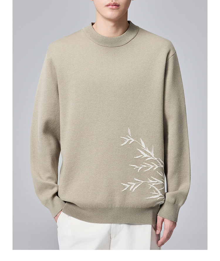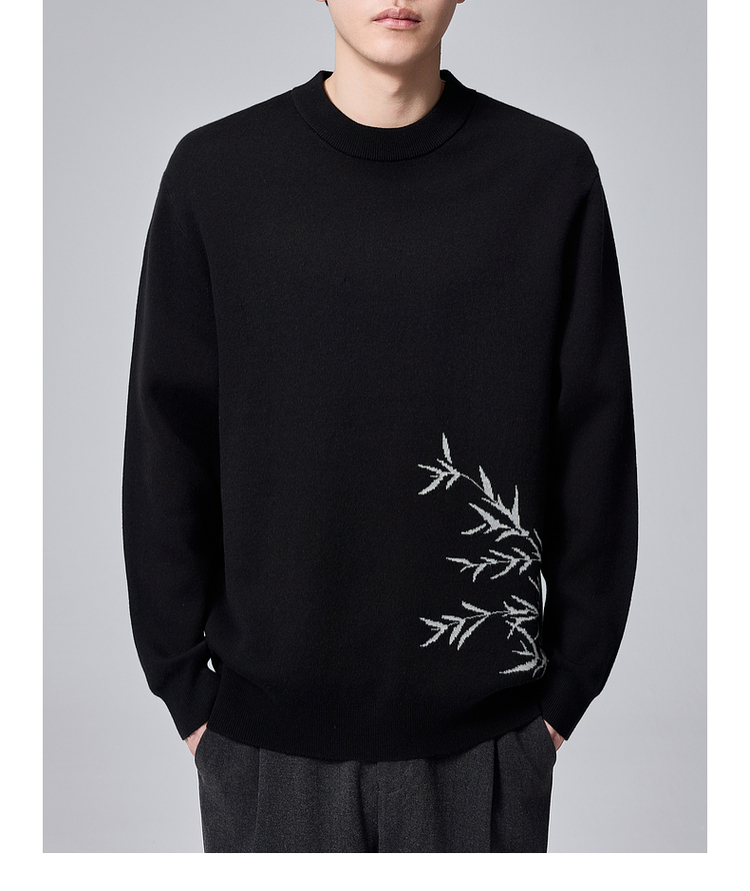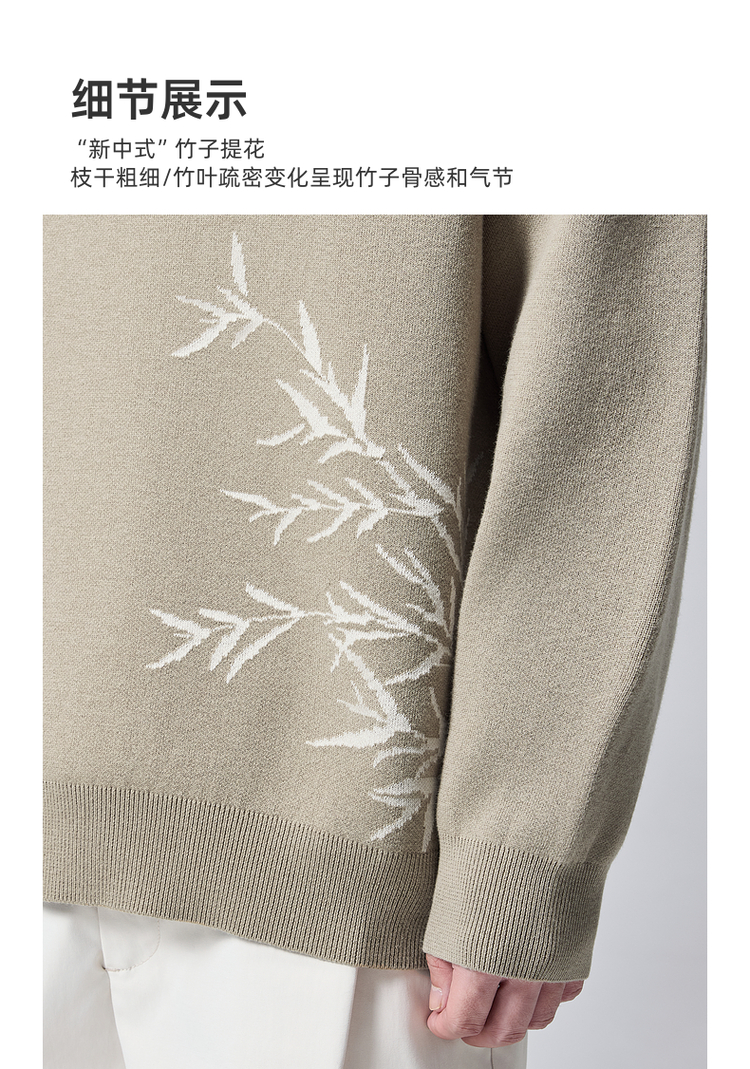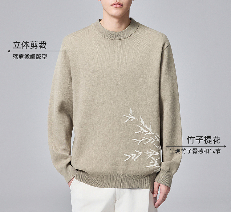 墨麦客男装2024秋冬季新款提花圆领毛衣男士自发热加厚针织衫外套
