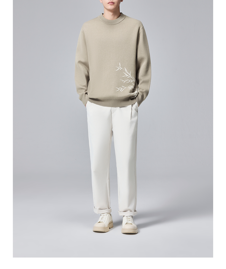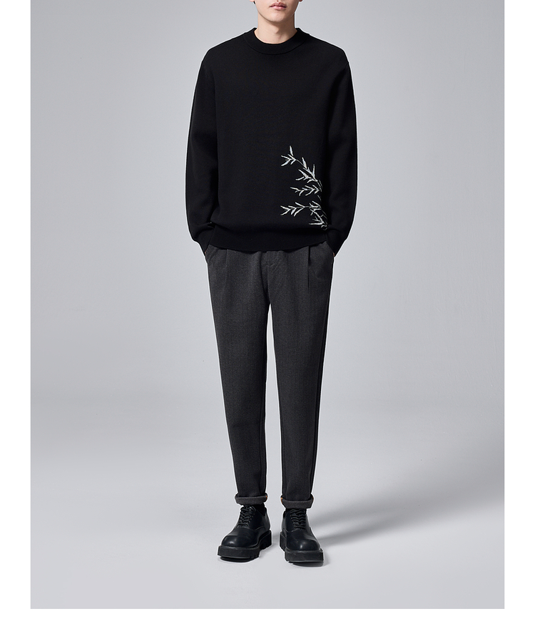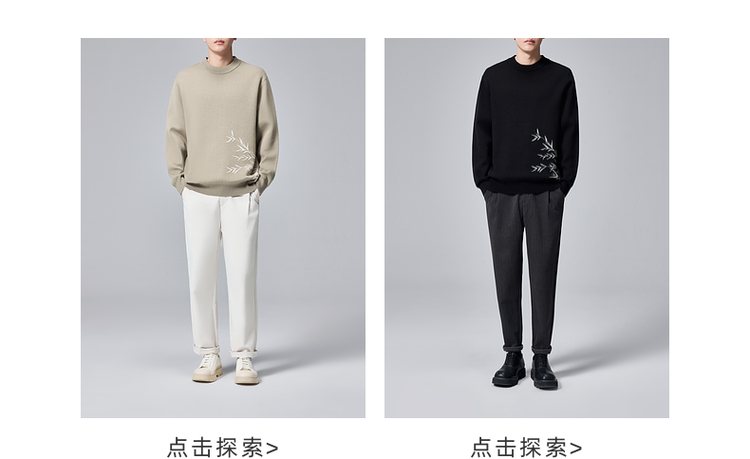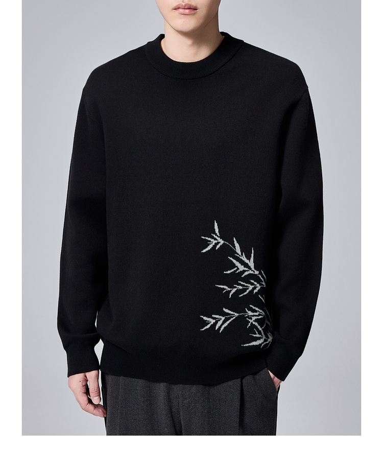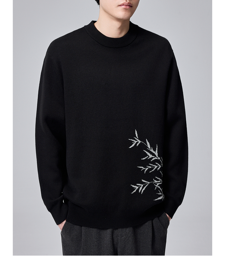 墨麦客男装2024秋冬季新款提花圆领毛衣男士自发热加厚针织衫外套