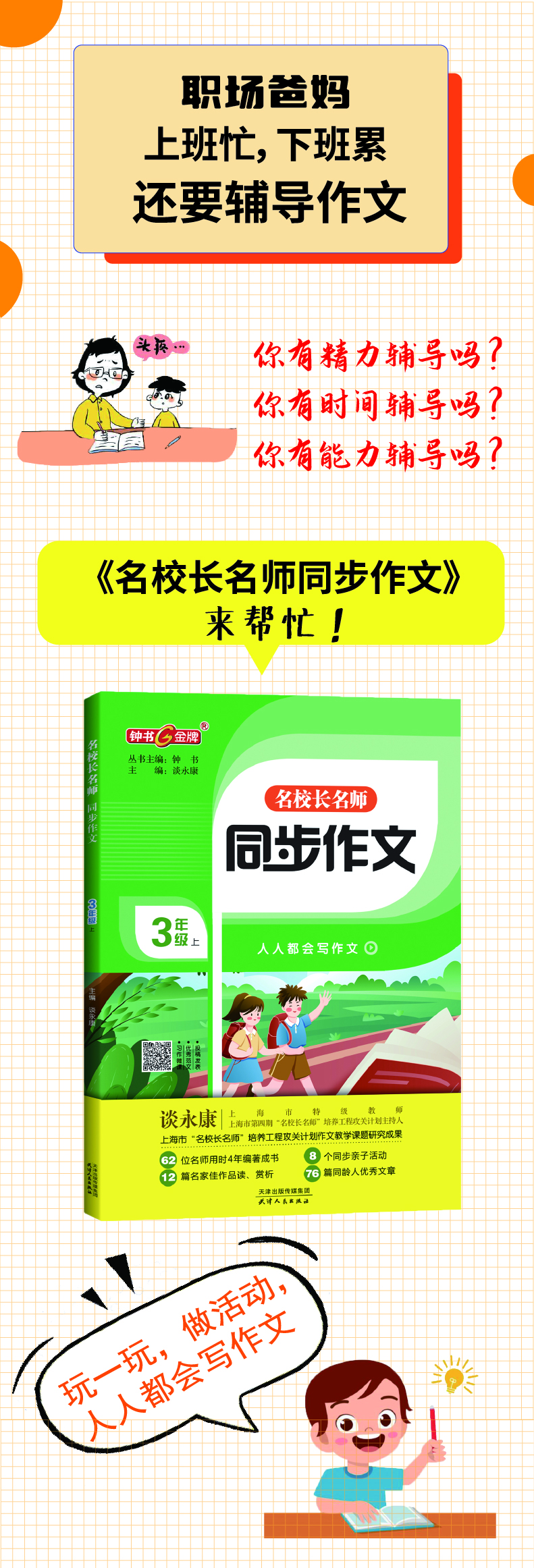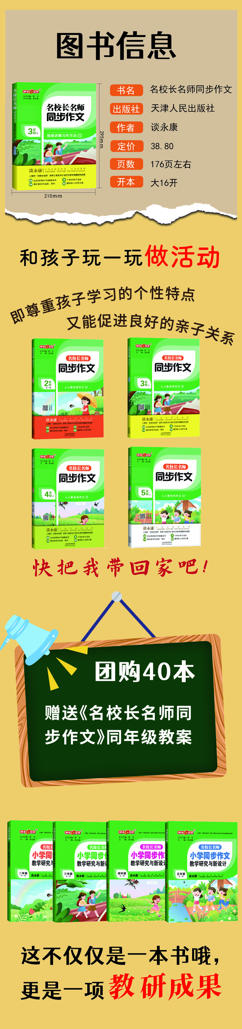 钟书金牌 名校长名师 同步作文 二年级全一册 谈永康主编 8个同步亲子活动13篇名家佳作赏析48篇优秀文章 天津人民出版社