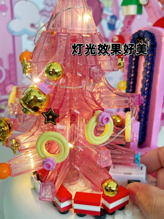灯光洒在摩天轮和水晶圣诞树上 营造出了一种如梦似幻、充满诗意的氛围 一起来体验拼装属于自己的圣诞摩天轮吧❣️