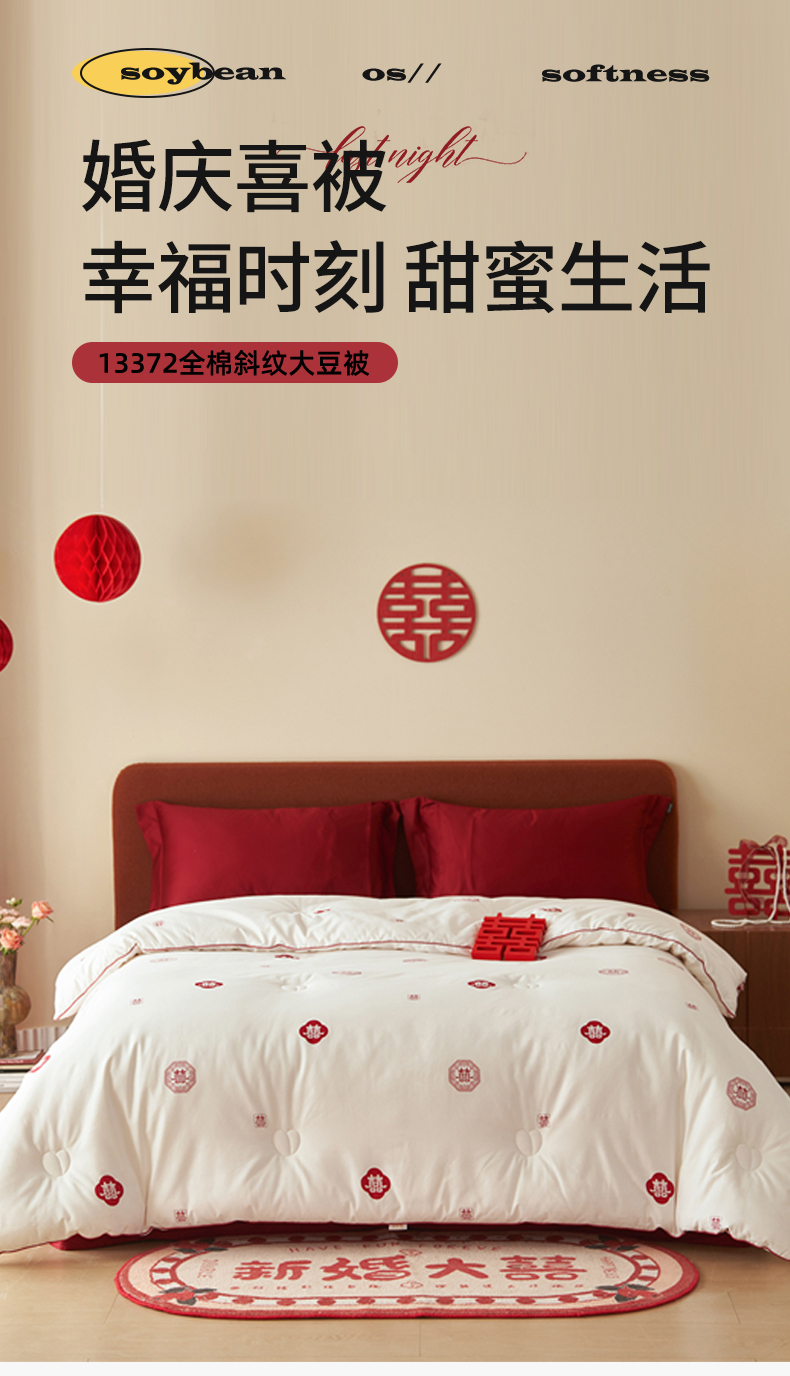 【婚庆喜被】A类秋冬全棉大豆冬被 20%大豆蛋白纤维柔软蓬松保暖被芯冬被