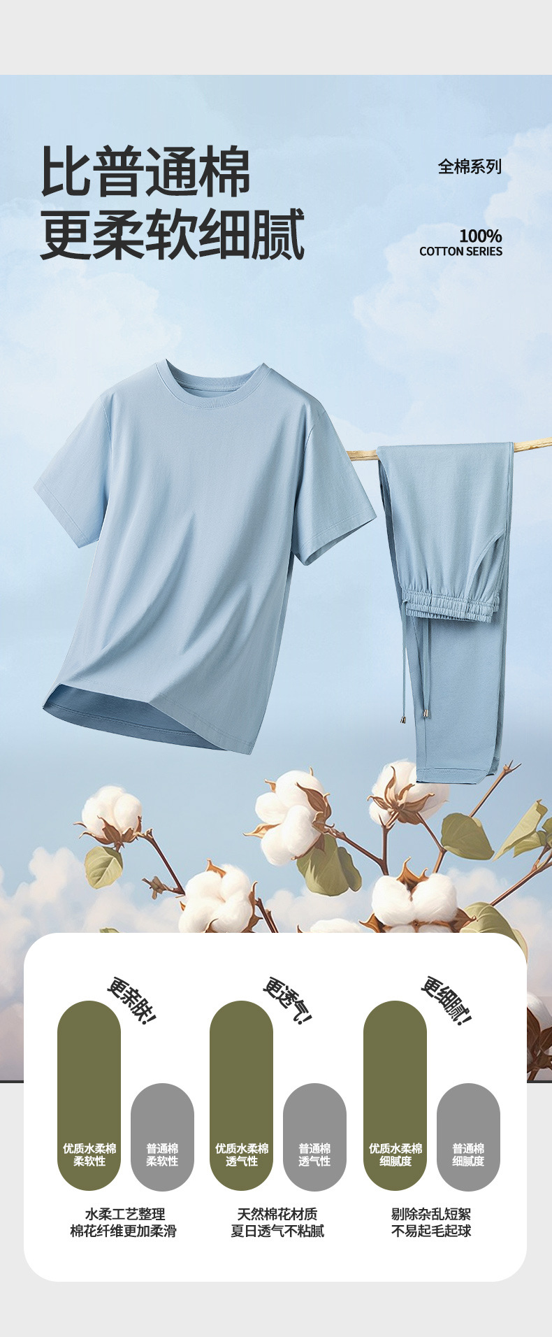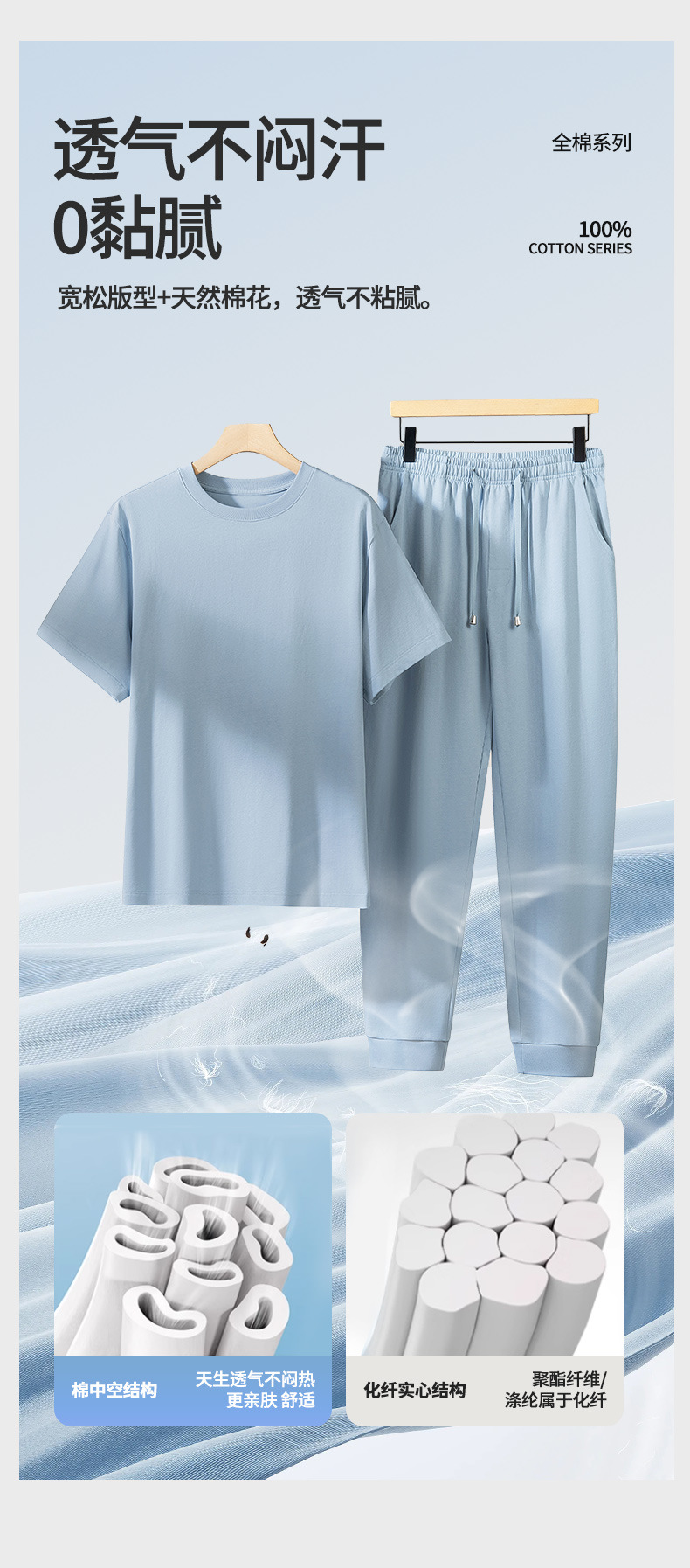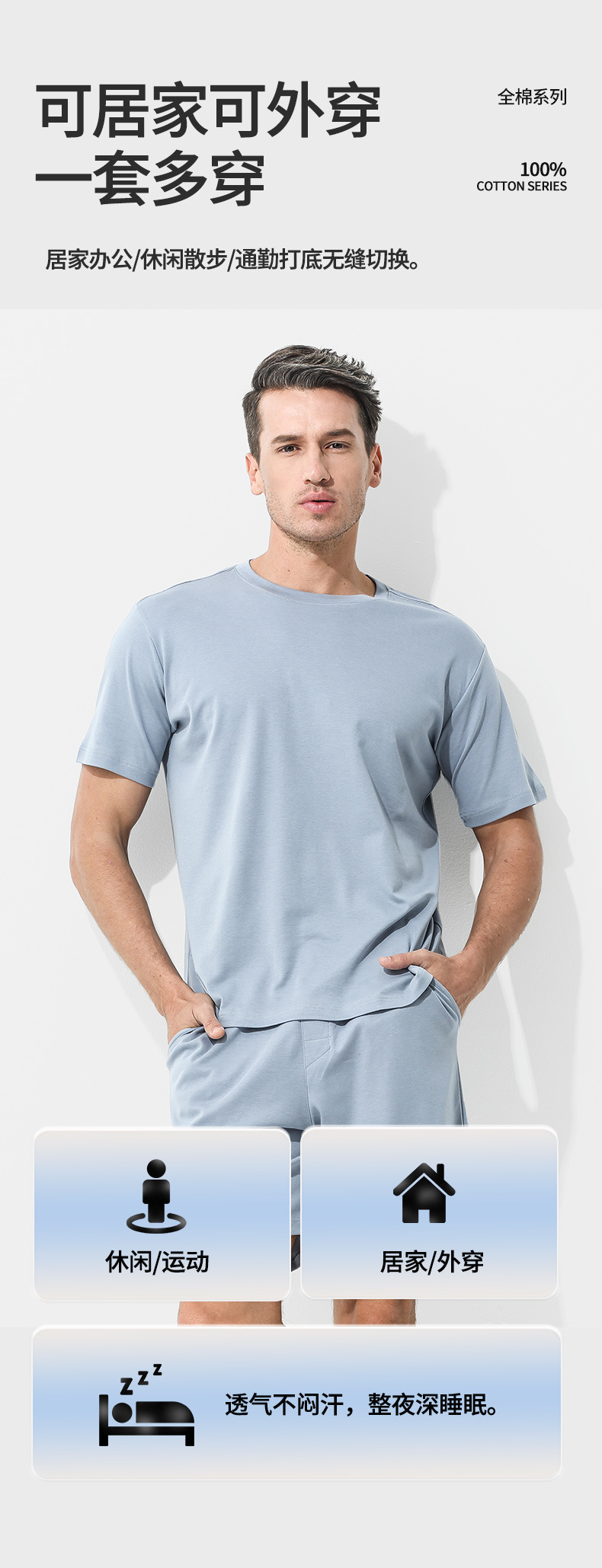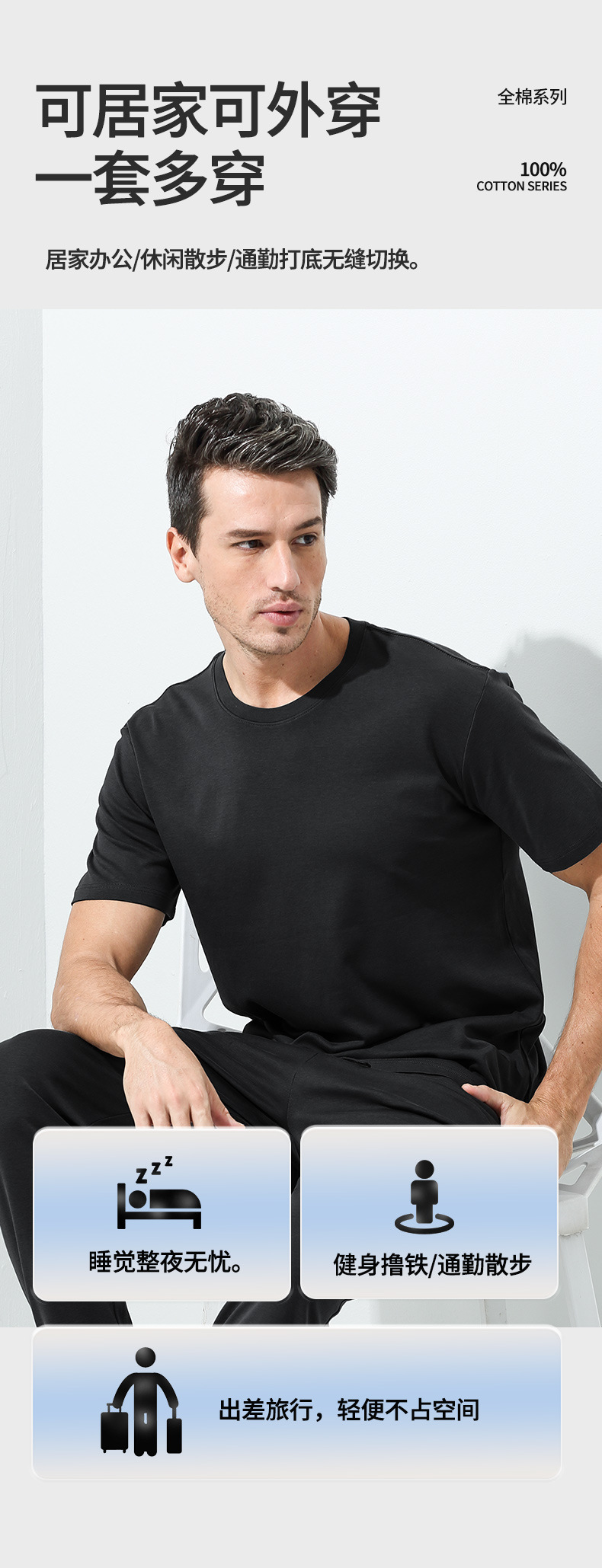 【大牌专柜品质】【水柔天山长绒棉】男士圆领休闲套装 顺滑柔软亲肤透气套件