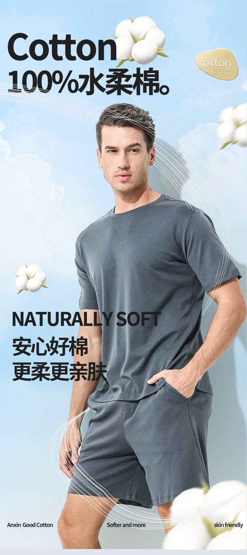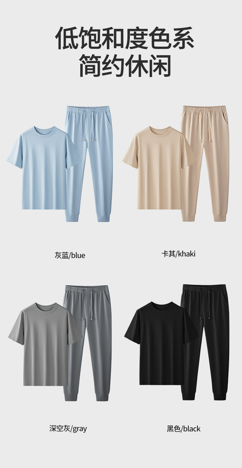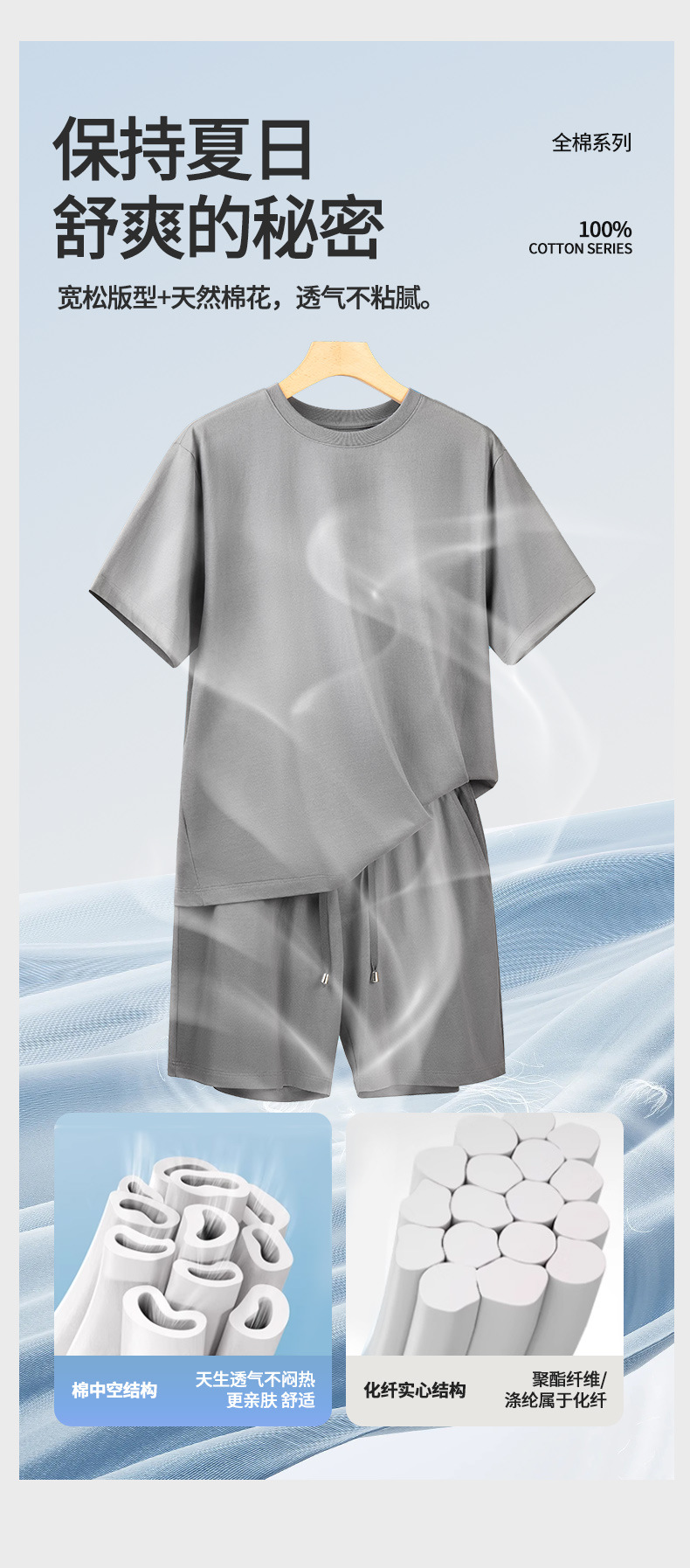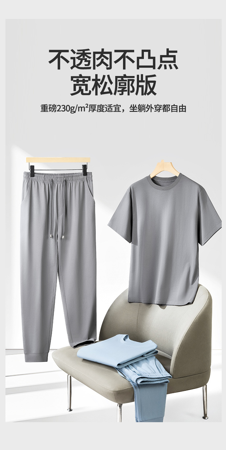 【大牌专柜品质】【水柔天山长绒棉】男士圆领休闲套装 顺滑柔软亲肤透气套件