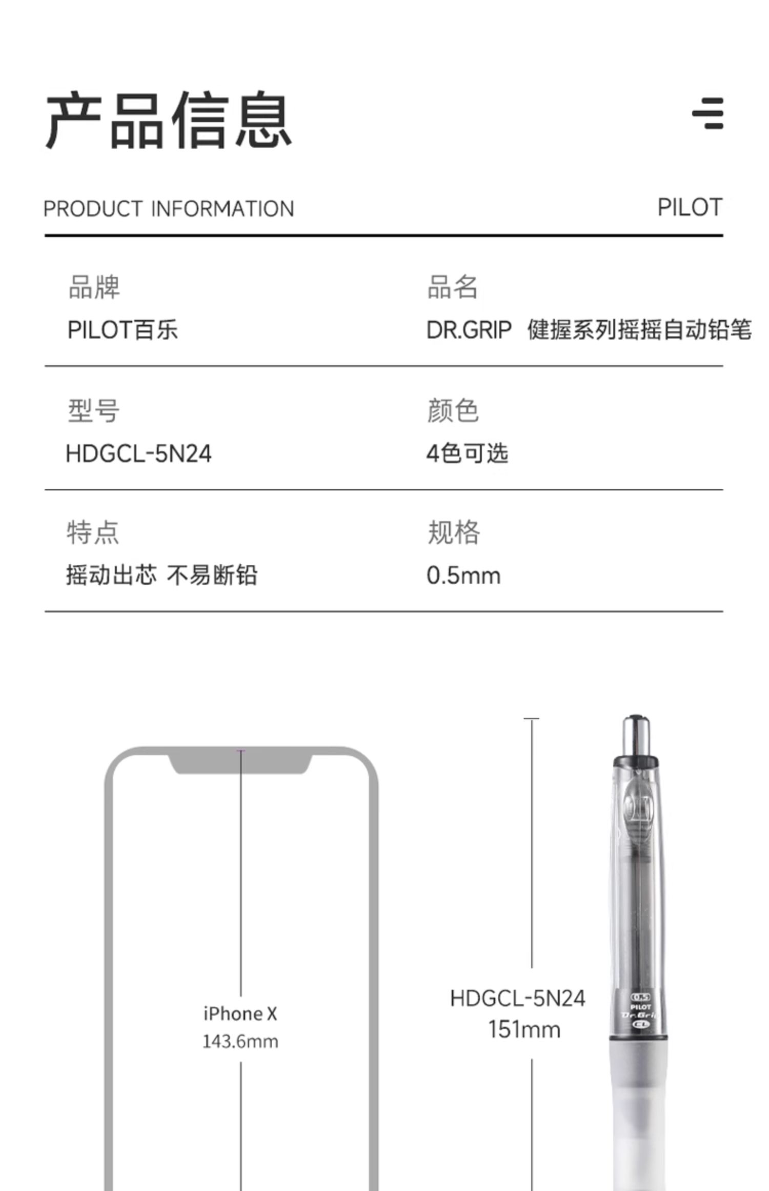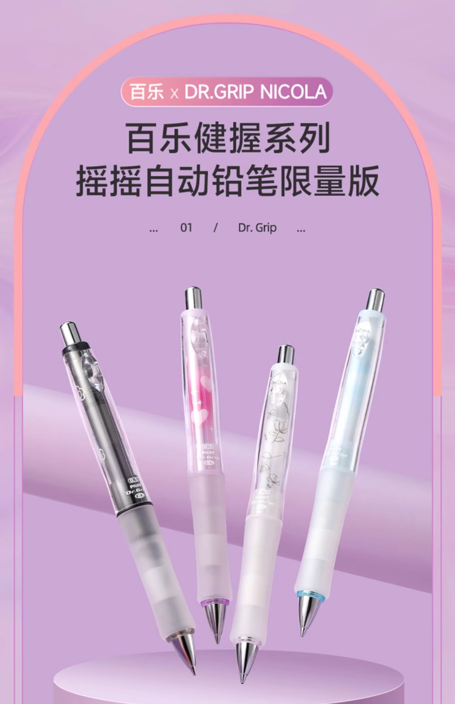 PILOT百乐自动铅笔0.5健握系列摇摇铅Dr.Grip Nicola联名限量版套装自动铅笔小学生专用不易断芯