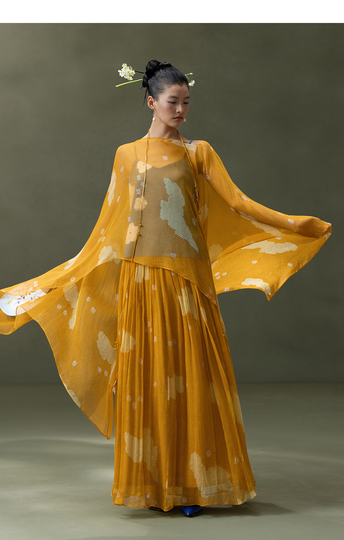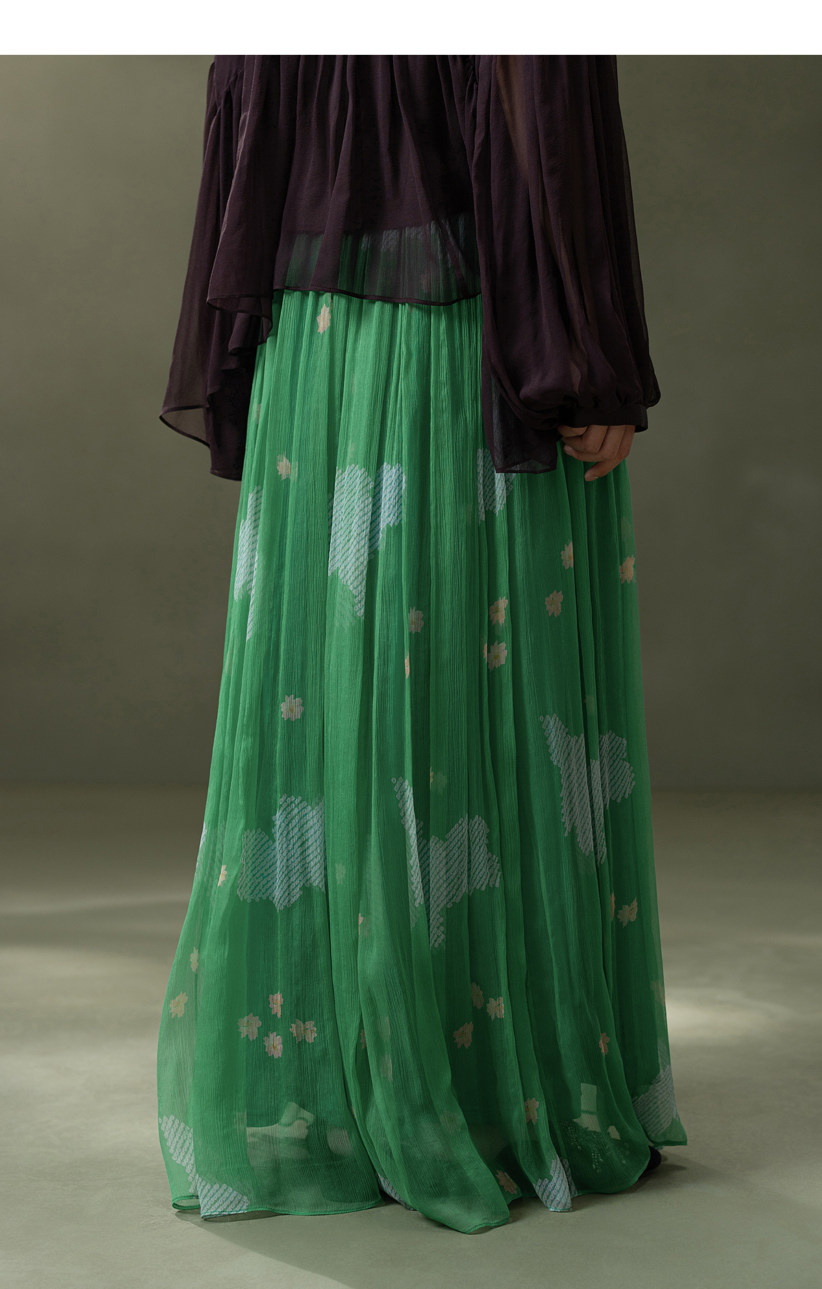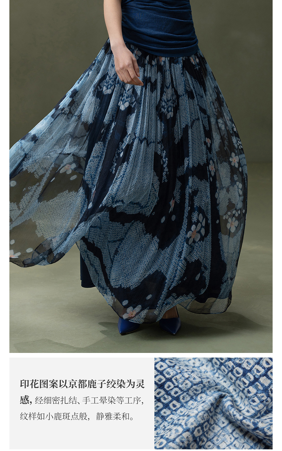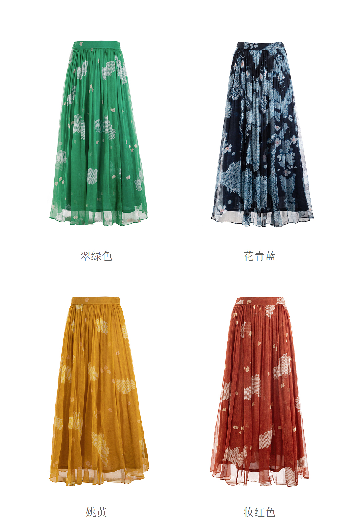 【林栖设计小店】浮云逸然|桑蚕丝鱼子缬印花优雅百搭多色2026夏新款宽松半身裙1962020