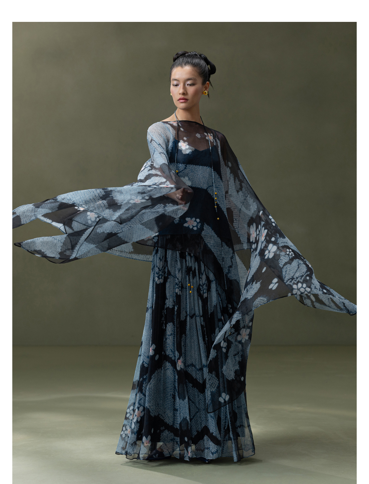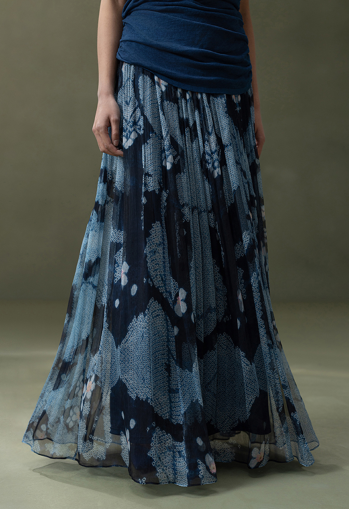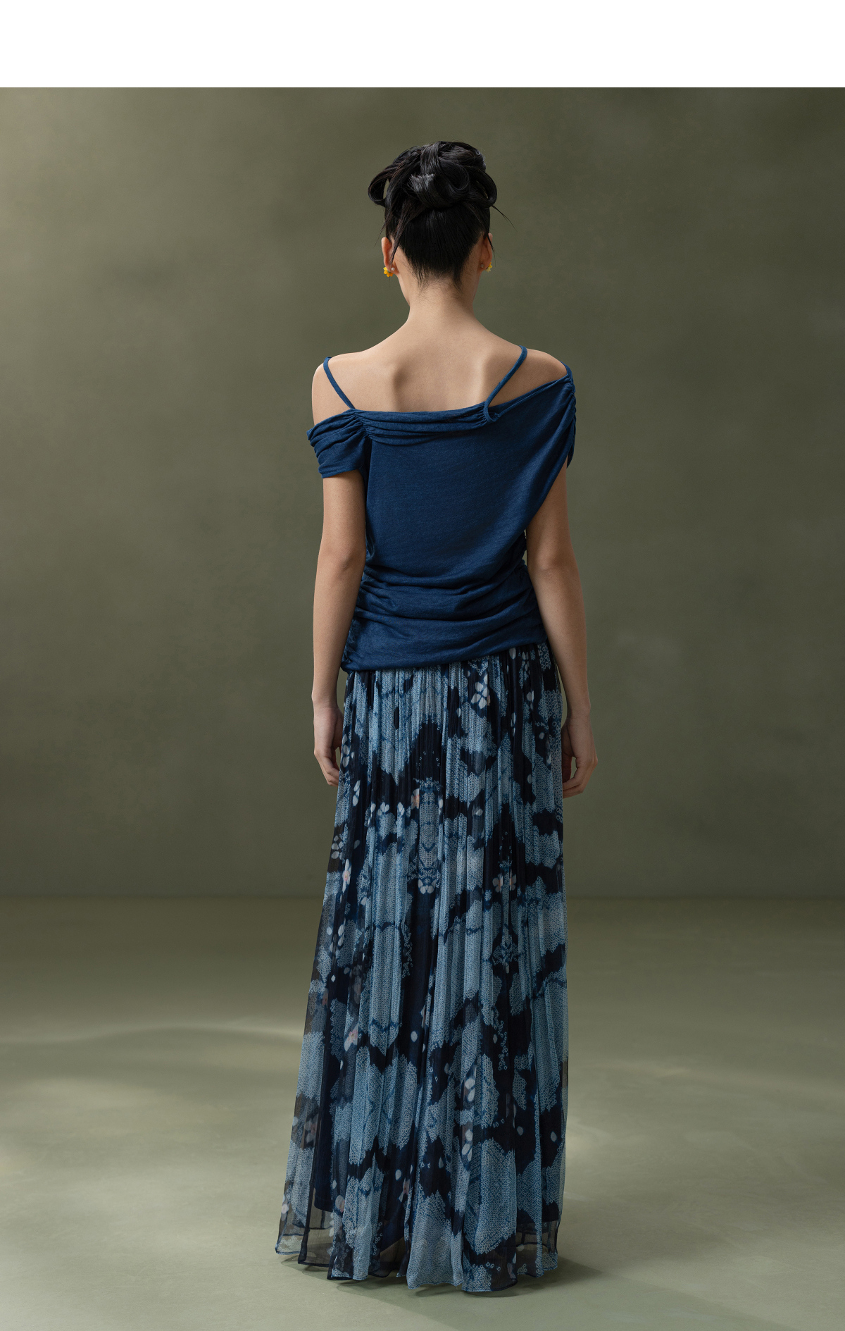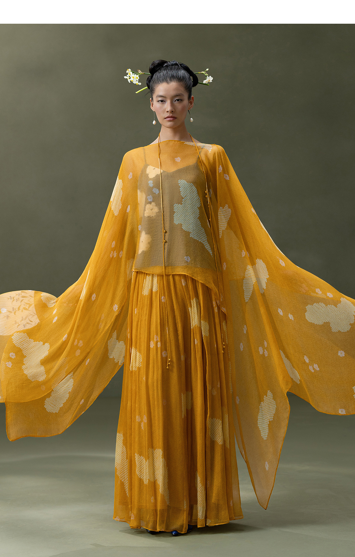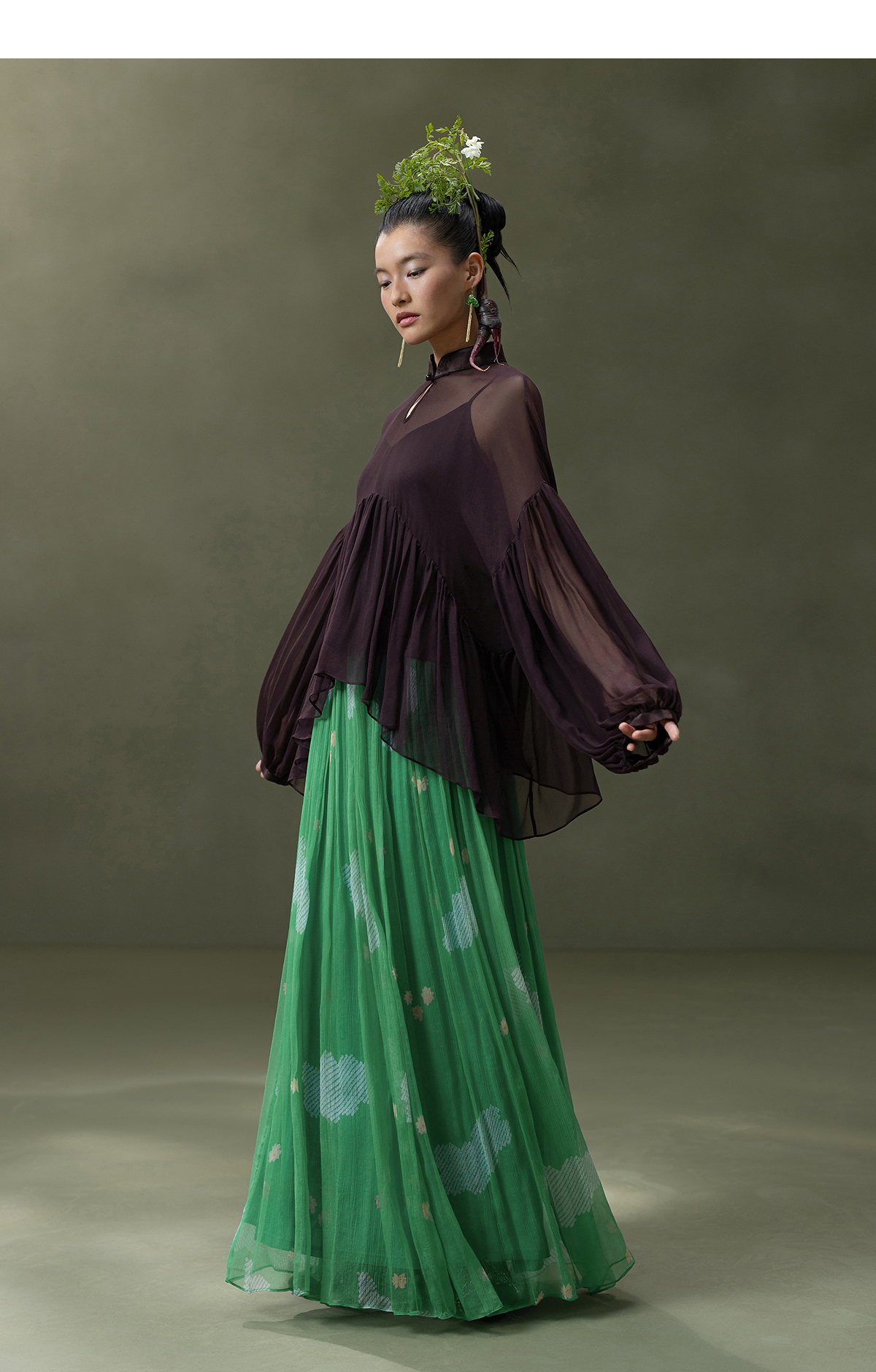 【林栖设计小店】浮云逸然|桑蚕丝鱼子缬印花优雅百搭多色2026夏新款宽松半身裙1962020