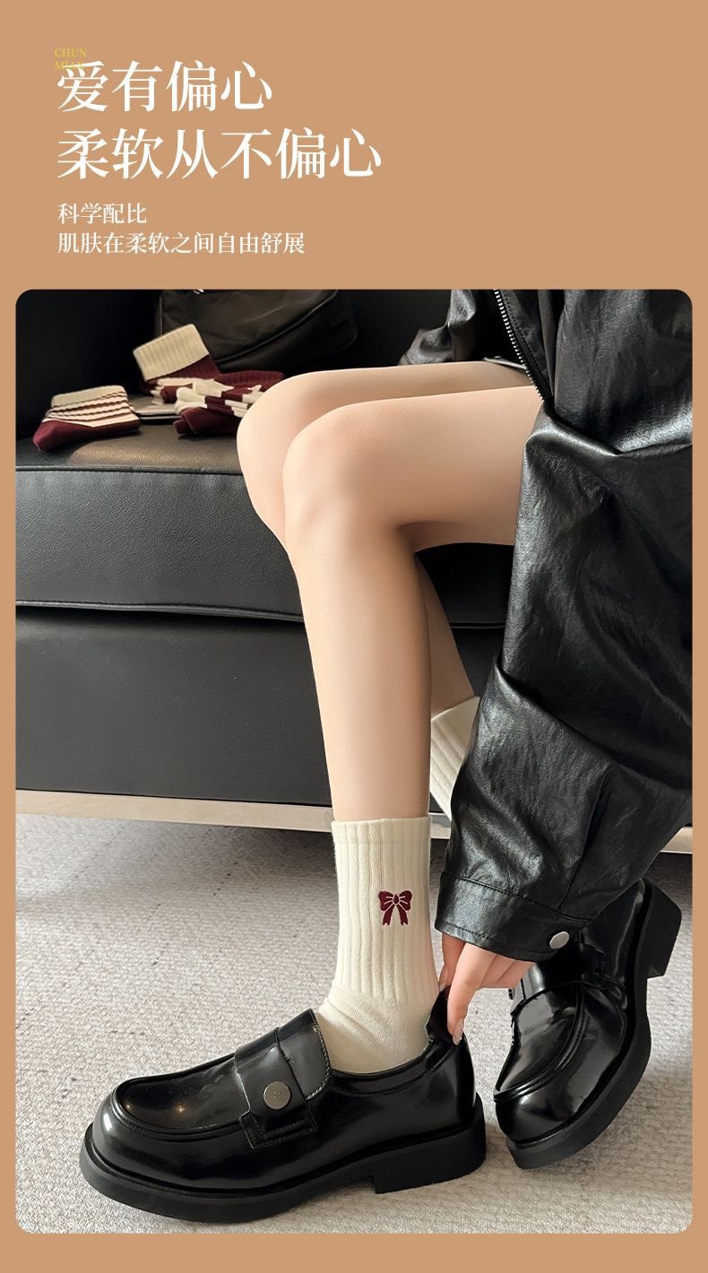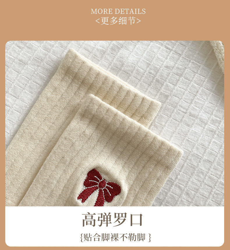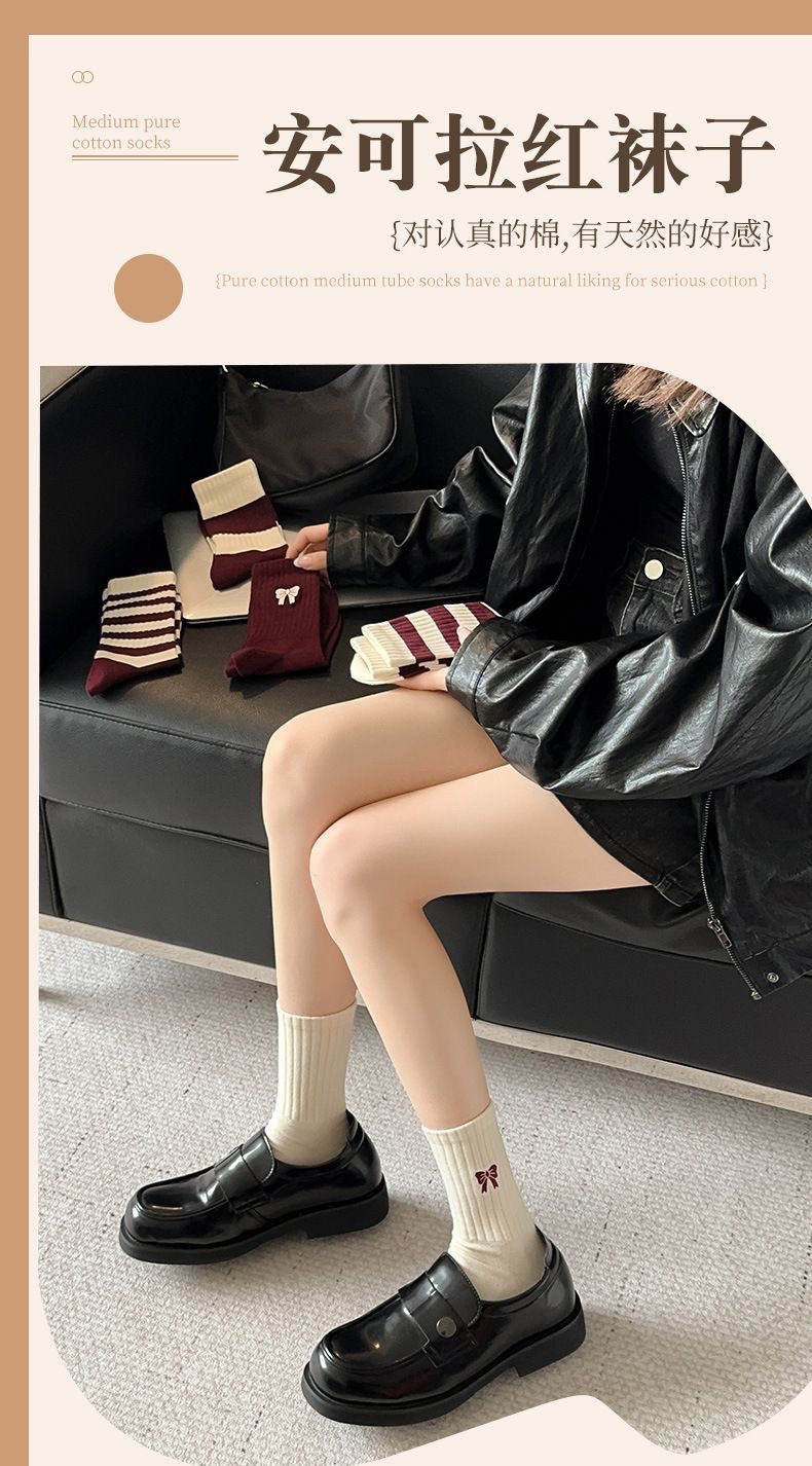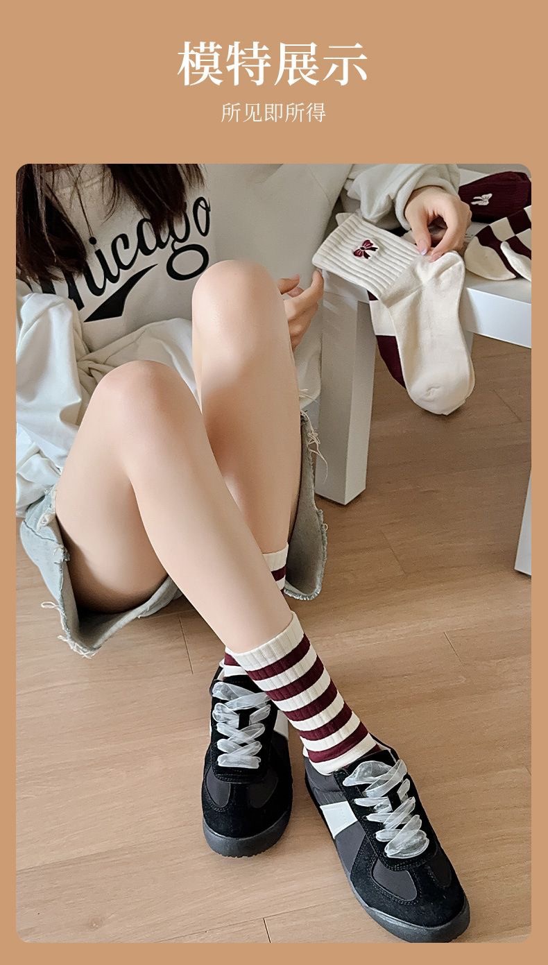 巨划算19.9六双!【甄选品质天然细线❗️柔软舒适通透呼吸】袜子女中筒袜秋季安可拉高筒蝴蝶结条纹堆堆袜百搭运动休闲长筒袜。jb