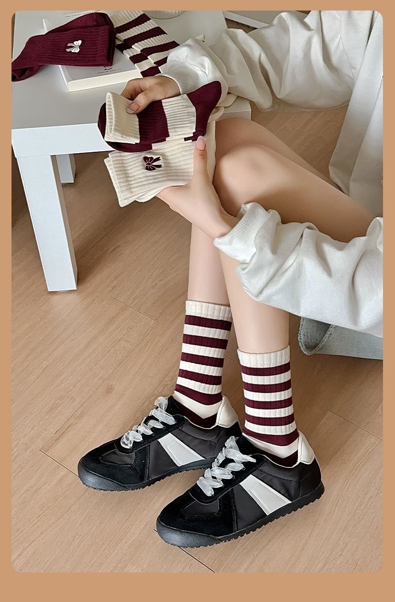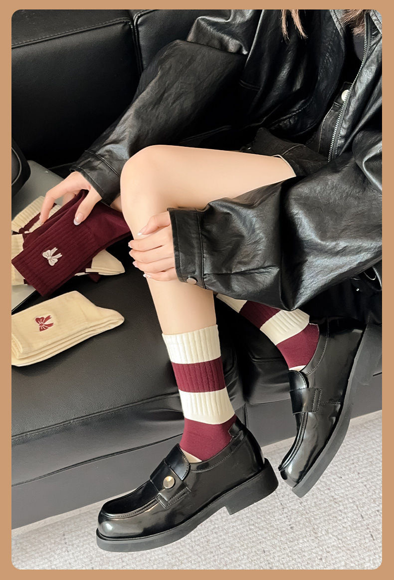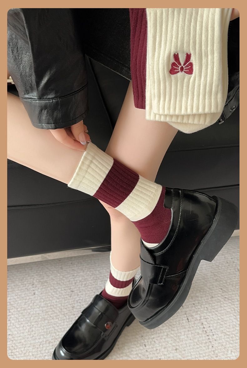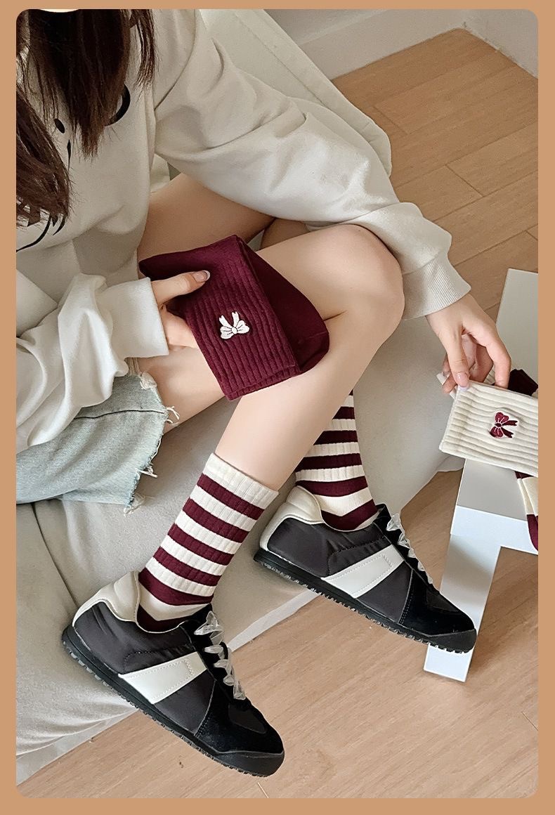 巨划算19.9六双!【甄选品质天然细线❗️柔软舒适通透呼吸】袜子女中筒袜秋季安可拉高筒蝴蝶结条纹堆堆袜百搭运动休闲长筒袜。jb