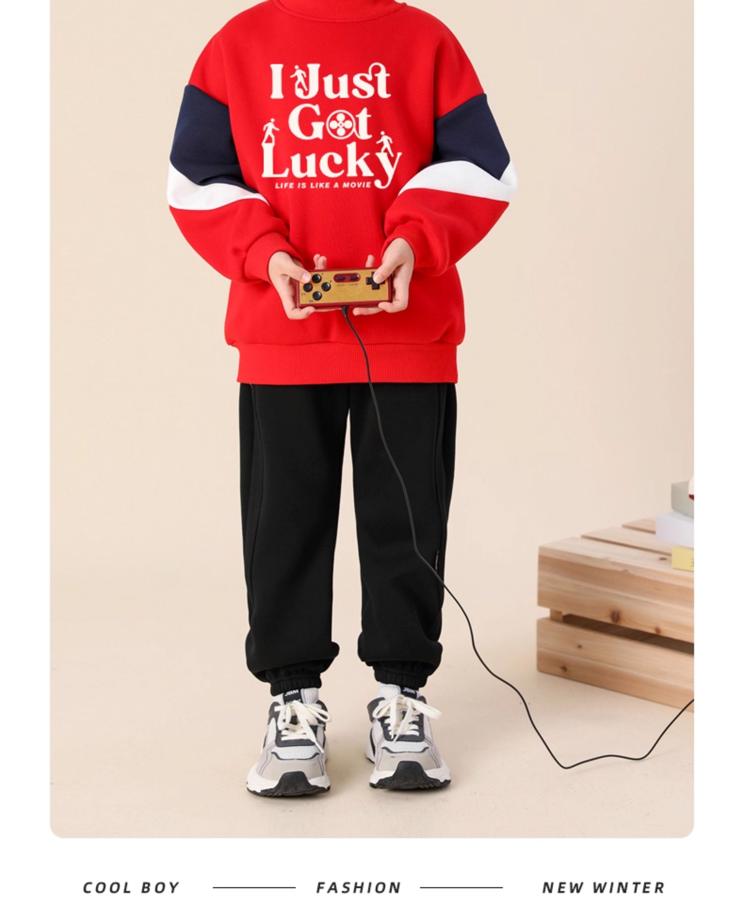 贝田2025新款男童裤子加绒一体绒冬季保暖棉裤儿童酷帅休闲运动裤
