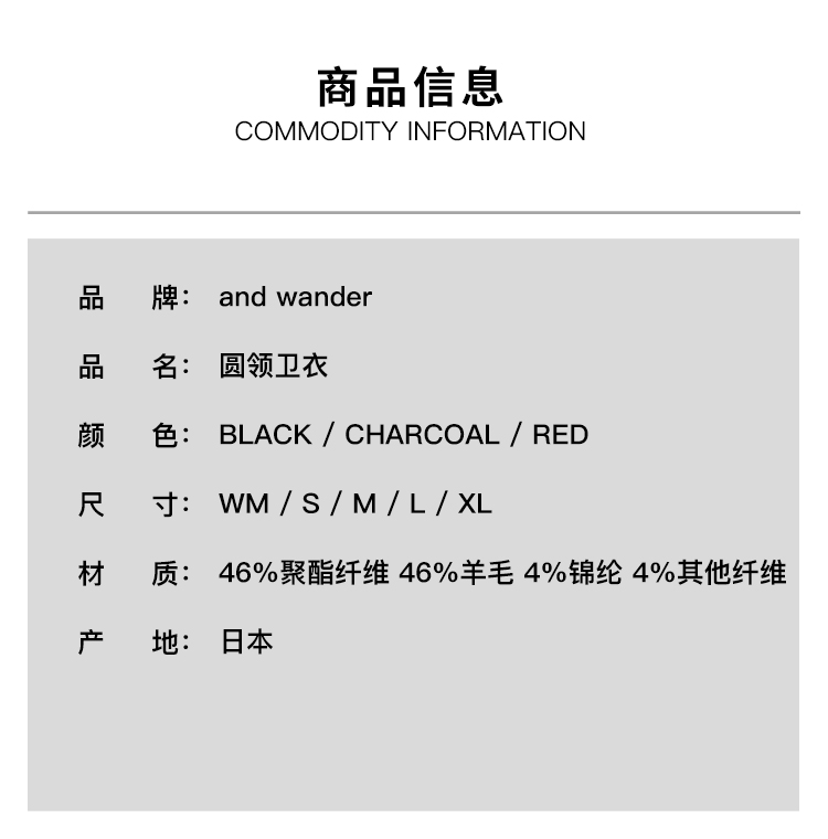 and wander re wool JQ crew neck 男女中性再生羊毛混纺圆领卫衣