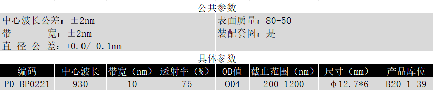 BP930/10K OD4@200-1200 T>75% Φ12.7*6 带通滤光片 (带套圈)