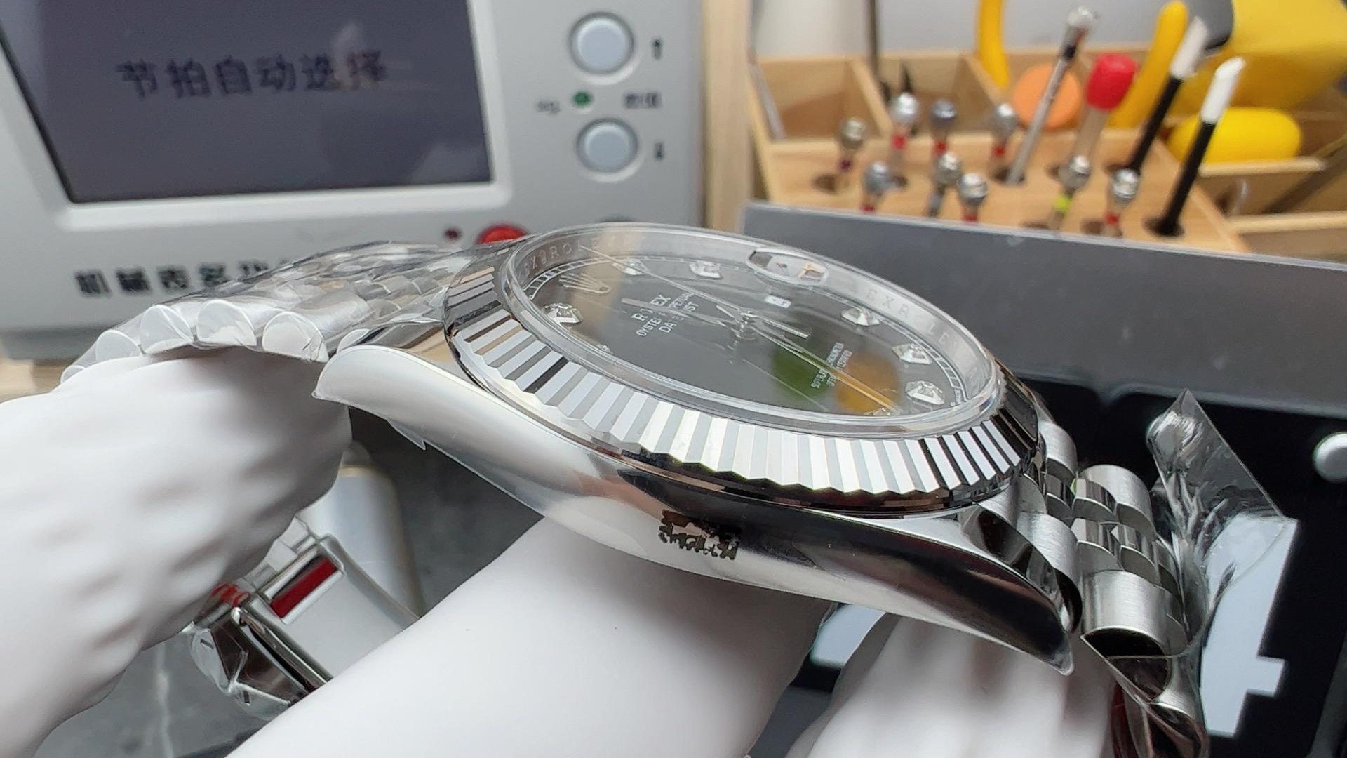 2:整表904L精钢 /搭配ar厂钢带 以及ip真空电镀铂金牙圈 /掉色免费更换