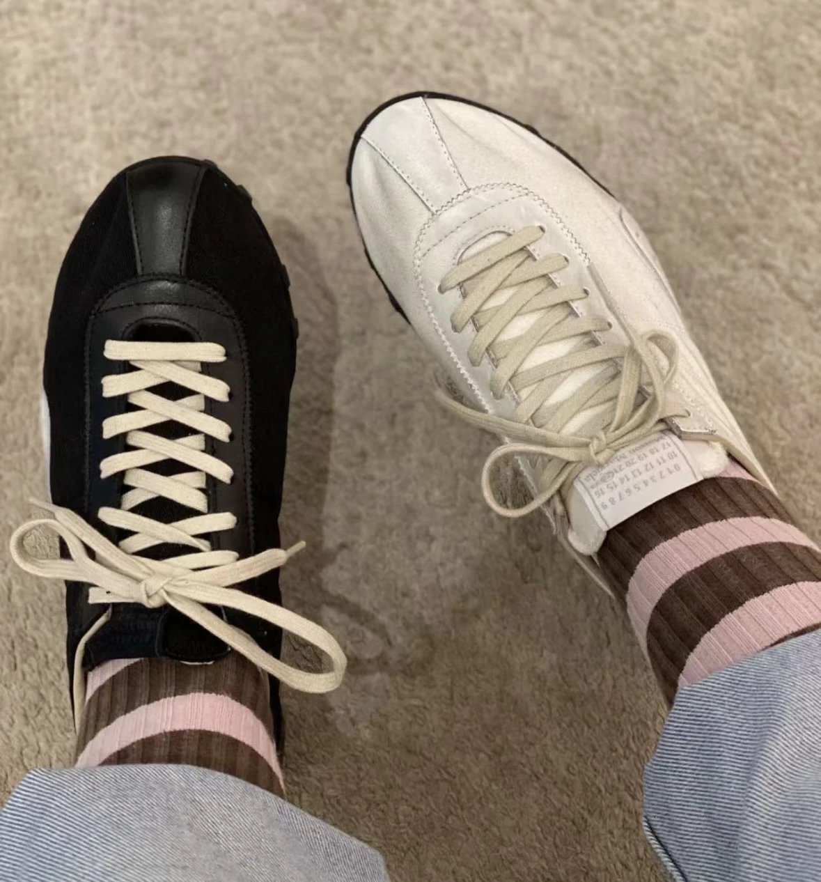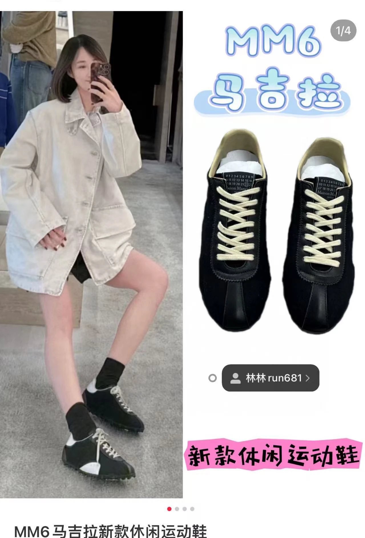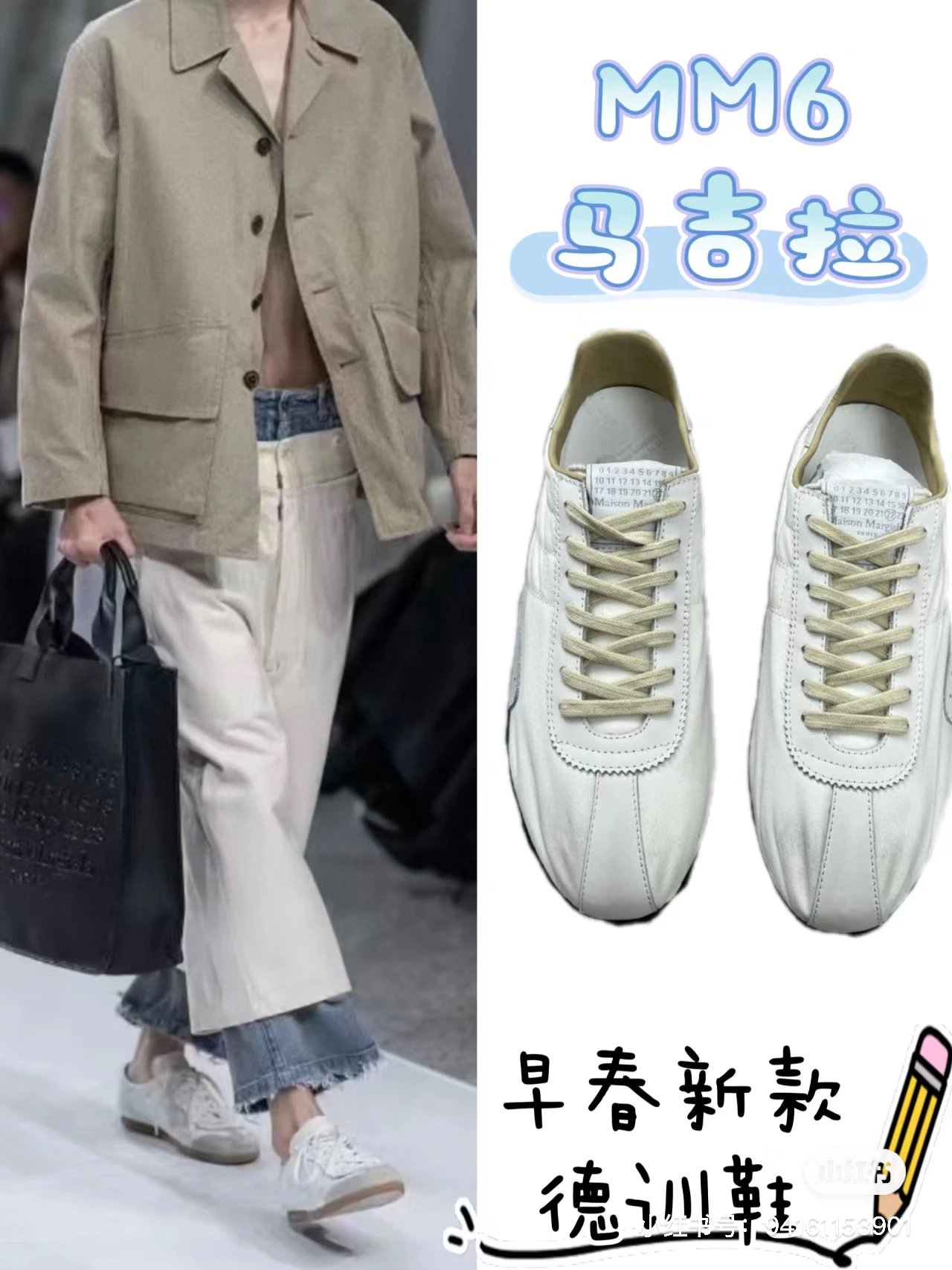 白百合同款 赛车德训鞋 拼色帆布休闲鞋 MM6赛车鞋
