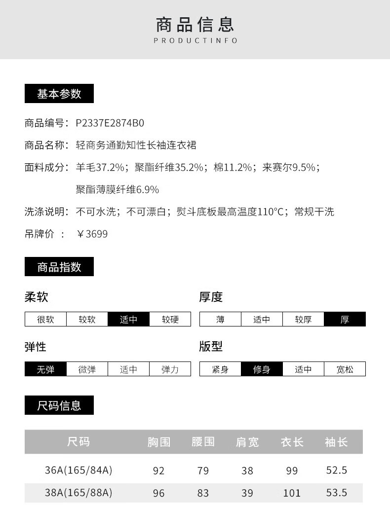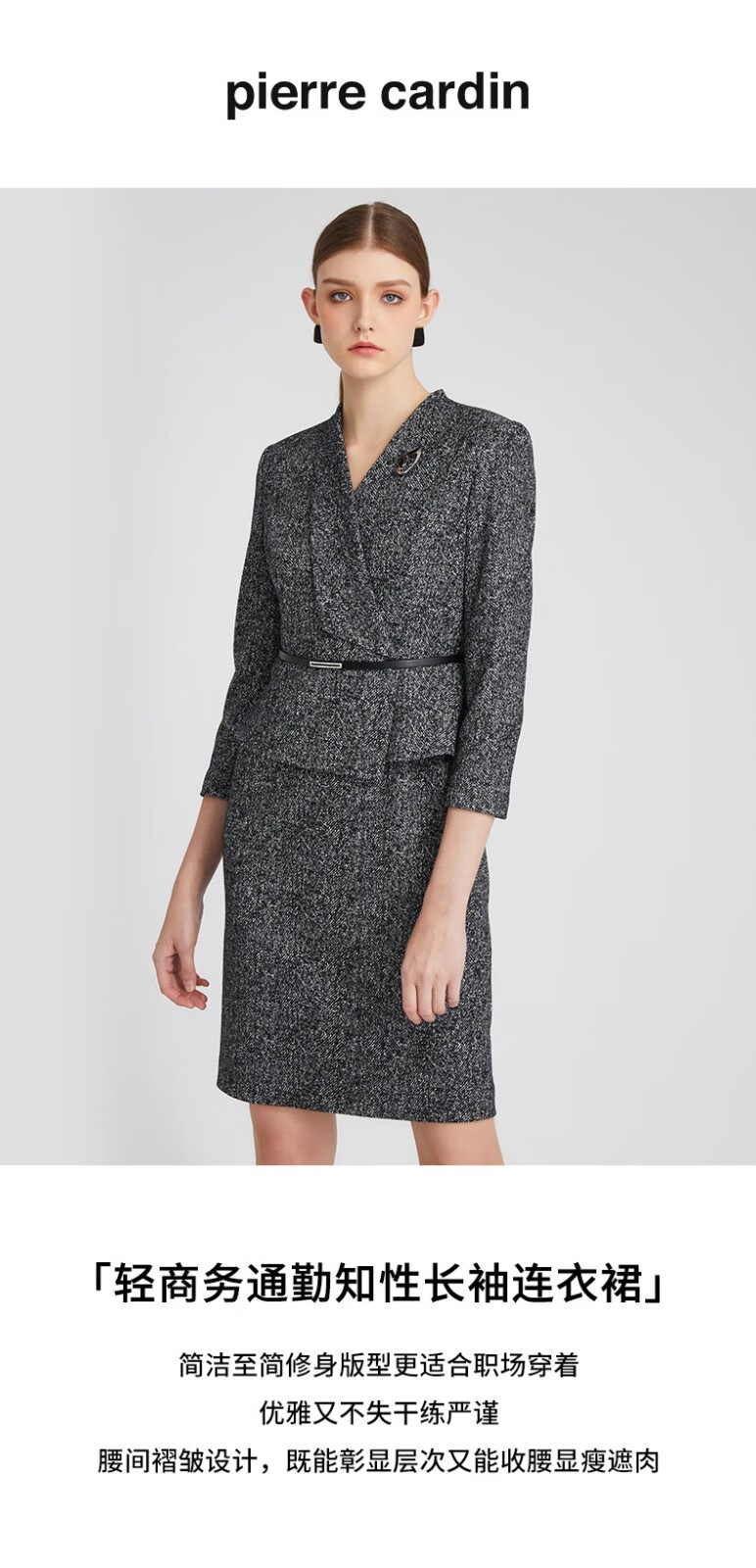 皮尔卡丹女装轻商务通勤修身简约知性气质连衣裙P2337E2874B0