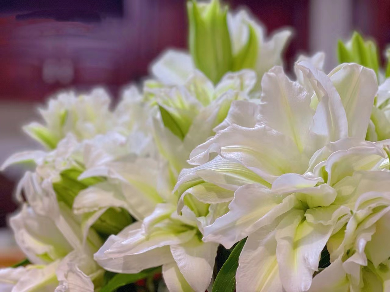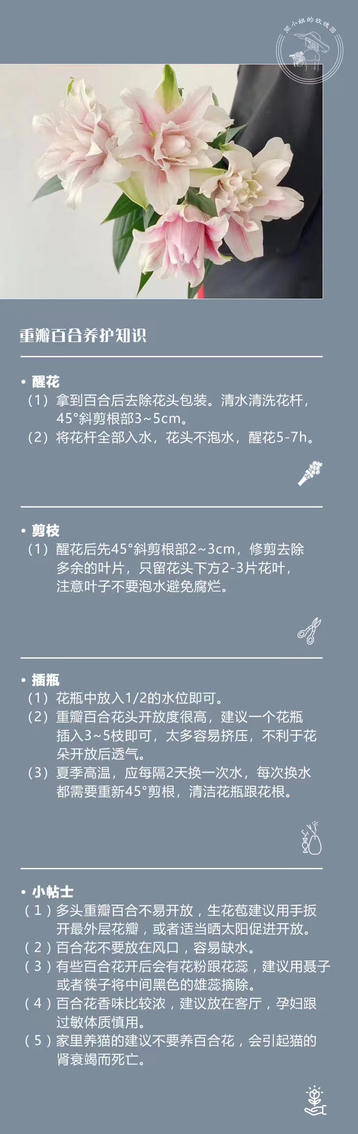 【特点】:对花粉过敏人群友好,因为大部分重瓣百合都是没有花蕊的,艾莎也是开到最后都看不到花蕊,带有淡香