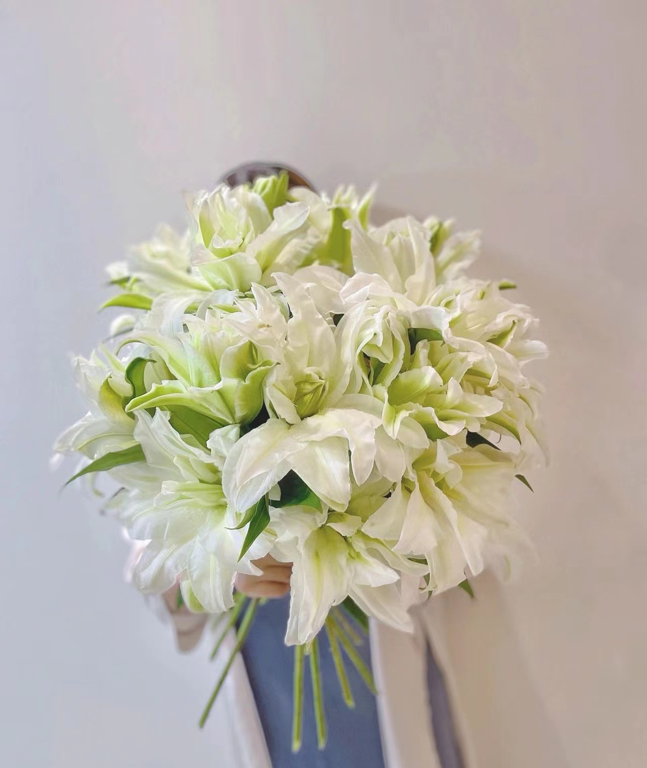艾莎重瓣百合【山野千里,你是微风中的欢喜】简小姐精选白绿复色重瓣百合 艾莎10+2花头(防花损)2束包邮 下单5天发货