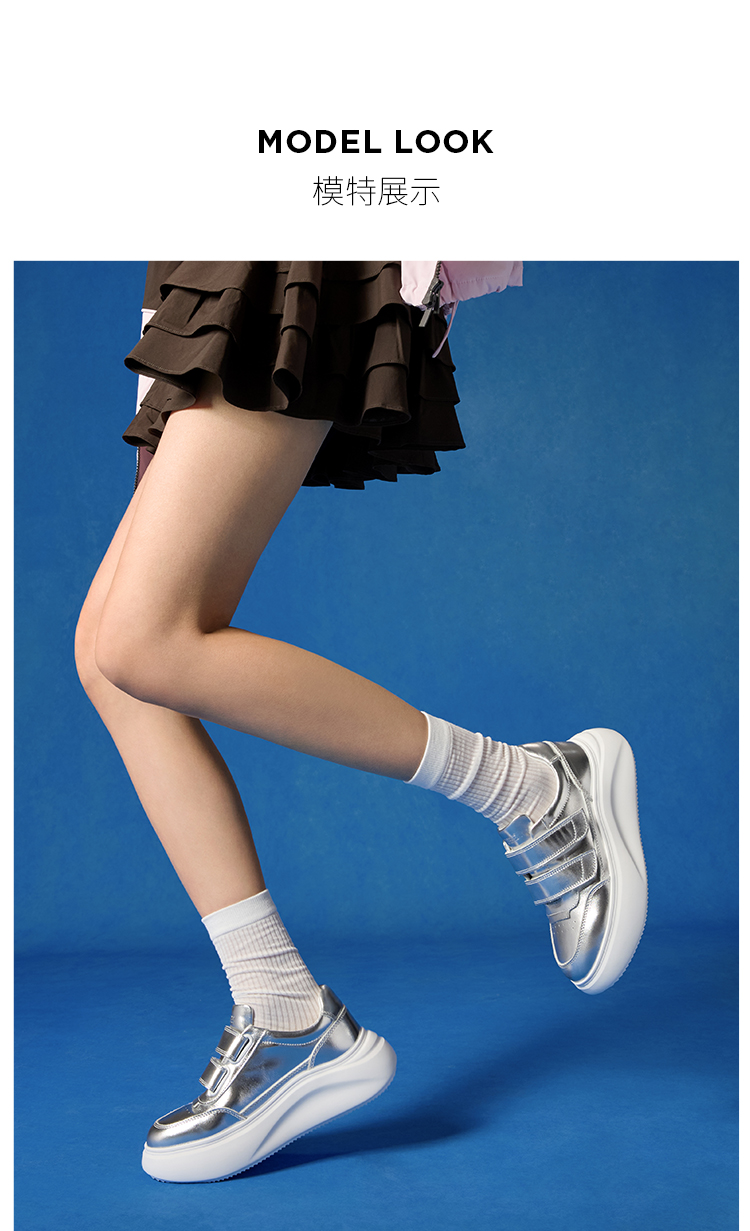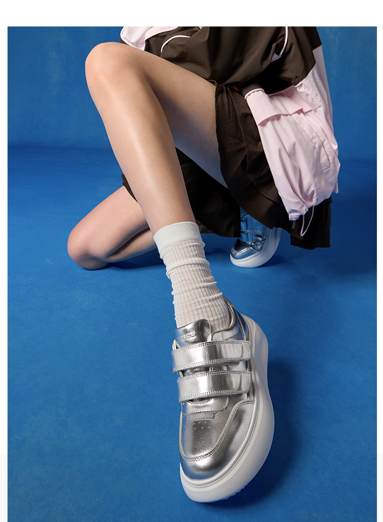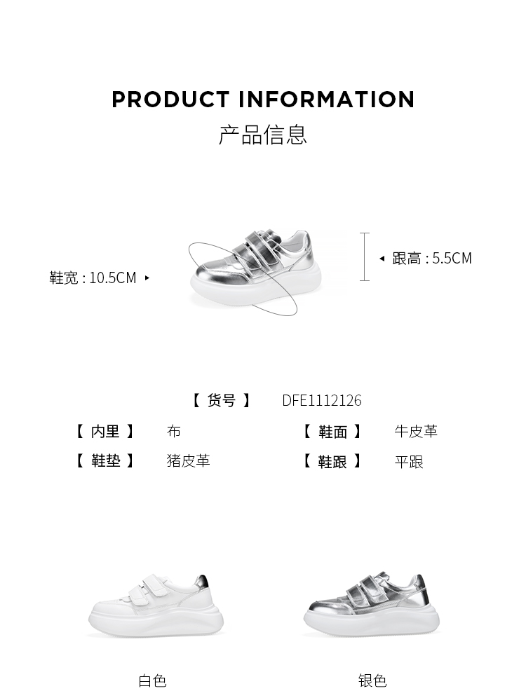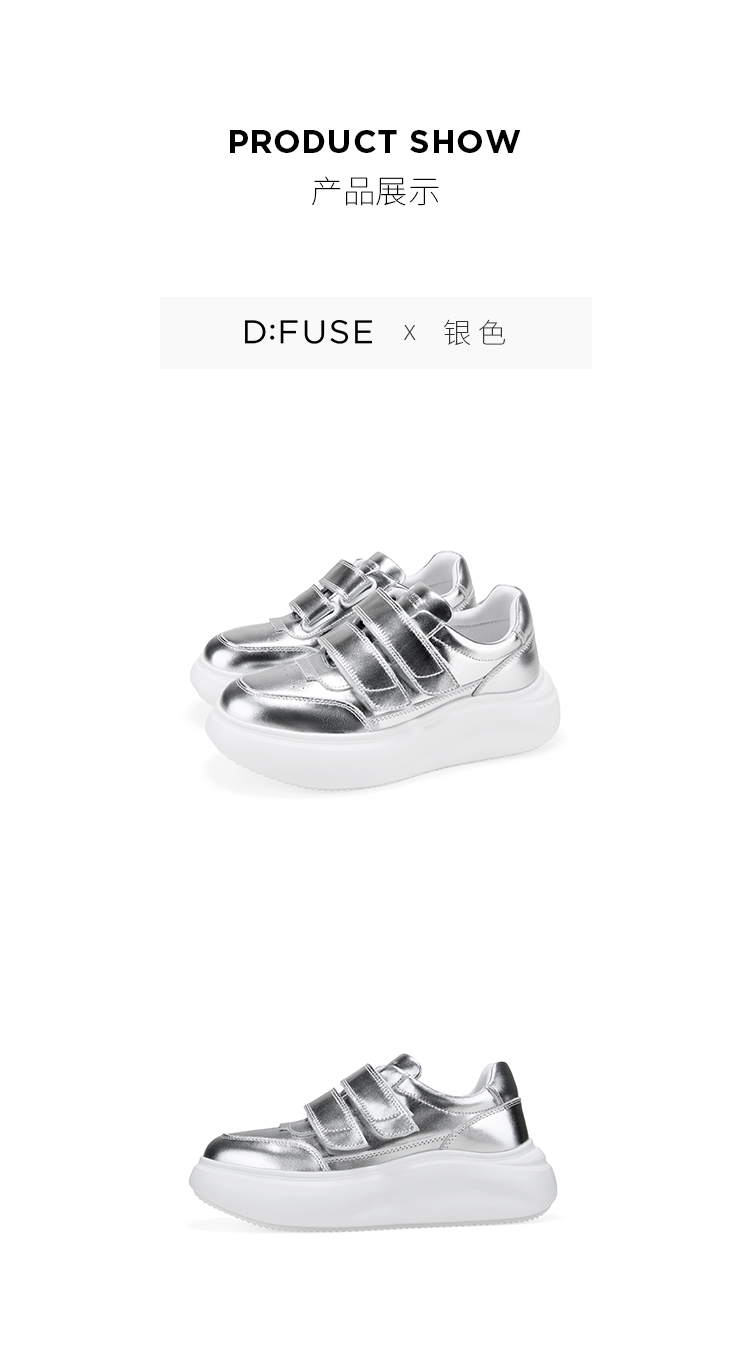Dfuse迪芙斯2026春季新款轻便厚底增高魔术贴松糕鞋休闲鞋运动板鞋DFE1112126