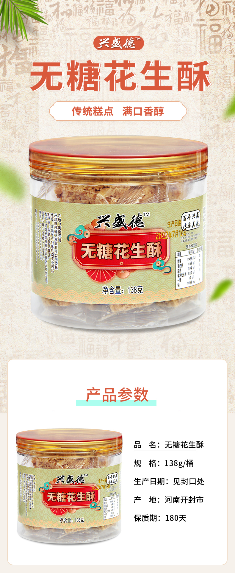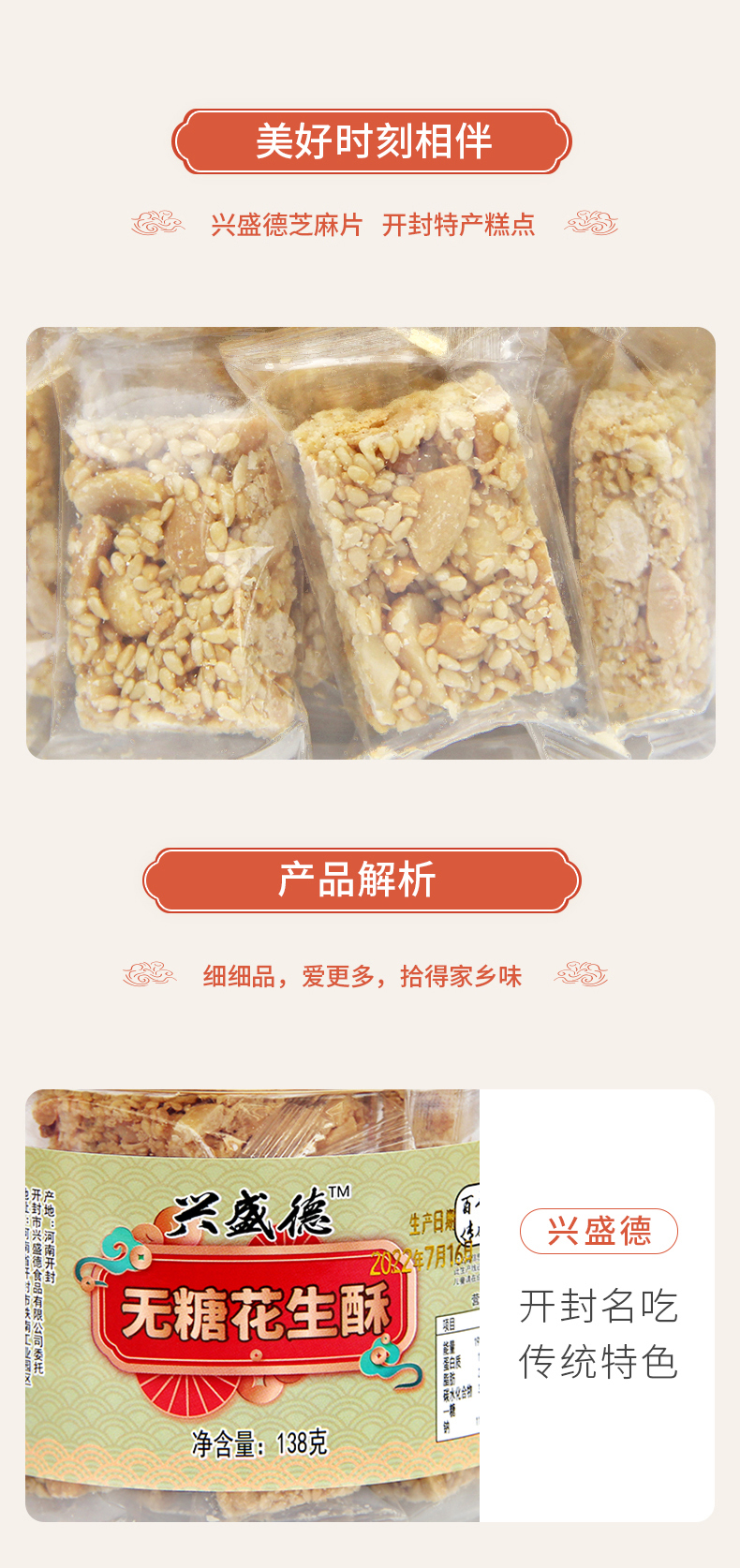 兴盛德官方店无蔗糖无糖花生酥代餐河南开封特产礼物糕点零食