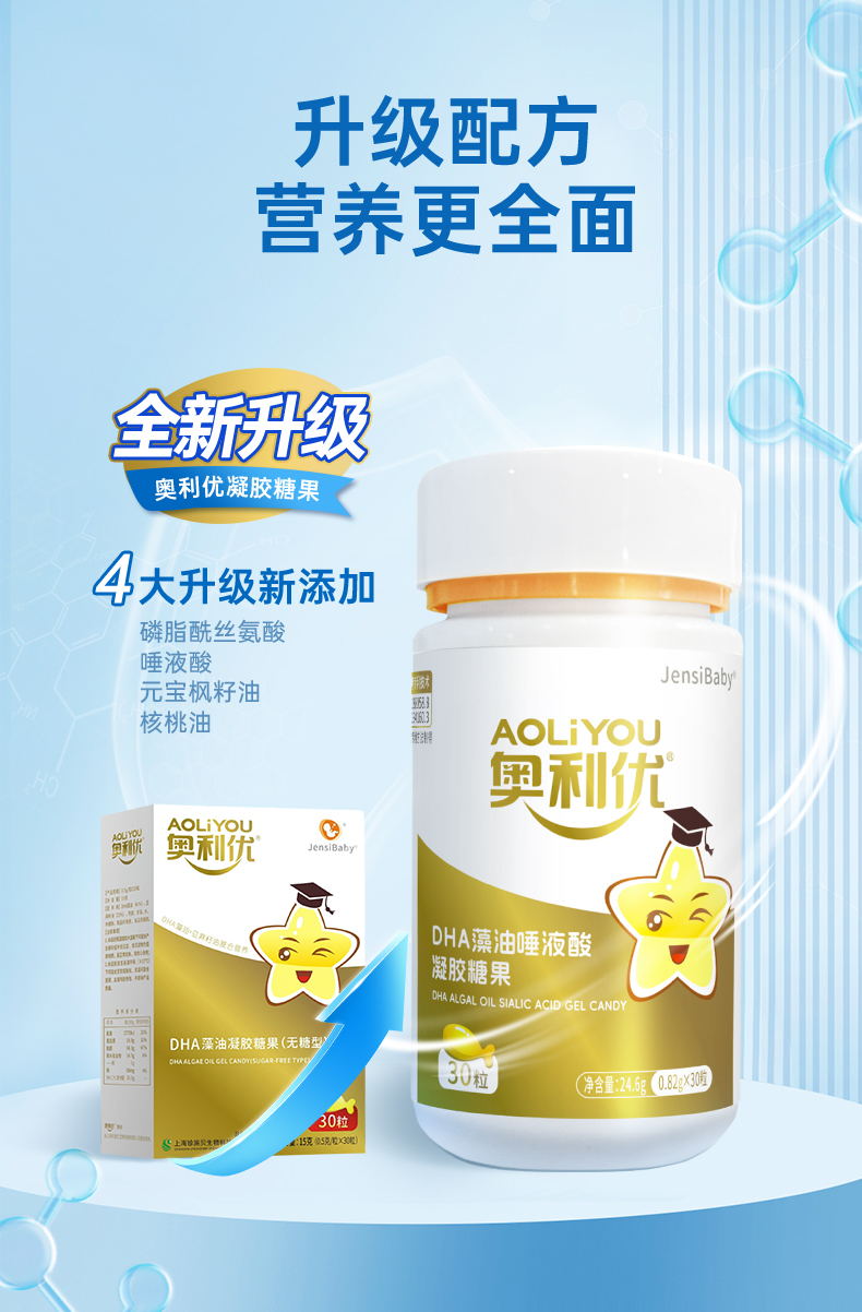 F005 奥利优升级强脑配方DHA唾液酸凝胶糖果孕妇胎儿婴童眼脑神经发育0.5g*30粒/盒