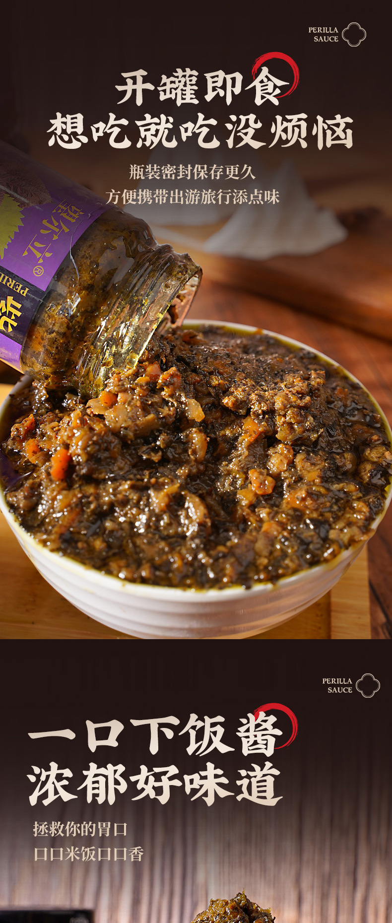 【咸鲜下饭!紫苏酱新鲜香辣酱】传统工艺好味道,原味/香辣,两种美味选择,开罐即食想吃就吃没烦恼,一口下饭酱,浓郁好味道,拌面拌饭神器,素食开胃下饭菜,辣椒酱即食龙虾调味料L