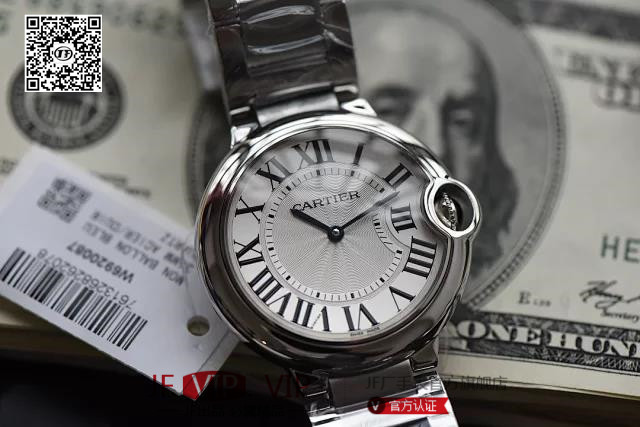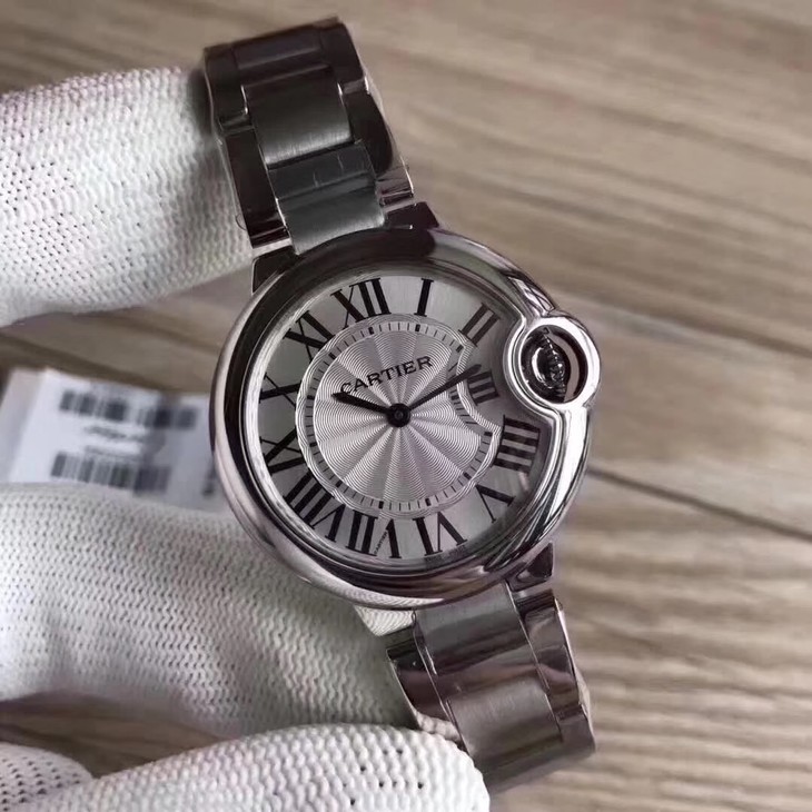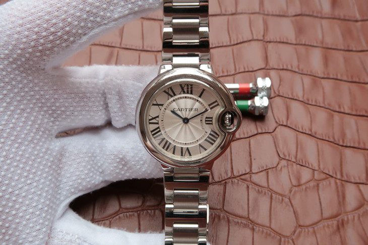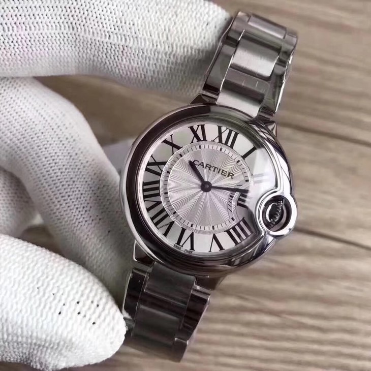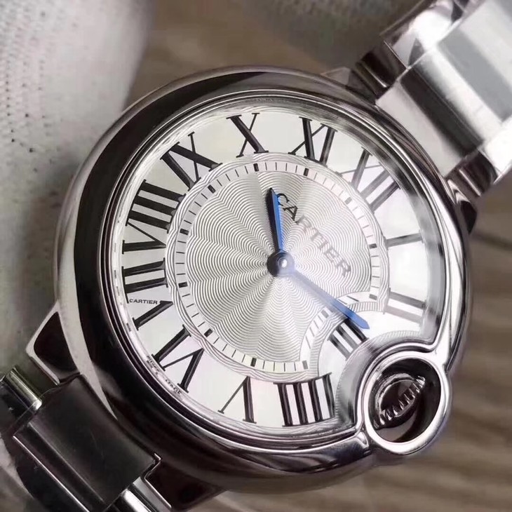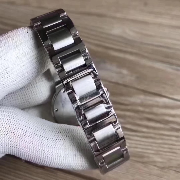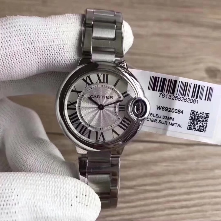 33气球V6卡地亚33毫米蓝气球,型号:W6920084,卡地亚原厂石英机芯,机芯型号:057,精钢表盘镀银,女士,不透底,精钢,镶嵌一颗蓝色凸圆形