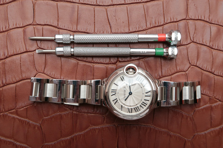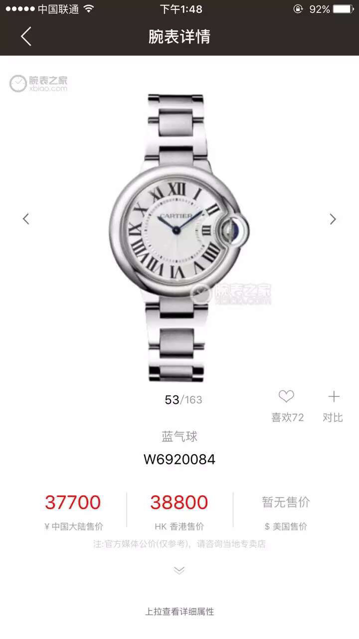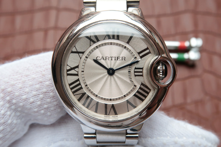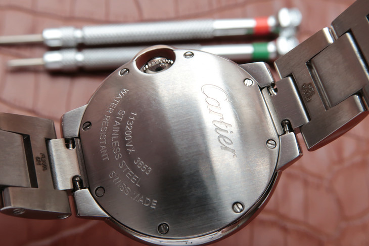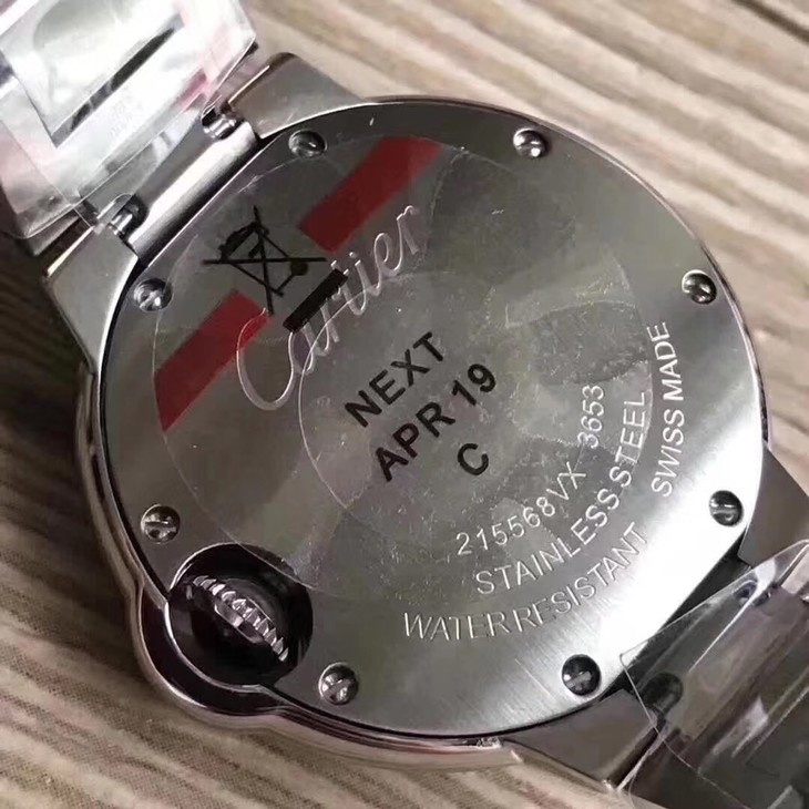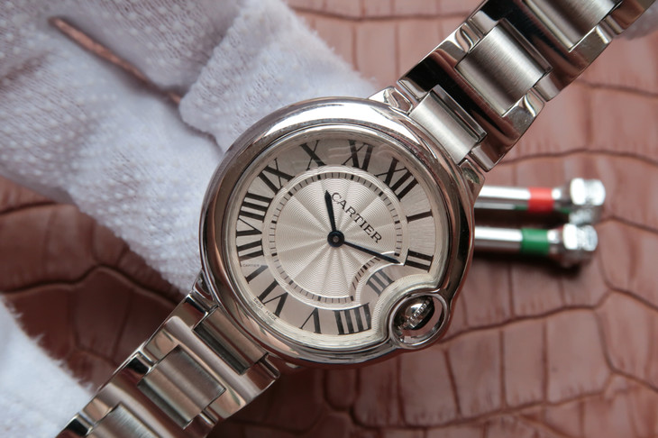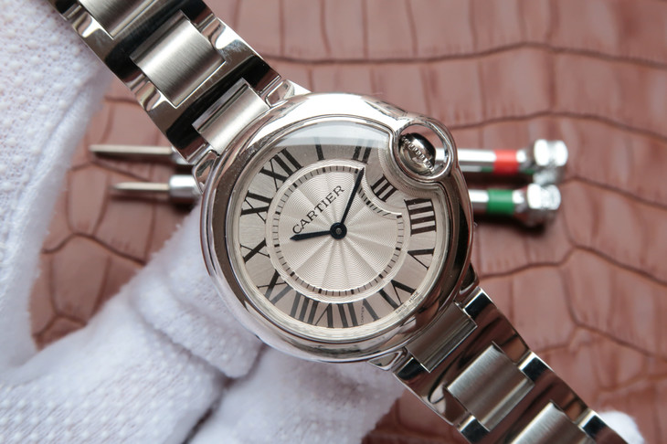 33气球V6卡地亚33毫米蓝气球,型号:W6920084,卡地亚原厂石英机芯,机芯型号:057,精钢表盘镀银,女士,不透底,精钢,镶嵌一颗蓝色凸圆形
