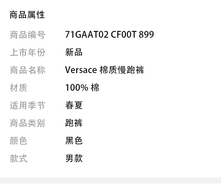 VERSACE JEANS COUTURE 范思哲 男士运动裤 黑色 71GAAT02 CF00T 899