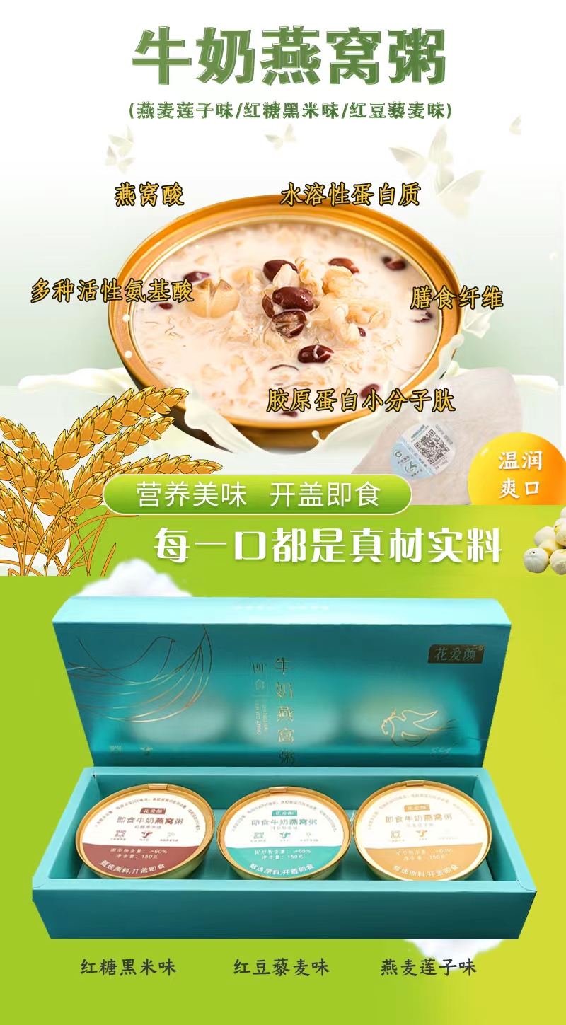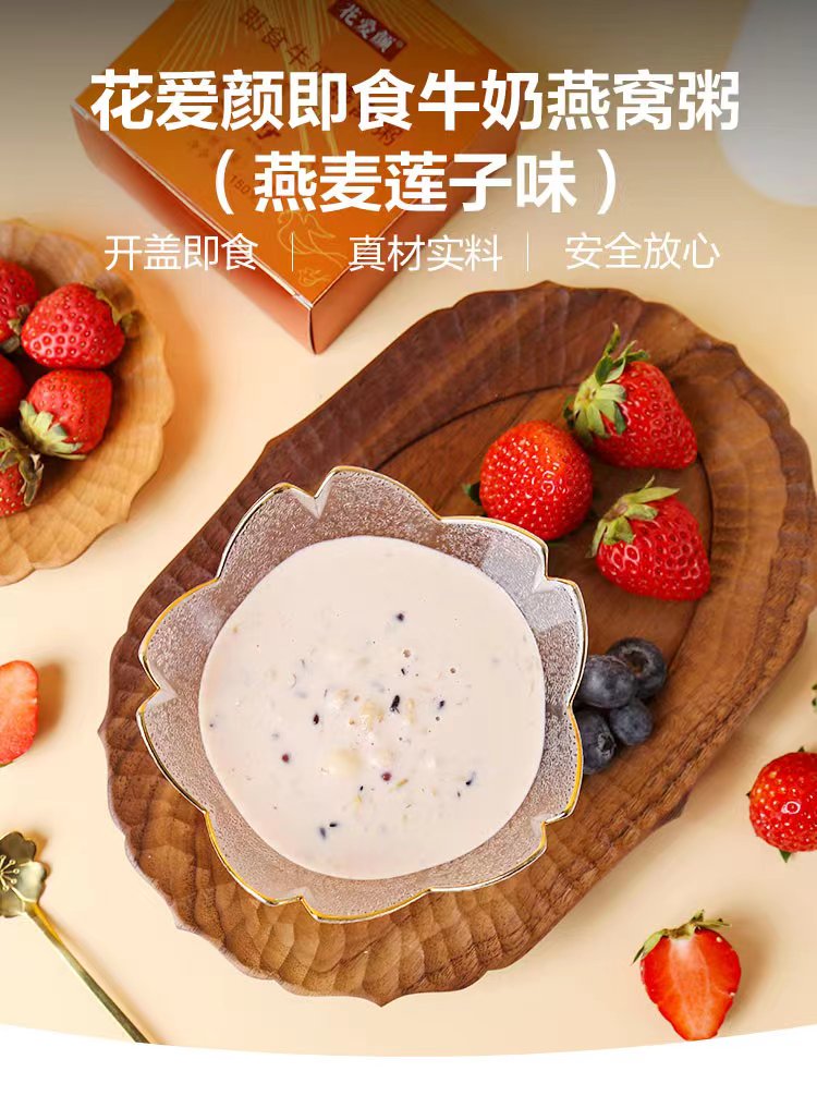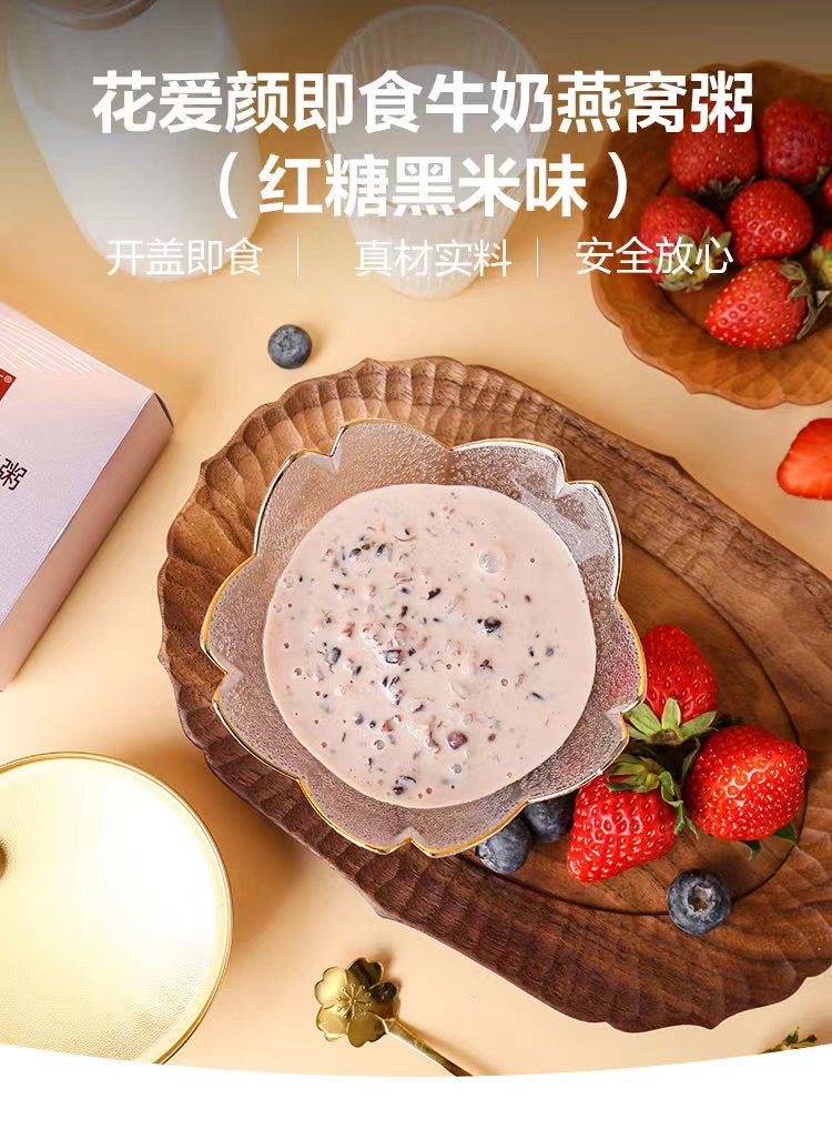 花爱颜即食牛奶燕窝粥(3碗装) (燕麦莲子味/红豆藜麦味/红糖黑米味)