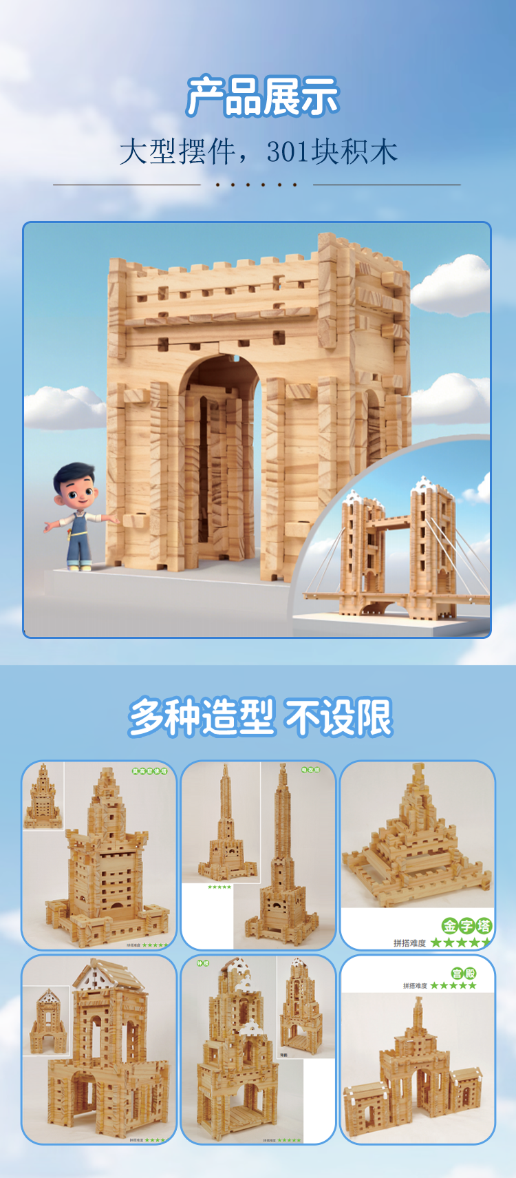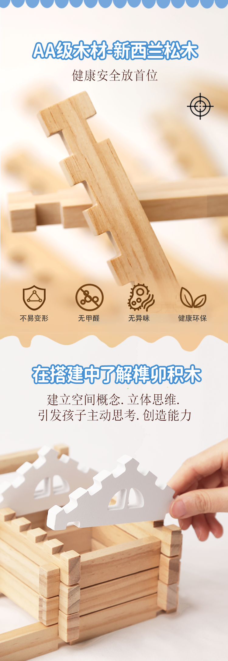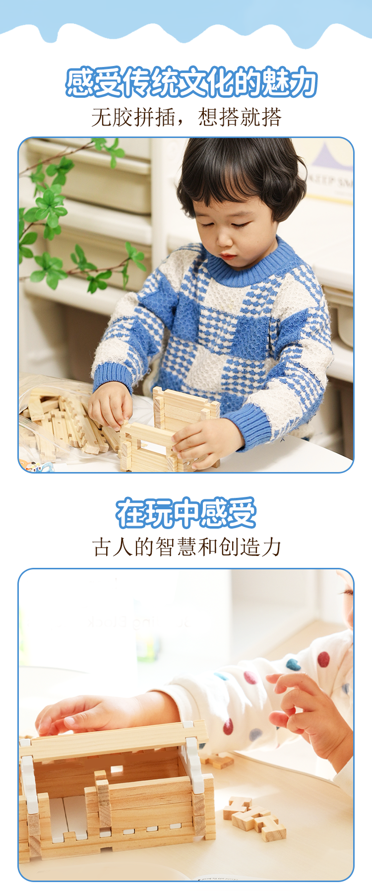【幼儿园合作益智积木】智慧宝盒巧手鲁班榫卯结构积木建筑大师 实木原木头建筑模型 大颗粒木质 儿童新年礼物