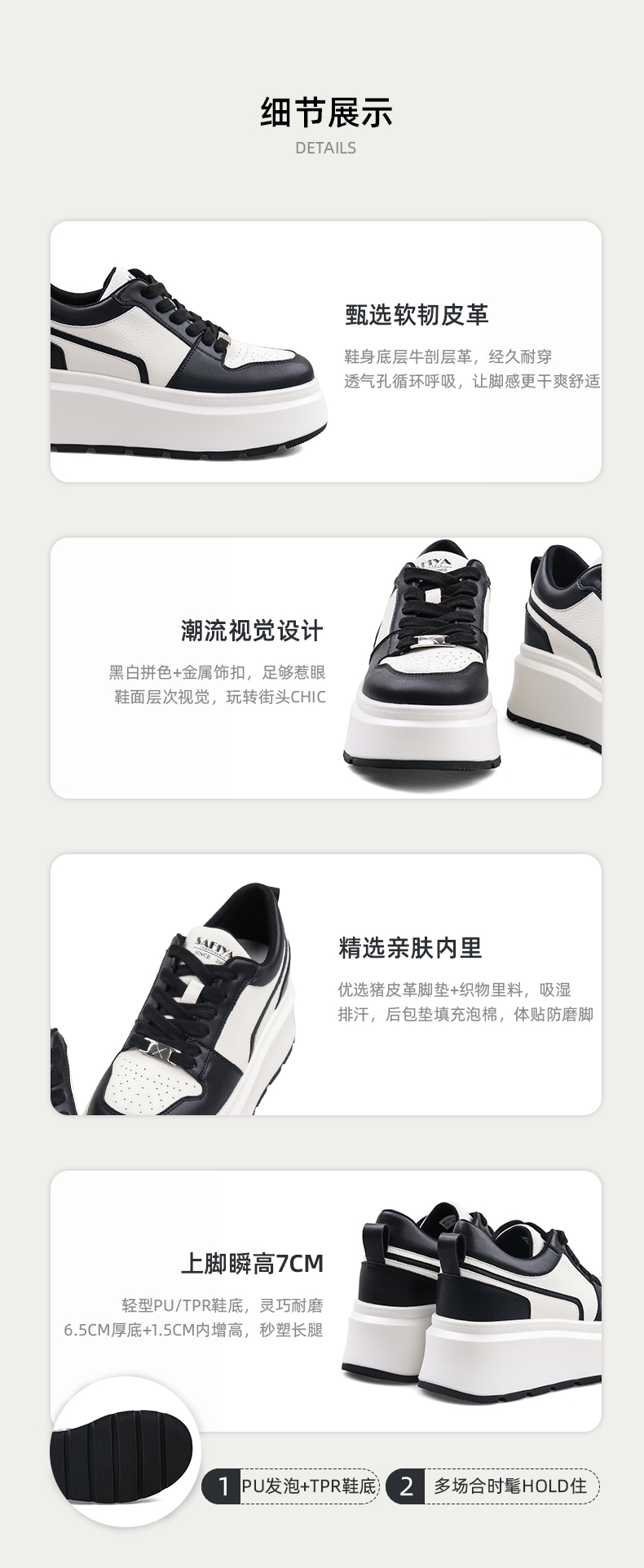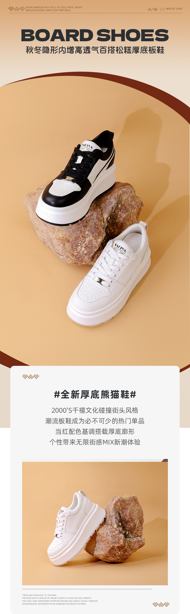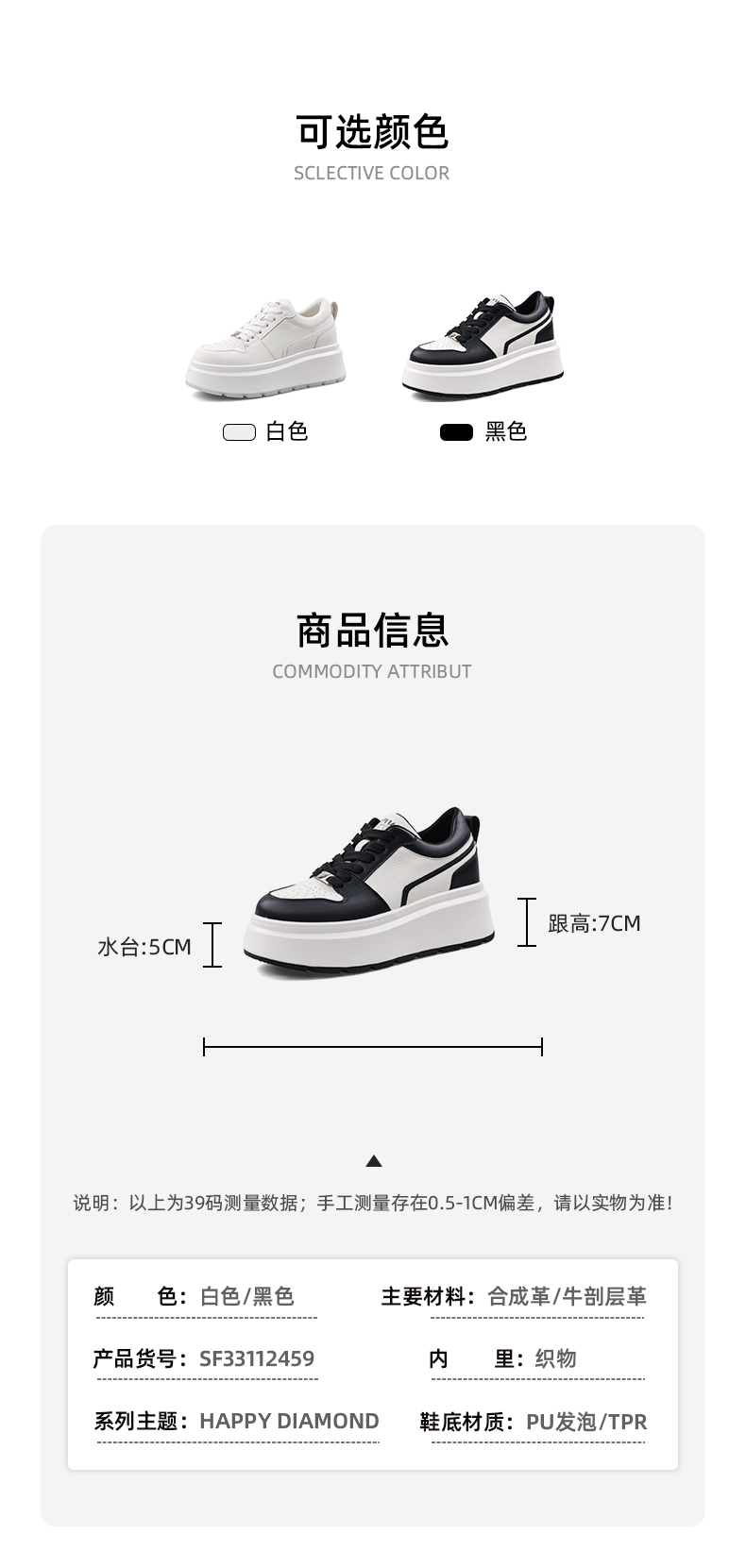 Safiya/索菲娅2023秋冬隐形内增高透气百搭松糕厚底板鞋 SF33112459
