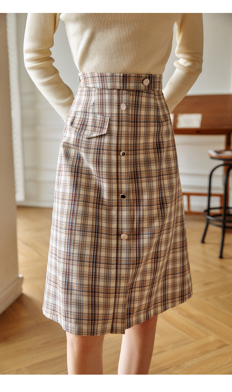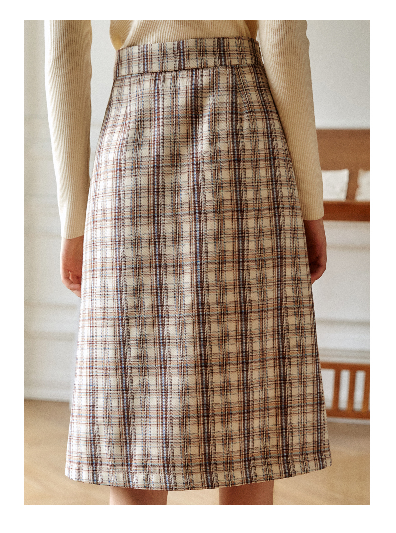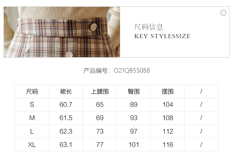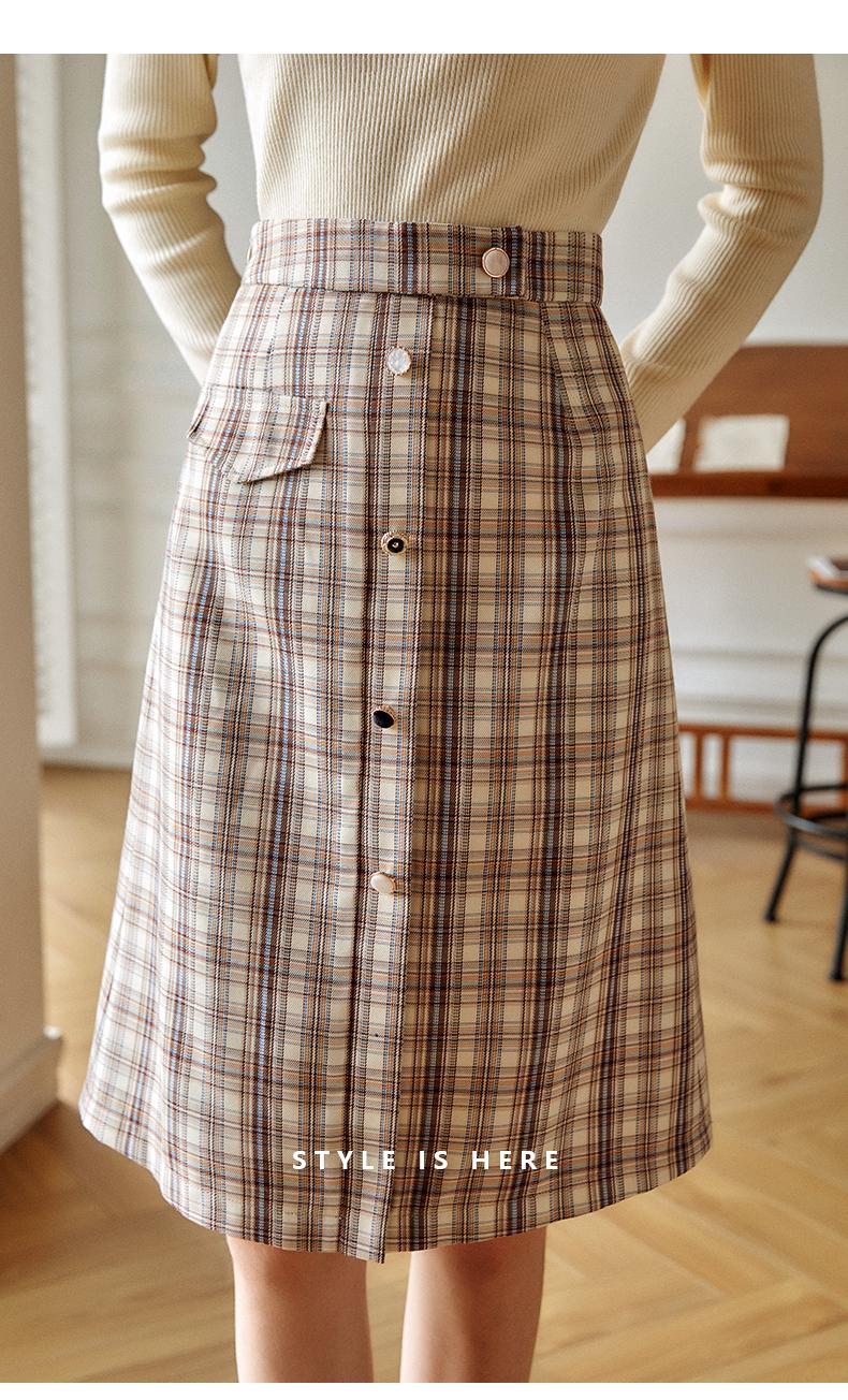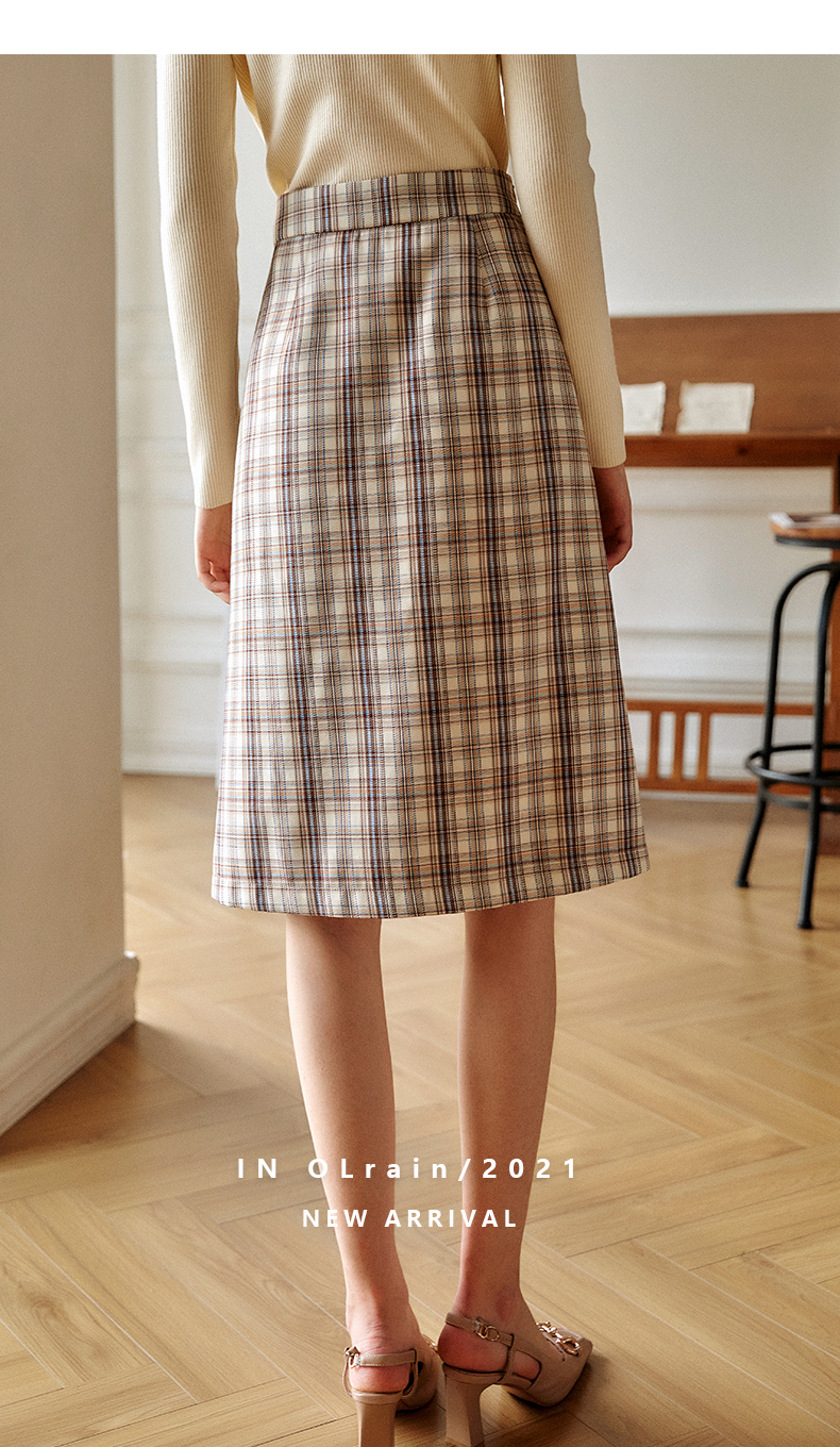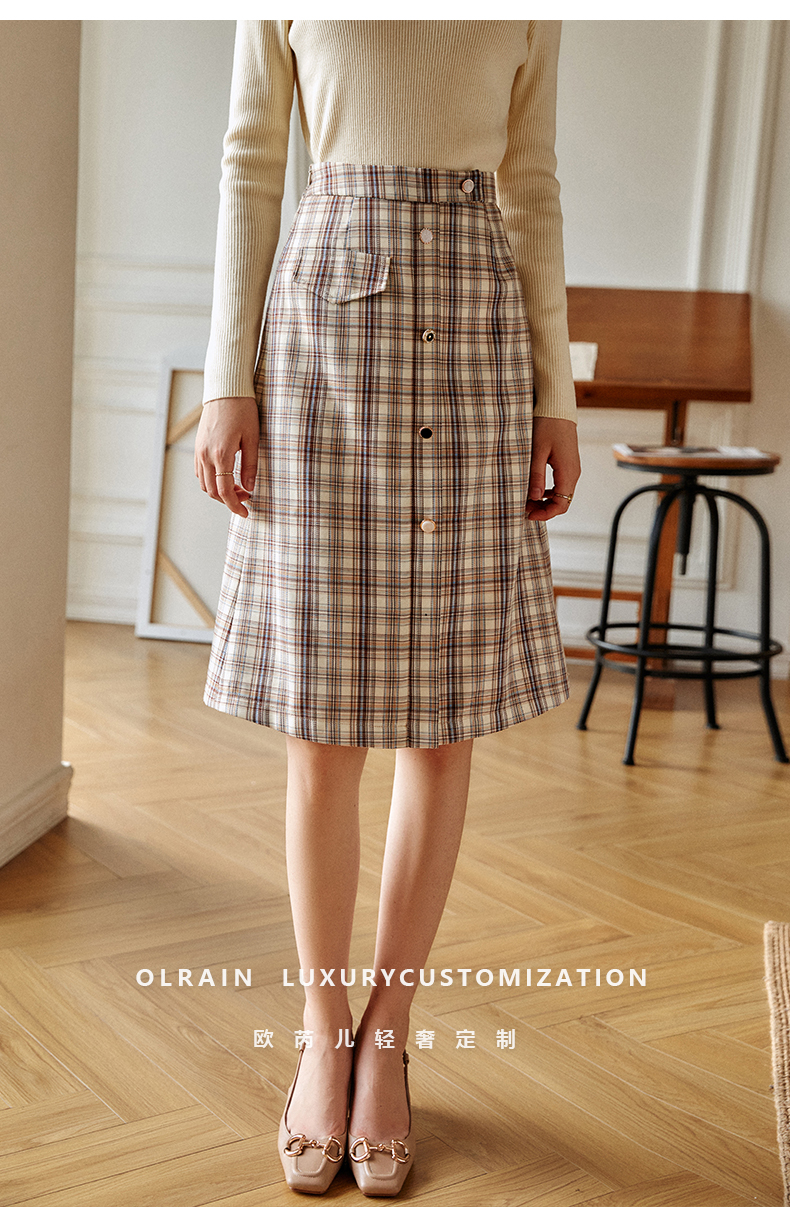 欧芮儿格子半身裙女新款2021高腰显瘦时尚百搭中长款A字裙子