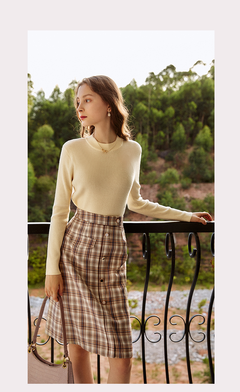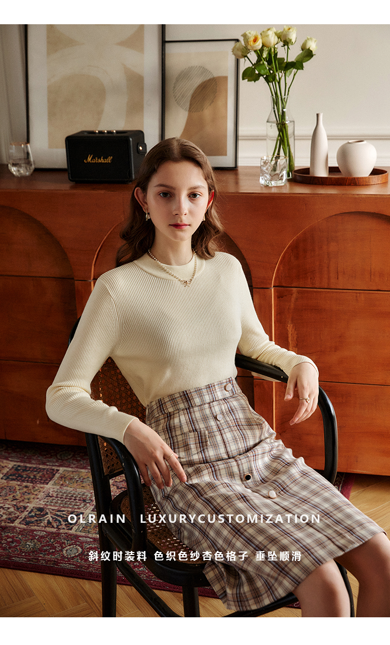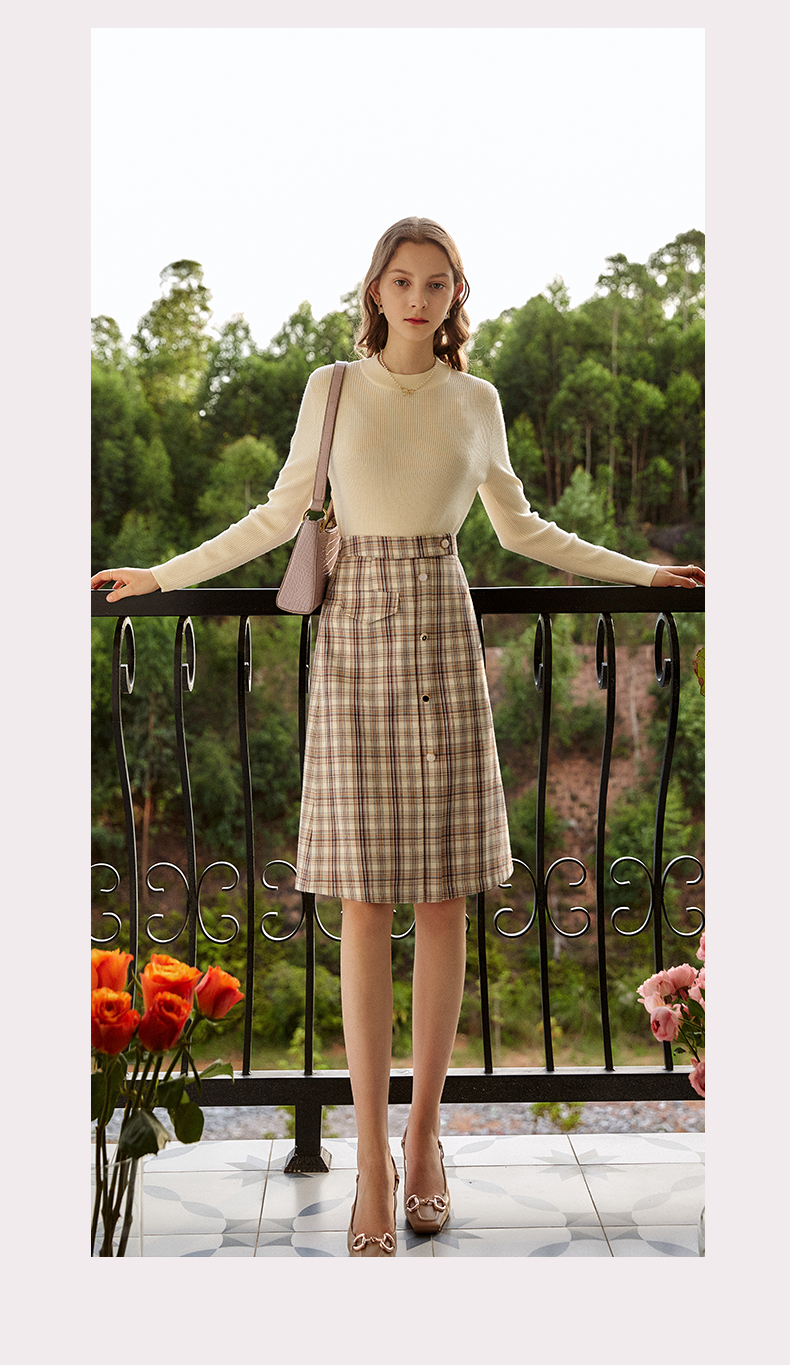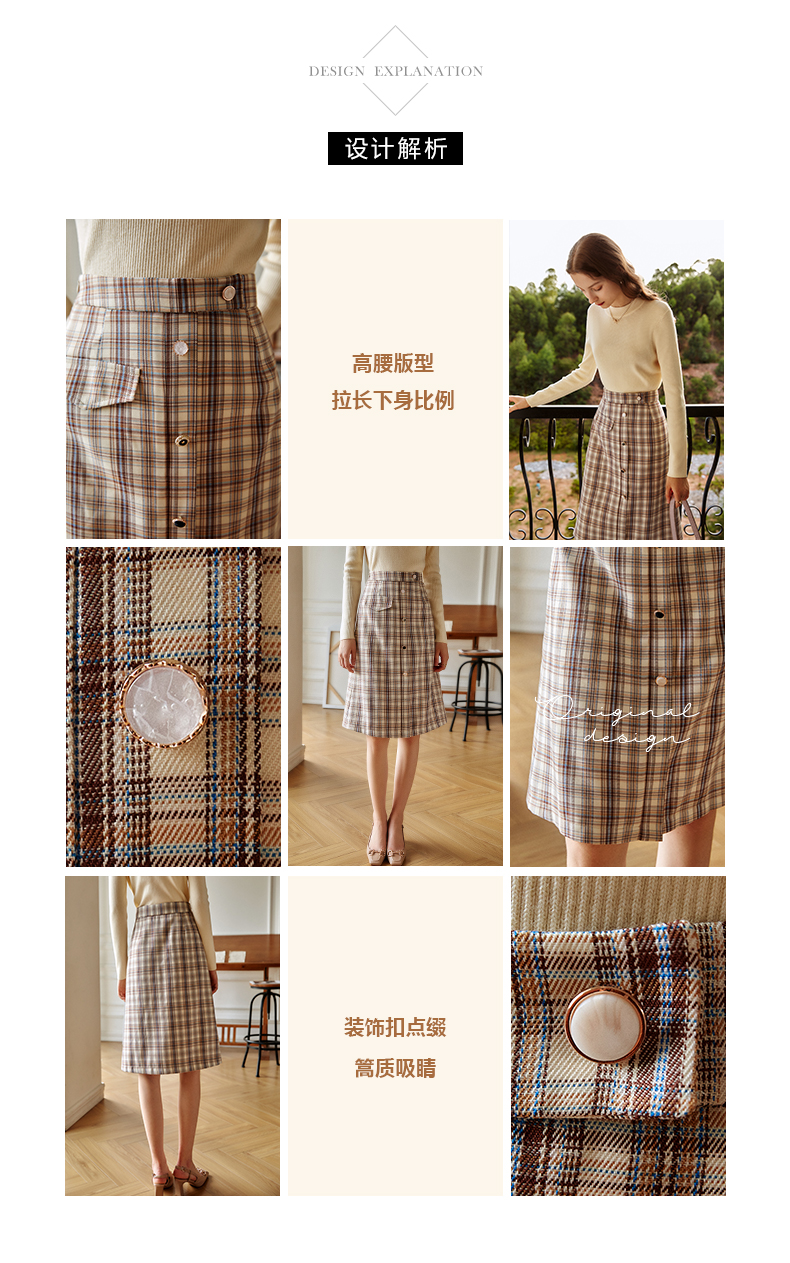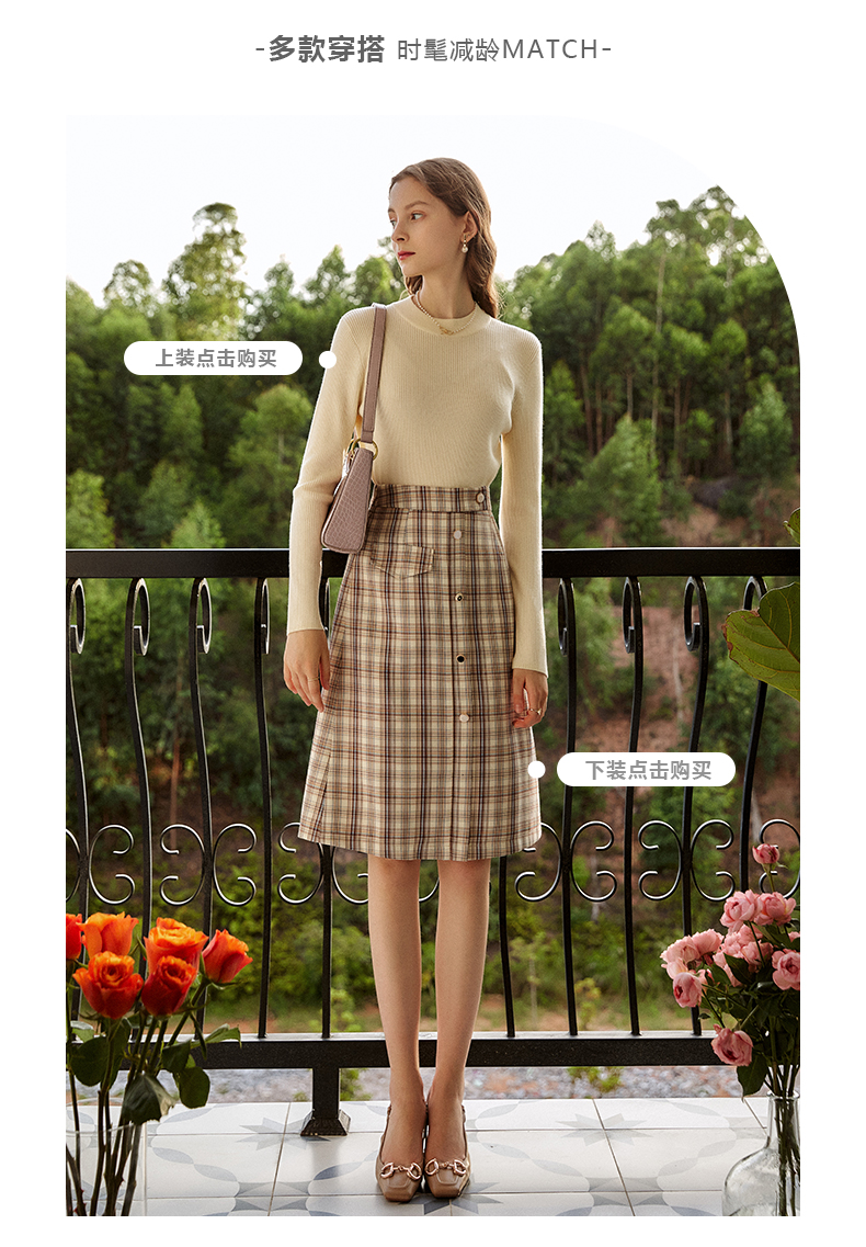 欧芮儿格子半身裙女新款2021高腰显瘦时尚百搭中长款A字裙子