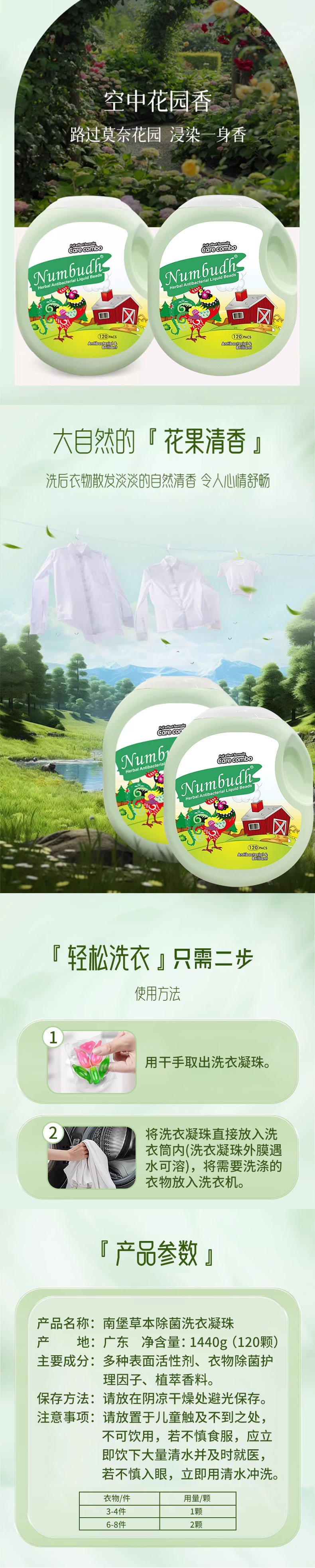 南堡草本除菌洗衣凝珠1440g 【120颗】