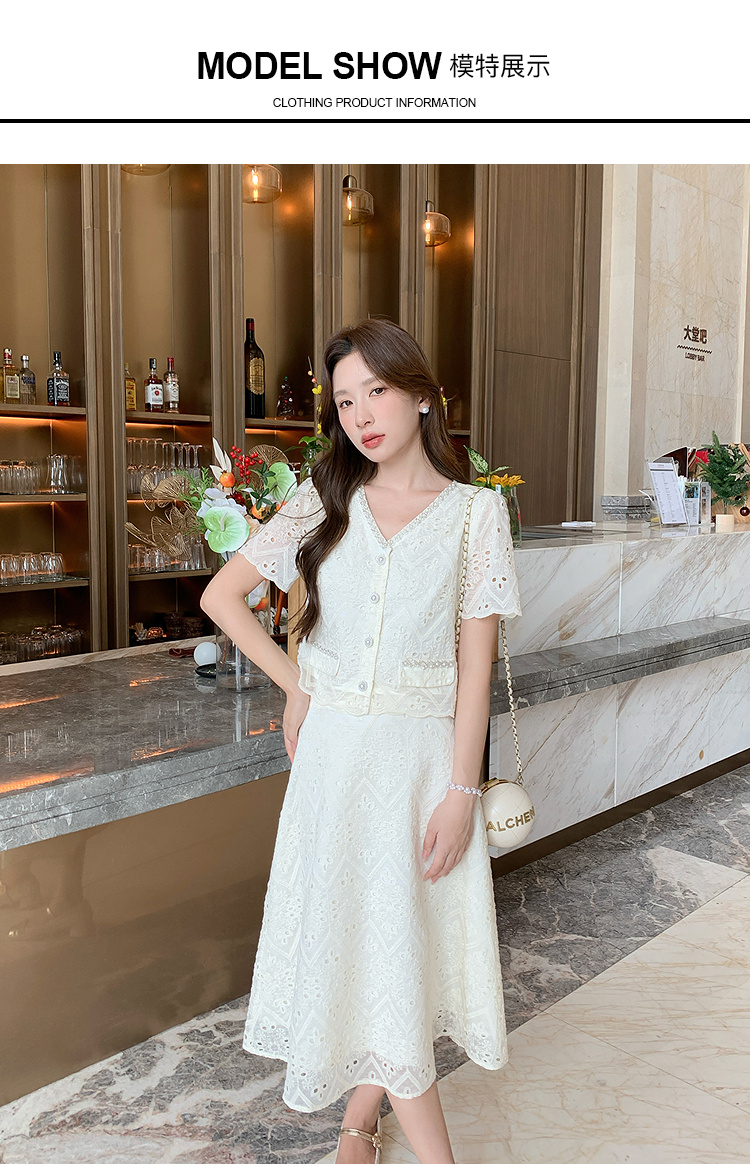 奢姿大码女装2025夏季复古气质V领两件套胖妹妹镂空设计时尚套装9952990562