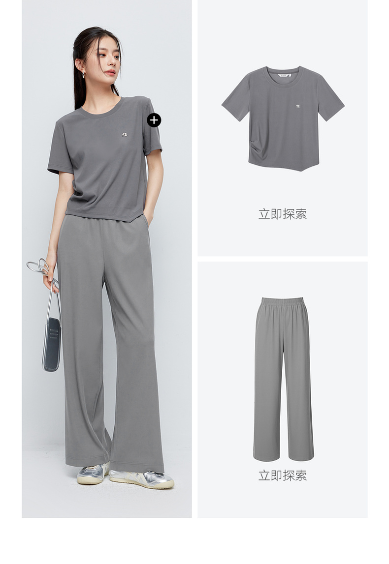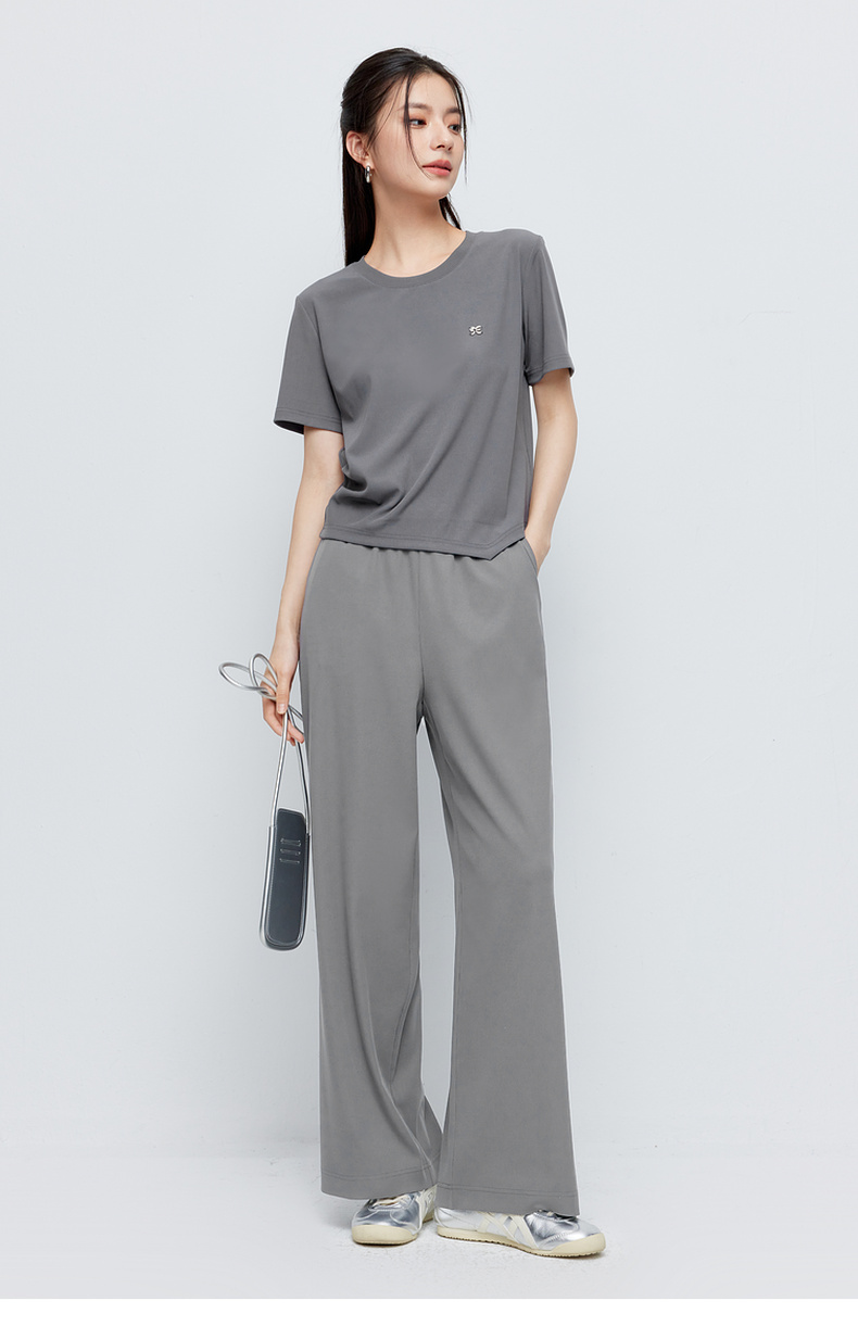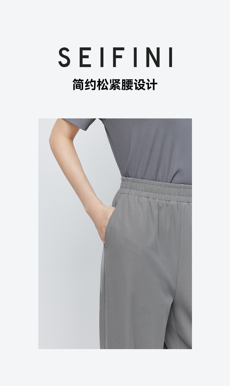【积分换购不退货】【商场同款】诗凡黎灰色高腰直筒休闲裤2024夏新款长裤3F4350731