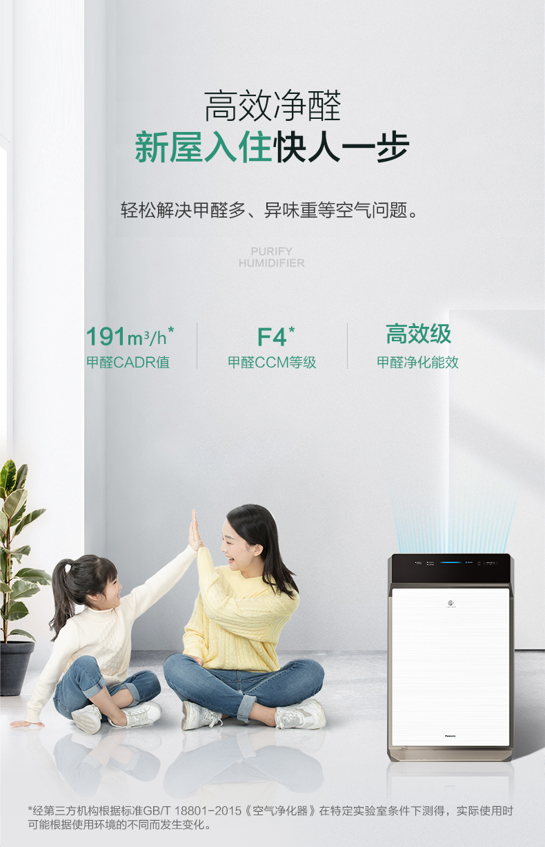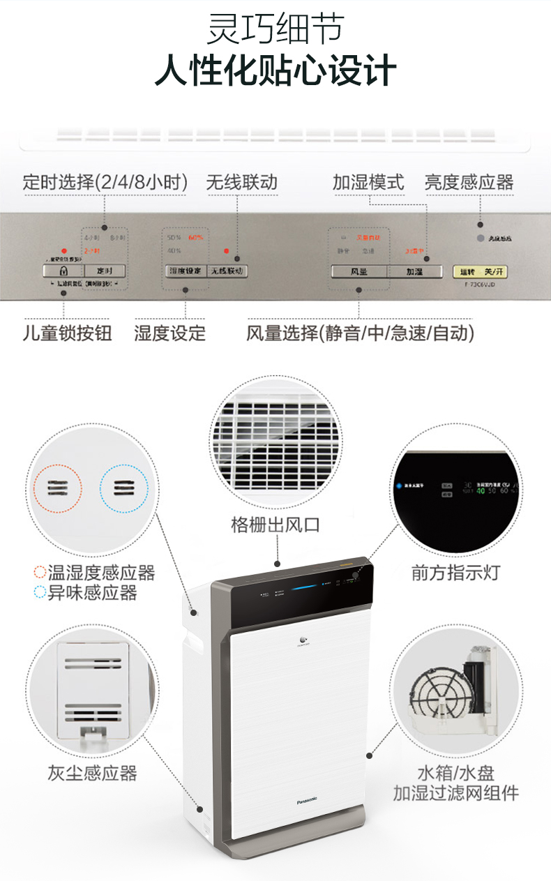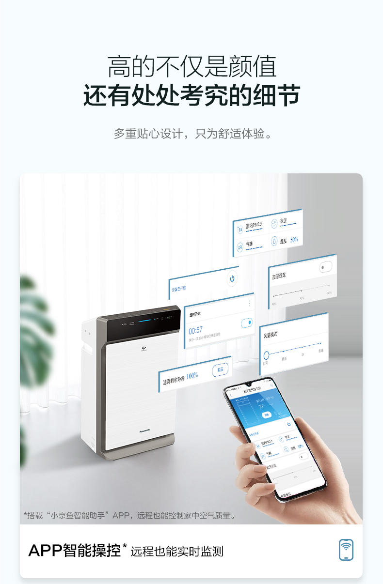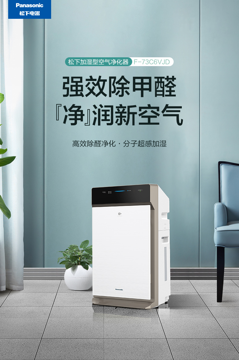 松下 (Panasonic)除甲醛空气净化器家用 除菌加湿除雾霾 纳米水离子 京鱼座智能生态产品 F-73C6VJD-S
